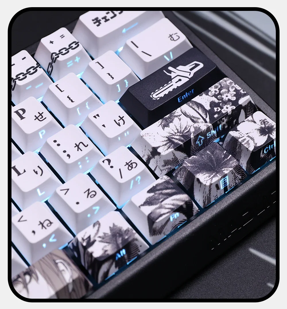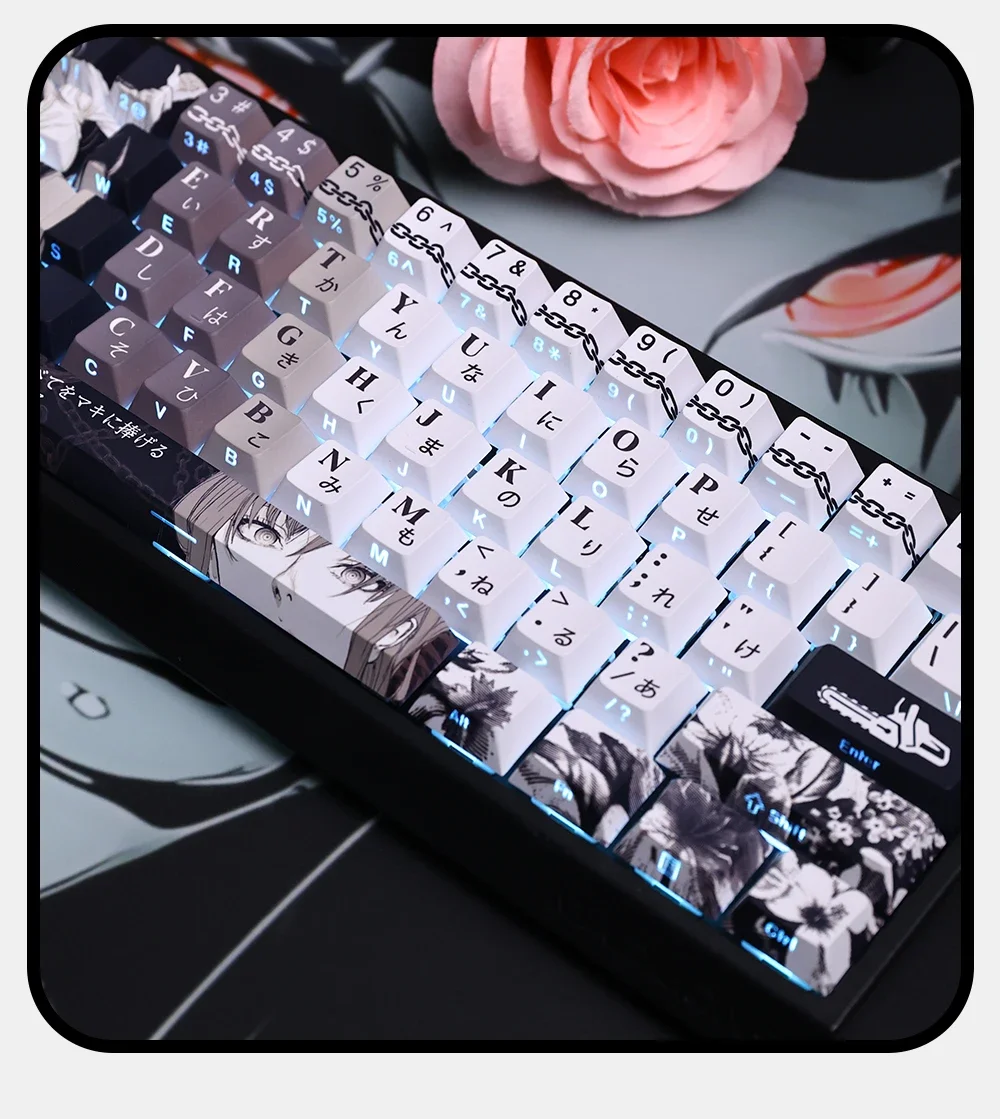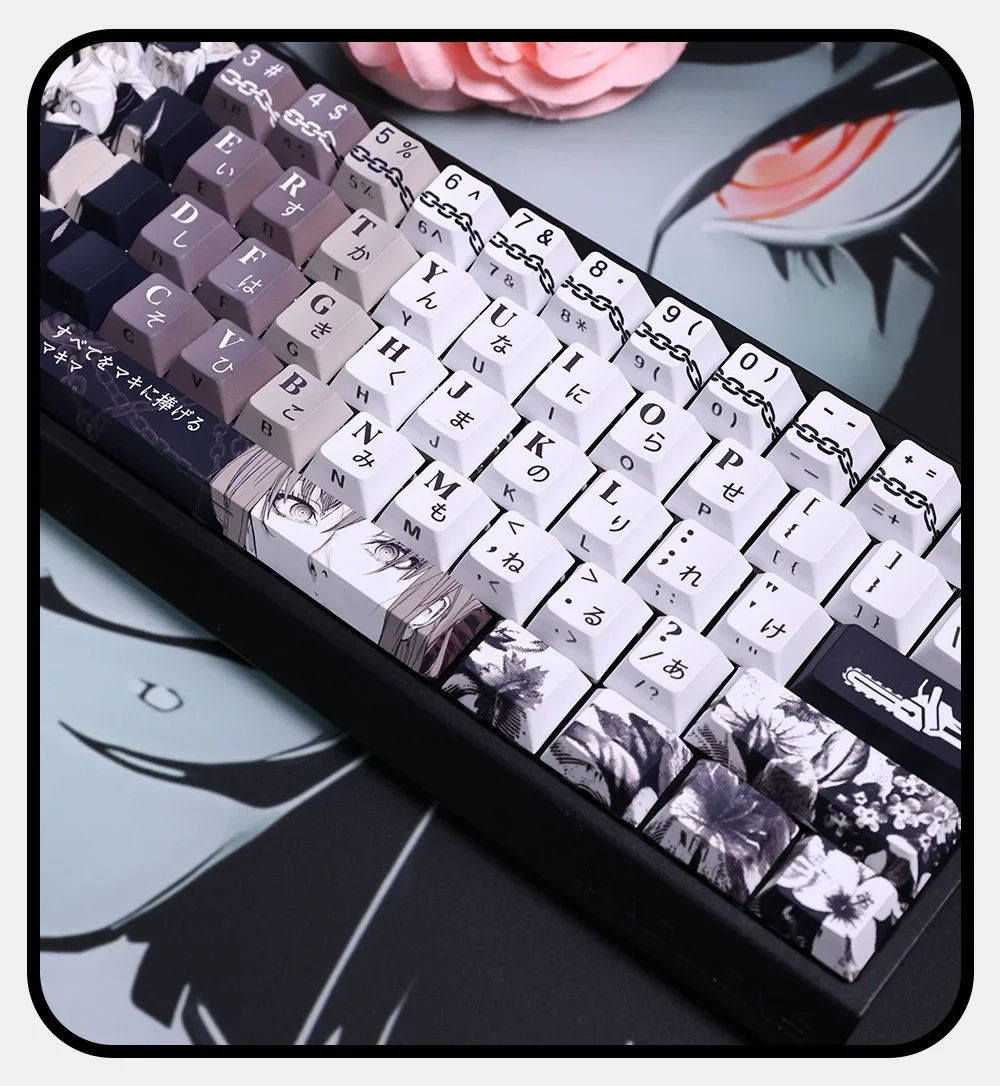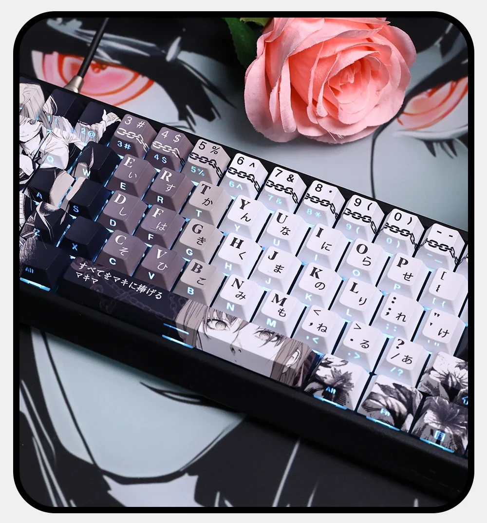 Juego de teclas temáticas de Anime Makima, tapas de teclado PBT, teclas de perfil de cereza personalizadas para accesorios de teclado mecánico, 124 teclas
