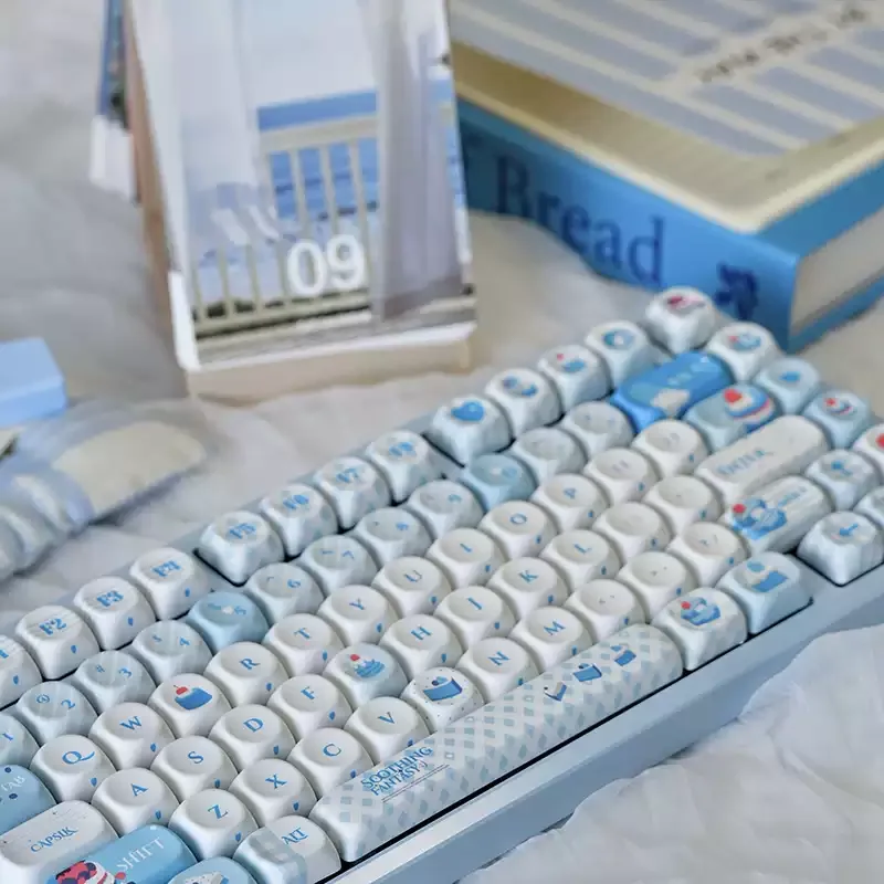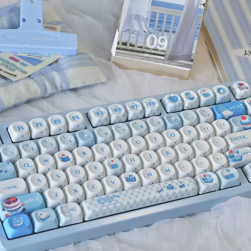 Juego de teclas con tema de sueño dulce azul, perfil PBT MOA 134/140, teclas hechas a mano originales personalizadas para accesorios de teclado mecánico