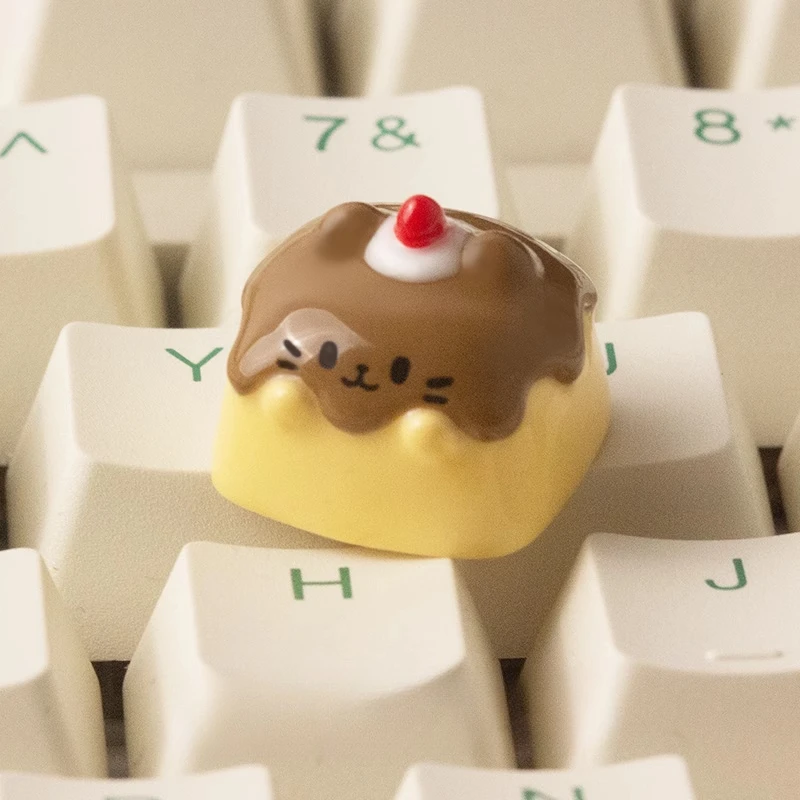 Juego de teclas temáticas lindas de gato pudín, teclas artesanales de resina 3D, teclas hechas a mano originales personalizadas para accesorios de teclado mecánico