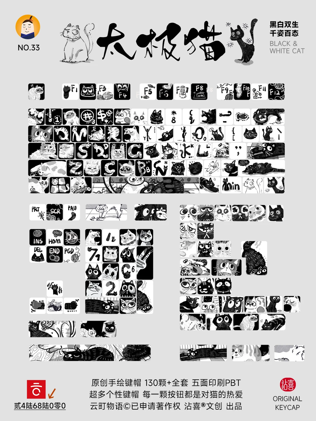 Nombre del producto: Juego de teclas temáticas lindas de gato Tai Chi blanco y negro