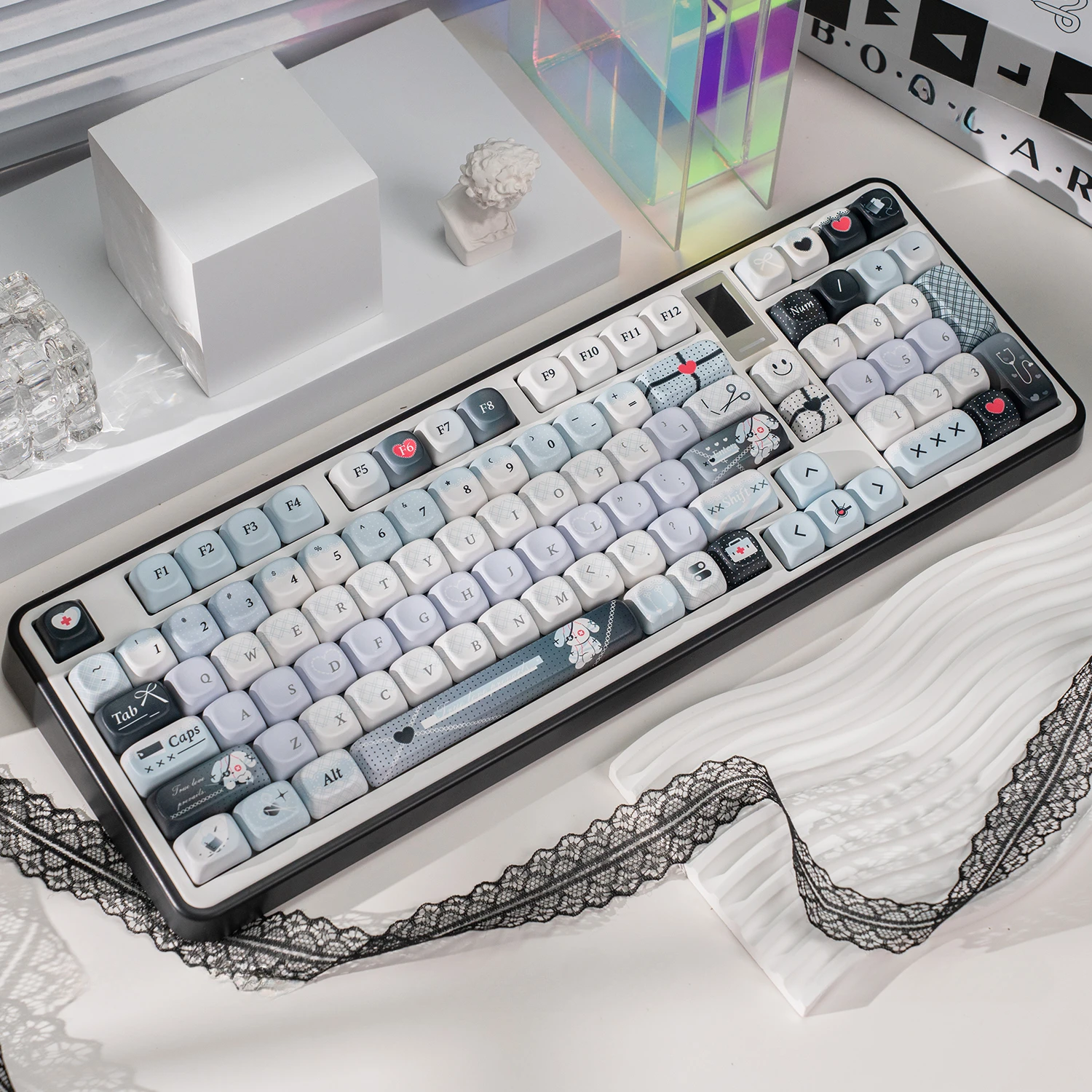 Comprar Juego de teclas con tema de cachorro vendado, perfil PBT MO, 131 teclas, teclas originales personalizadas hechas a mano para accesorios de teclado mecánico