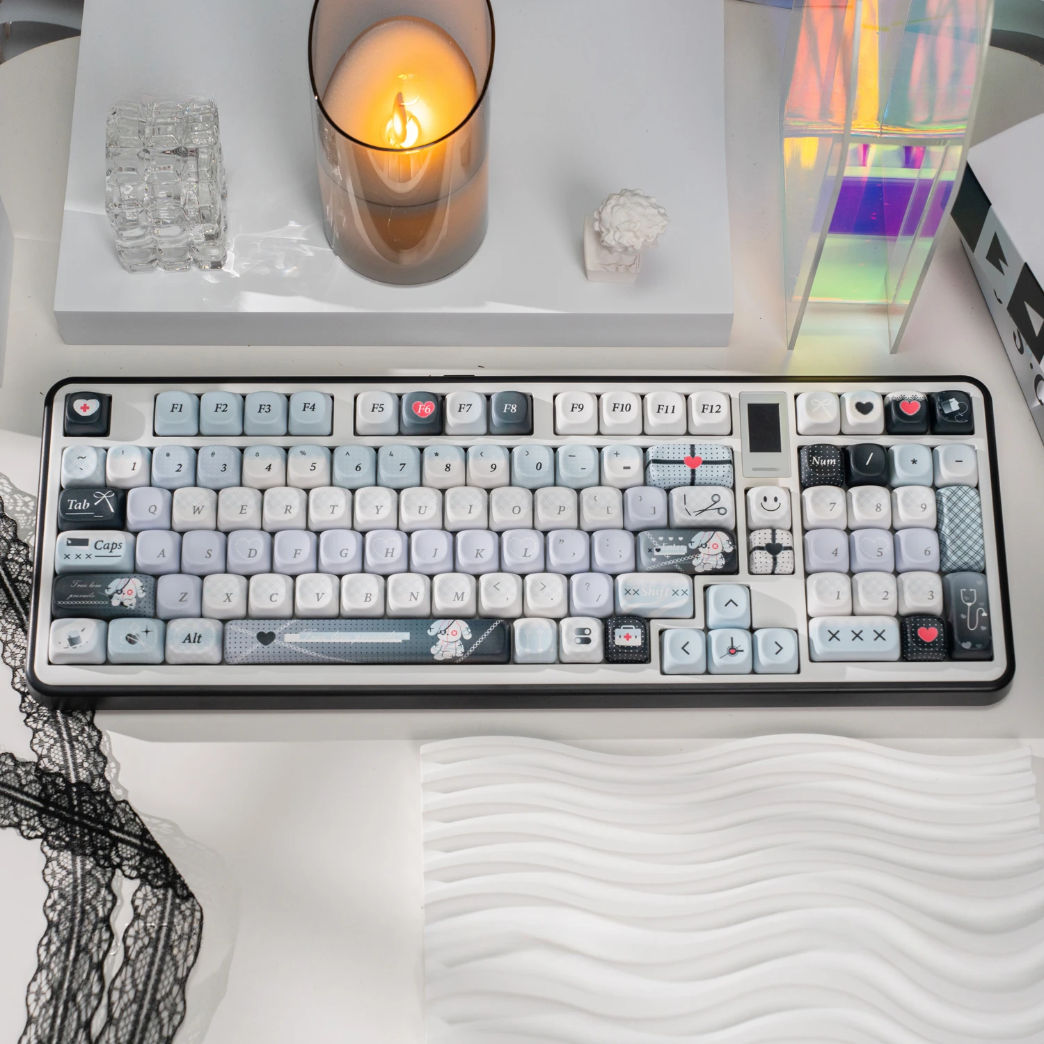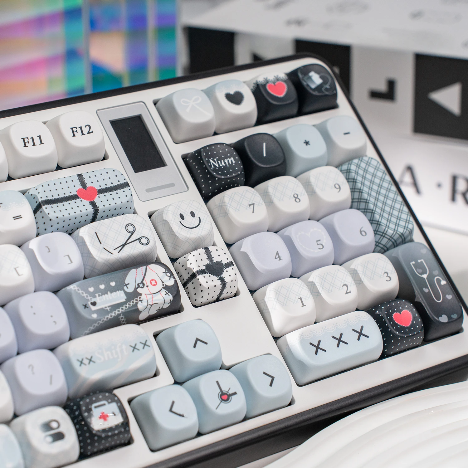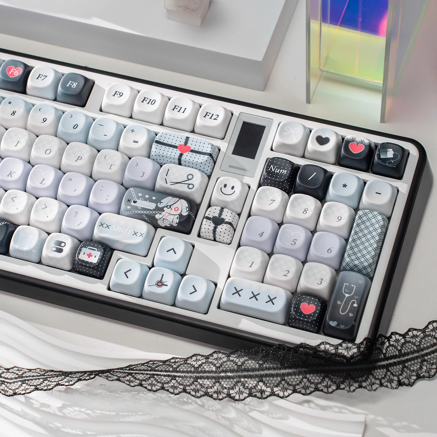 Juego de teclas con tema de cachorro vendaje, perfil PBT MO de 131 teclas, teclas originales hechas a mano personalizadas para accesorios de teclado mecánico