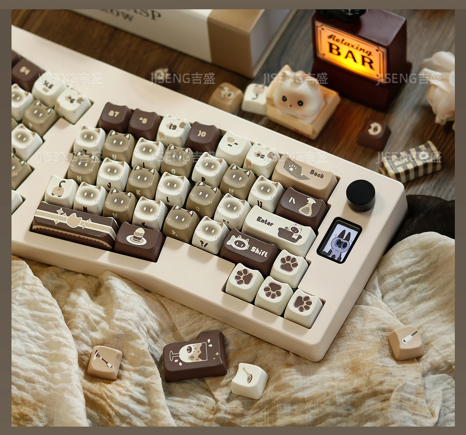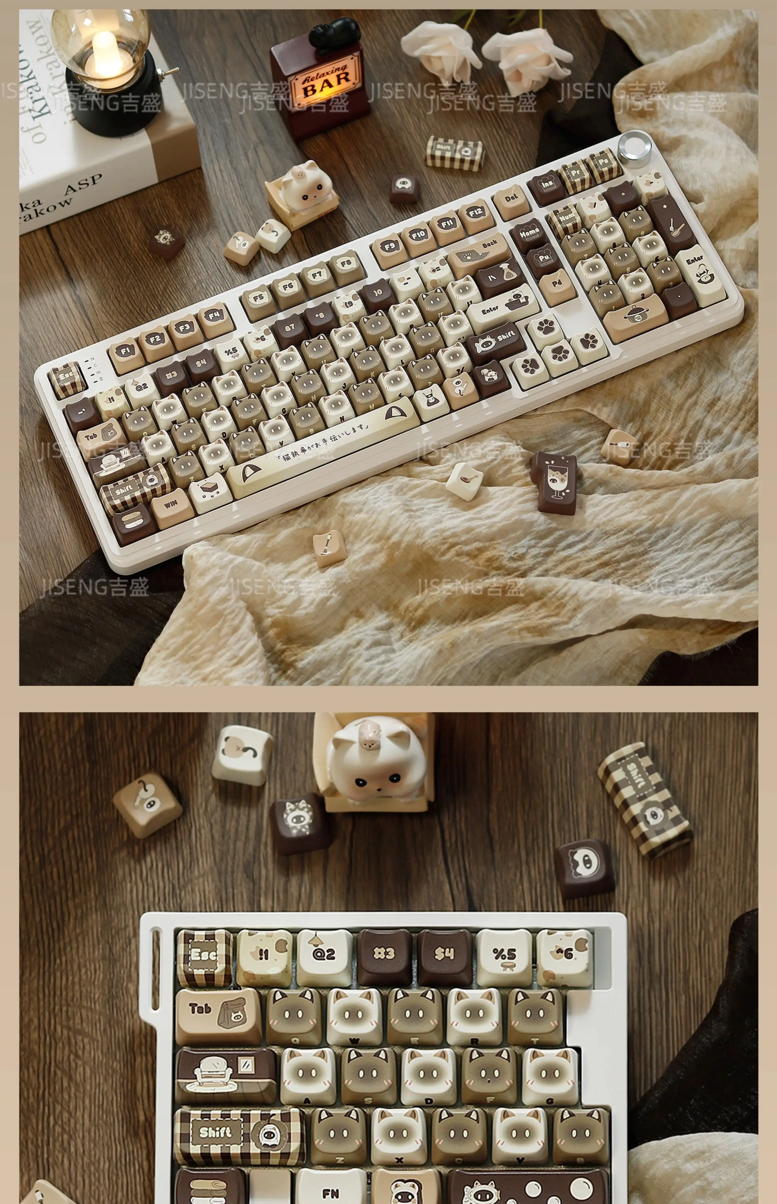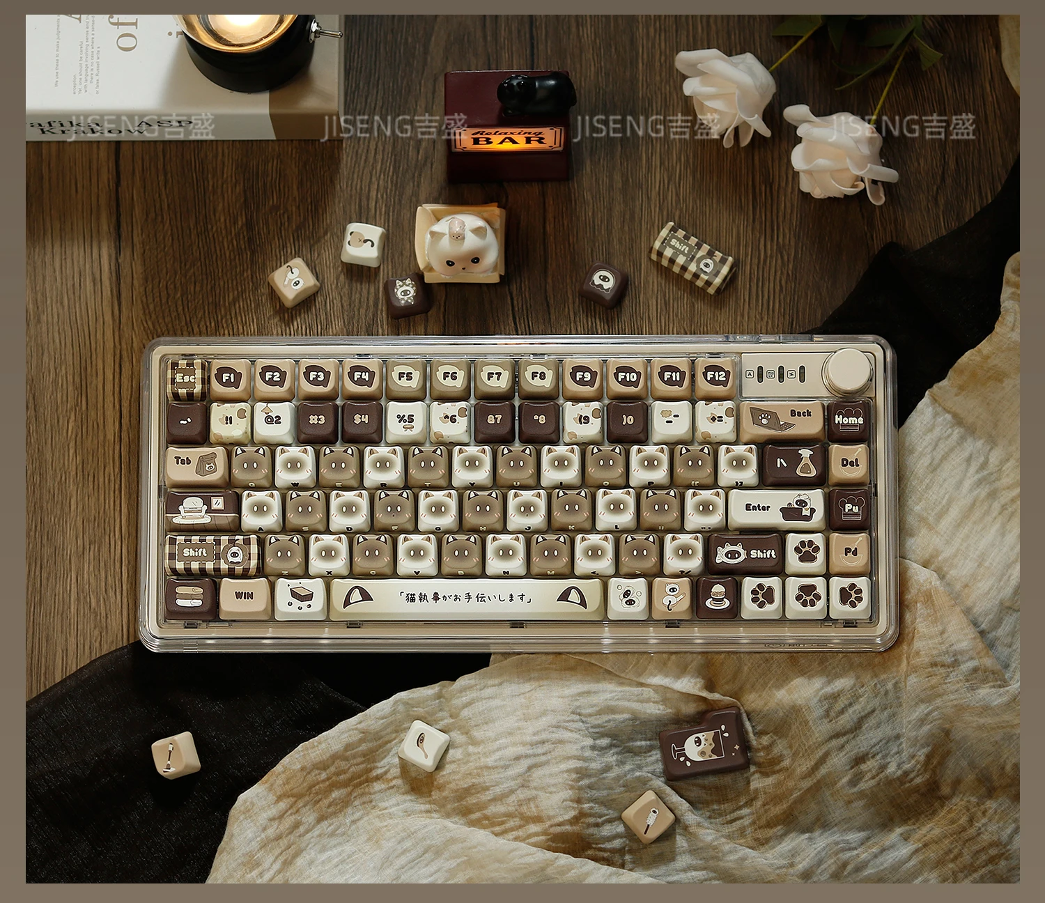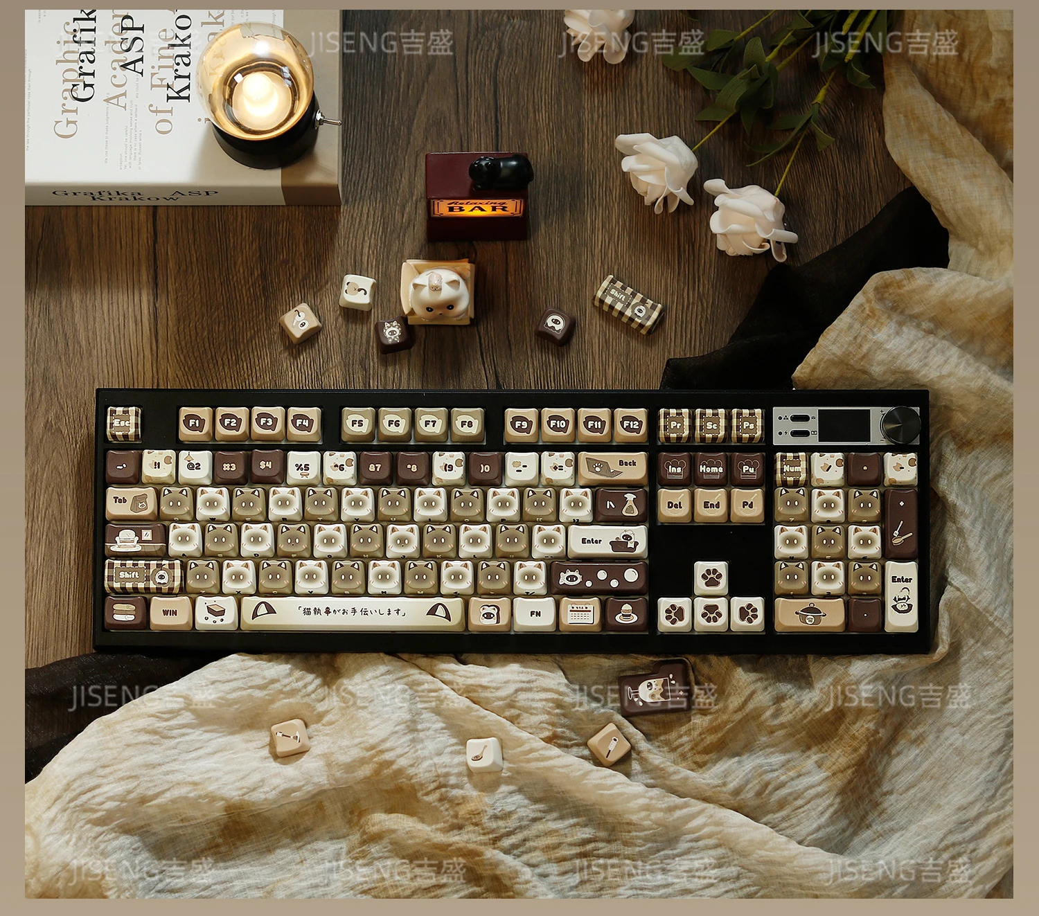 Juego de teclas temáticas de café y gato siamés, perfil PBT MOA, 131 teclas, teclas originales hechas a mano personalizadas para teclado mecánico, regalo