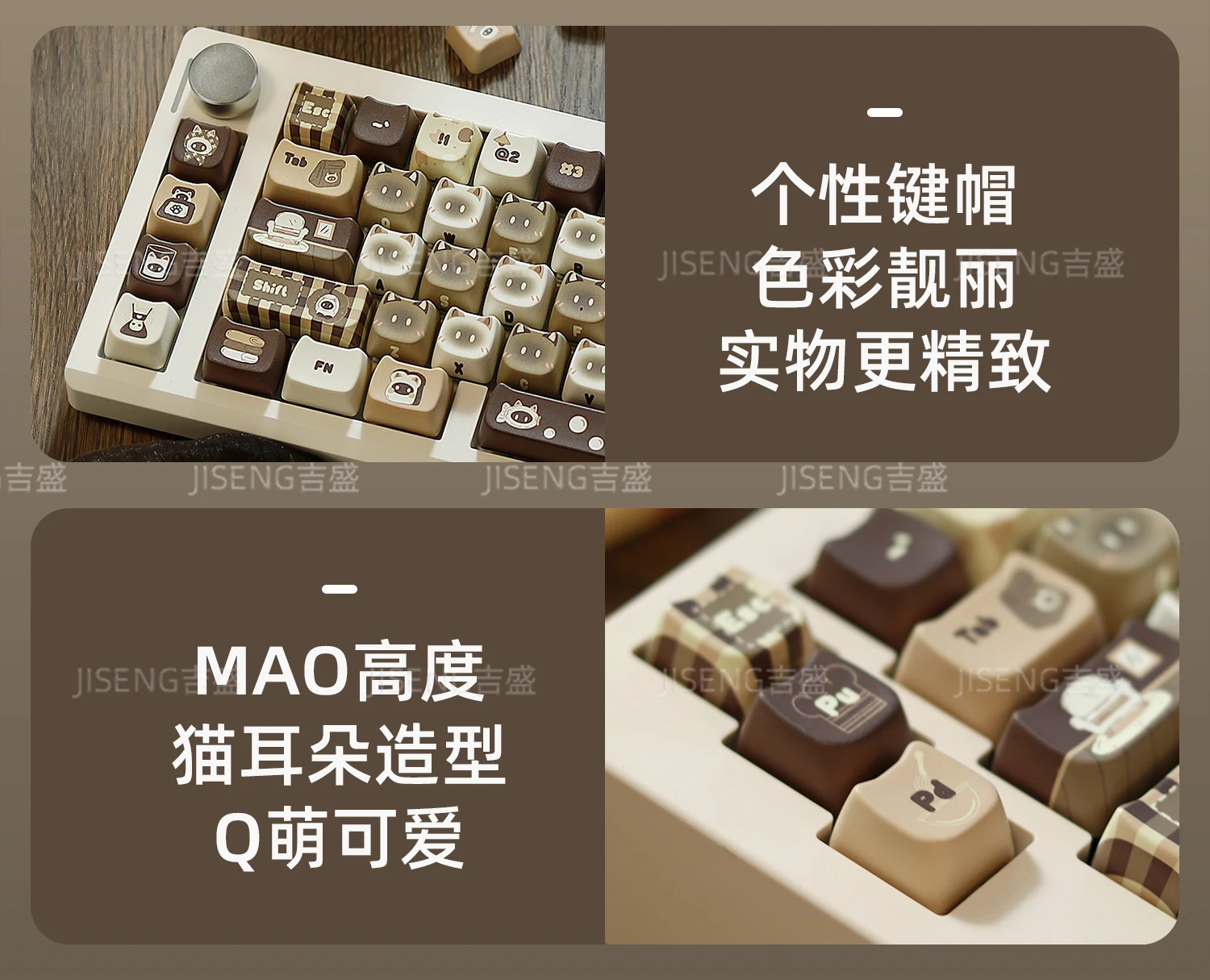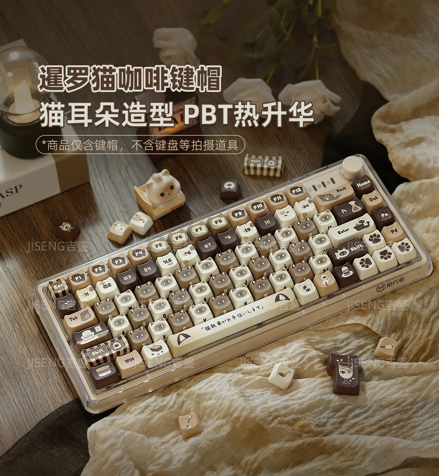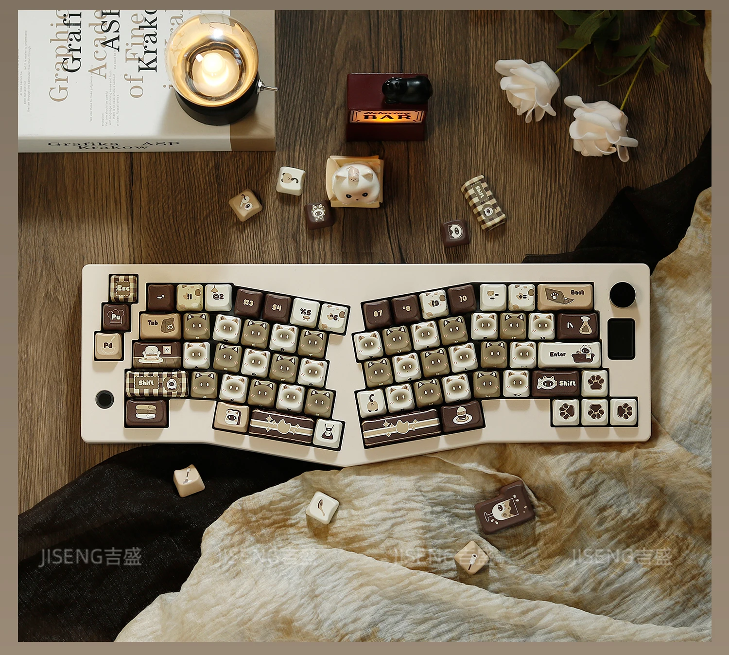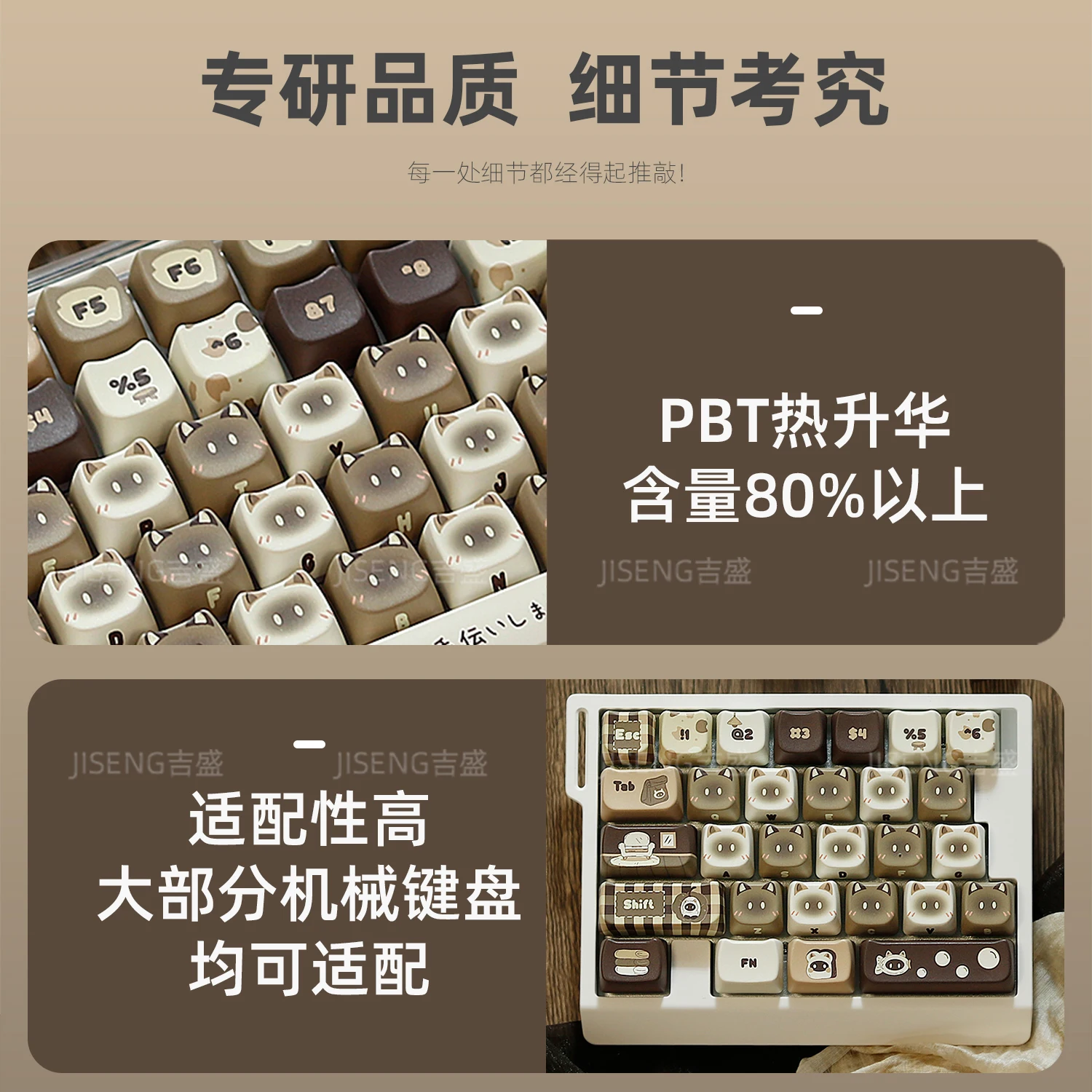 Juego de teclas temáticas de café y gato siamés, perfil PBT MOA, 131 teclas, teclas originales hechas a mano personalizadas para teclado mecánico, regalo