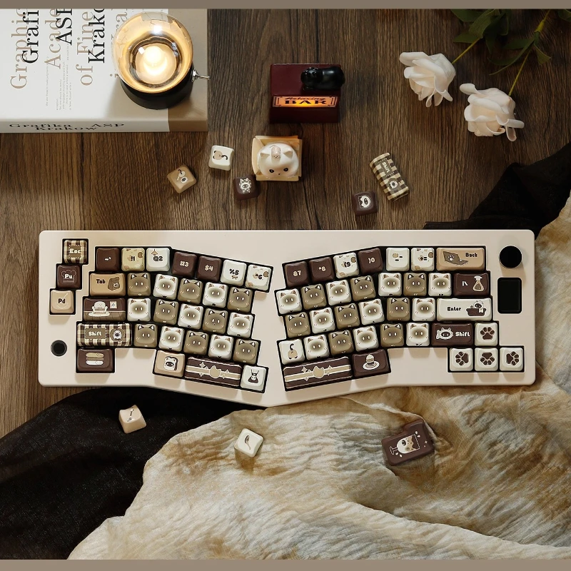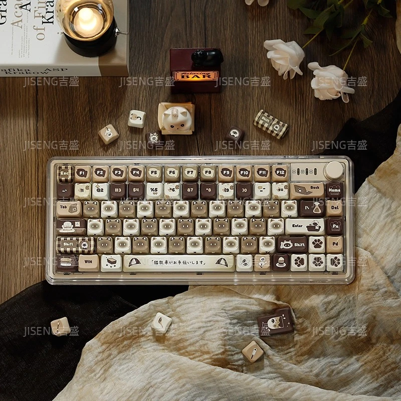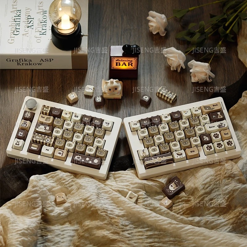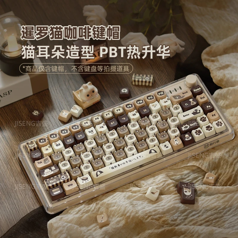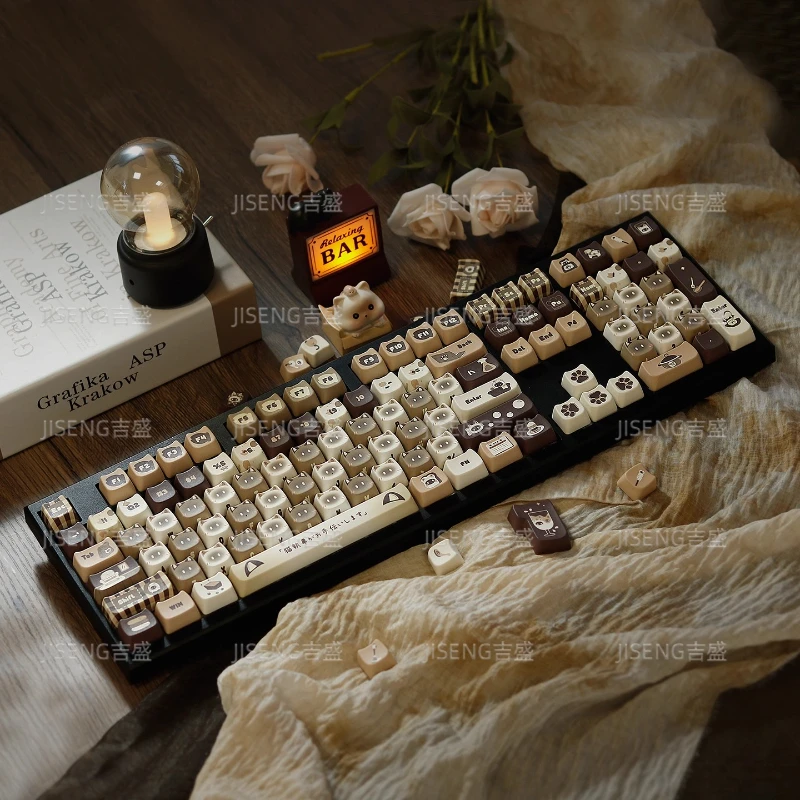 Juego de teclas temáticas de café y gato siamés, perfil PBT MOA, 131 teclas, teclas originales hechas a mano personalizadas para teclado mecánico, regalo
