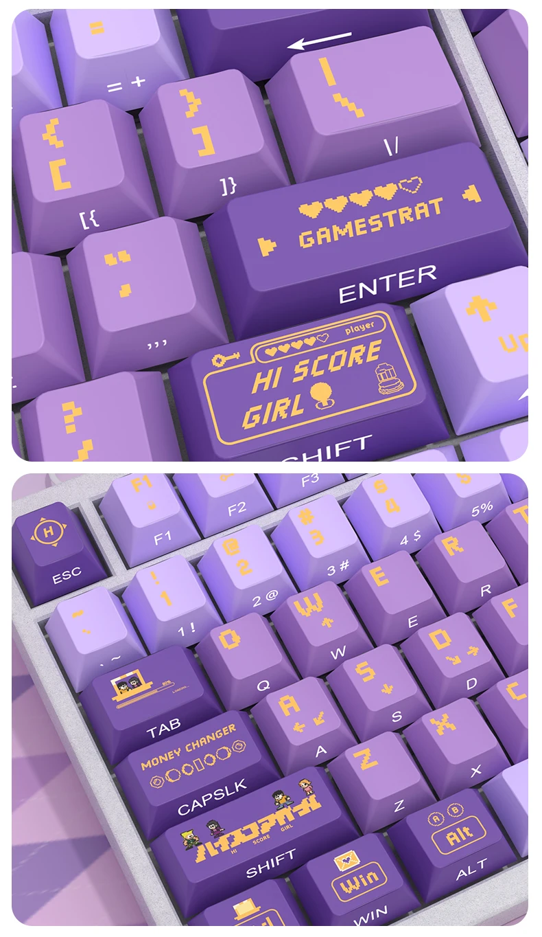 Juego de teclas temáticas de niña de alta escoración, teclas de perfil de cereza grabadas lateralmente PBT de Anime, tapa de tecla personalizada para teclado mecánico, regalo