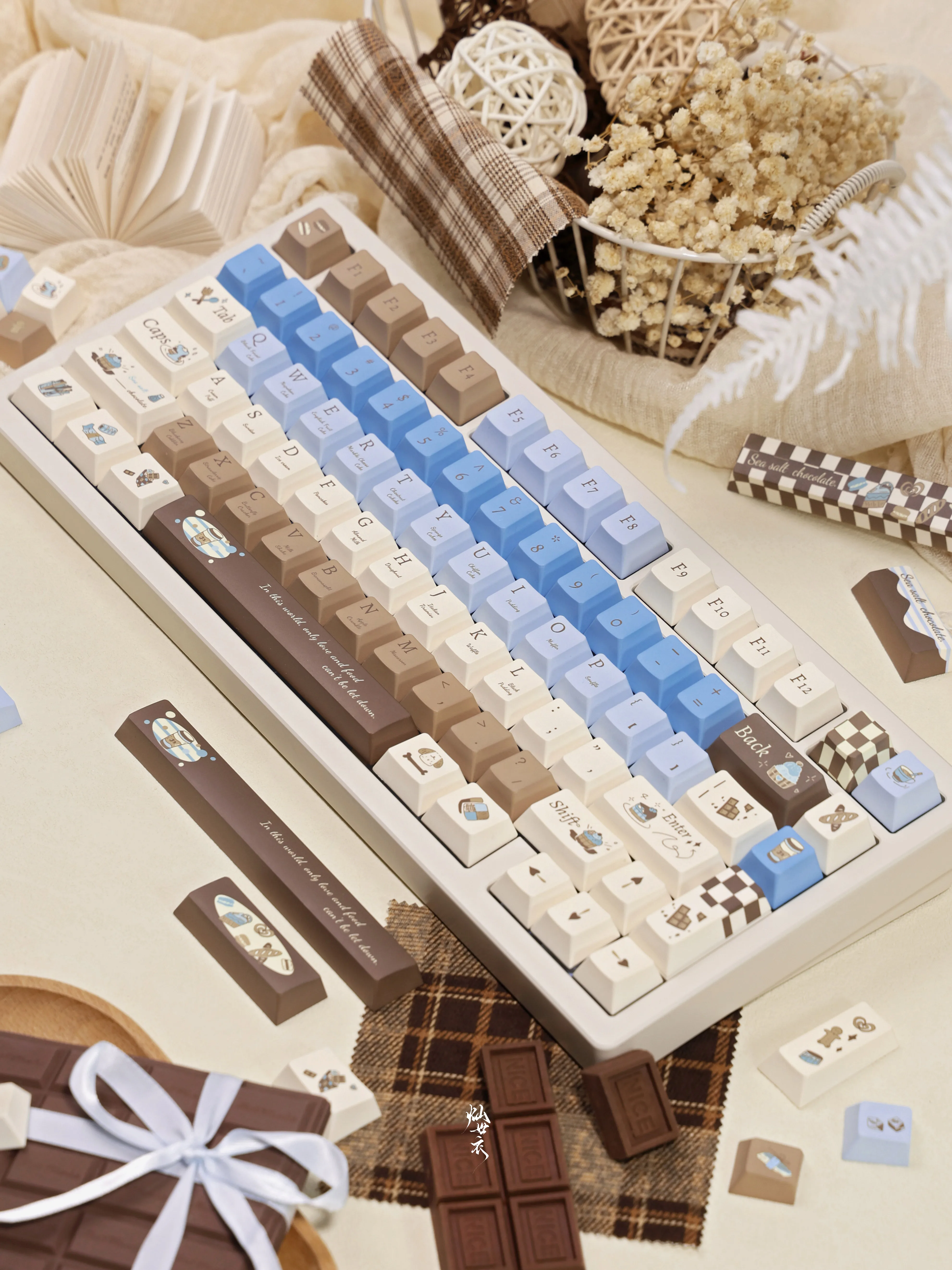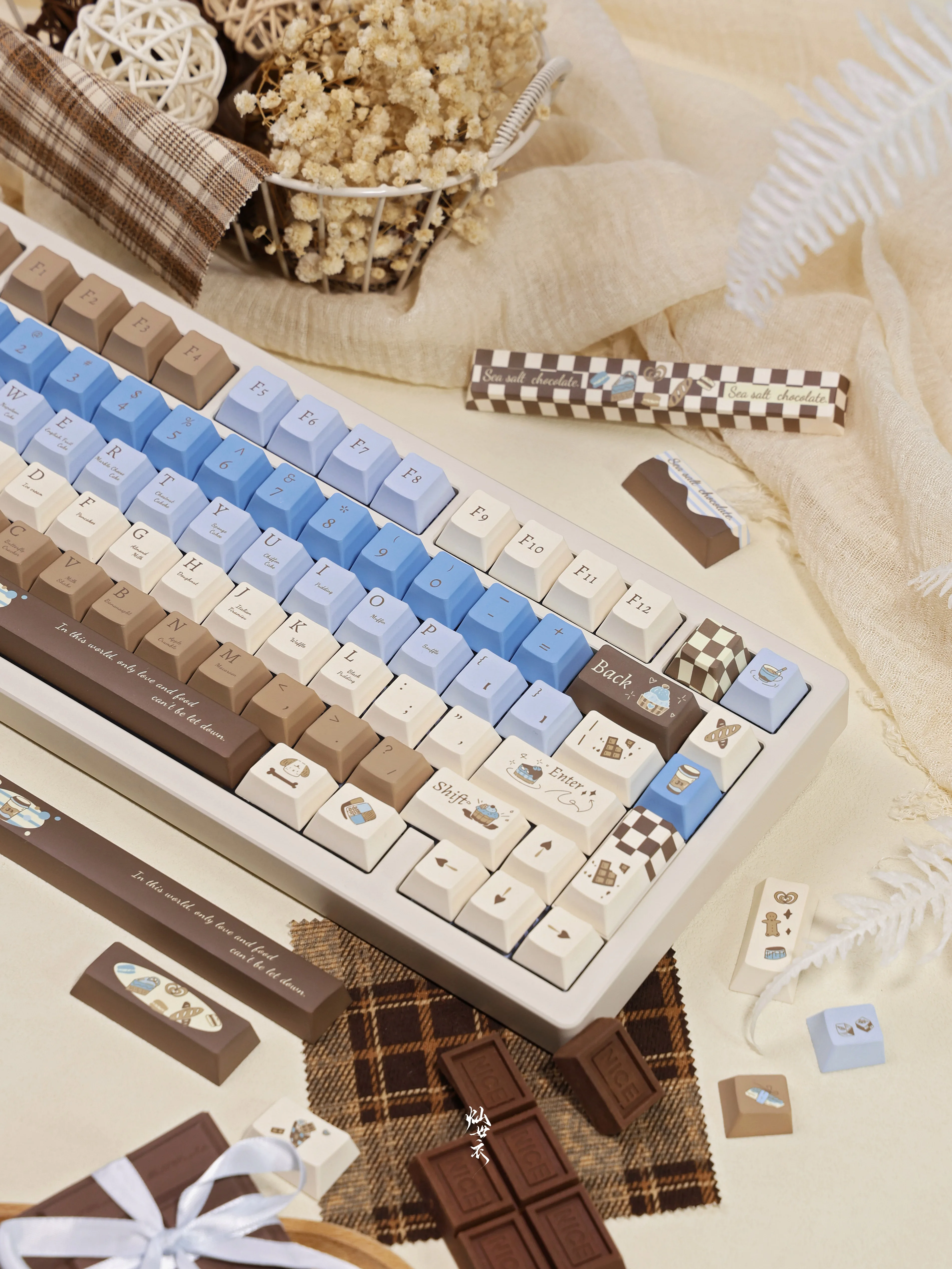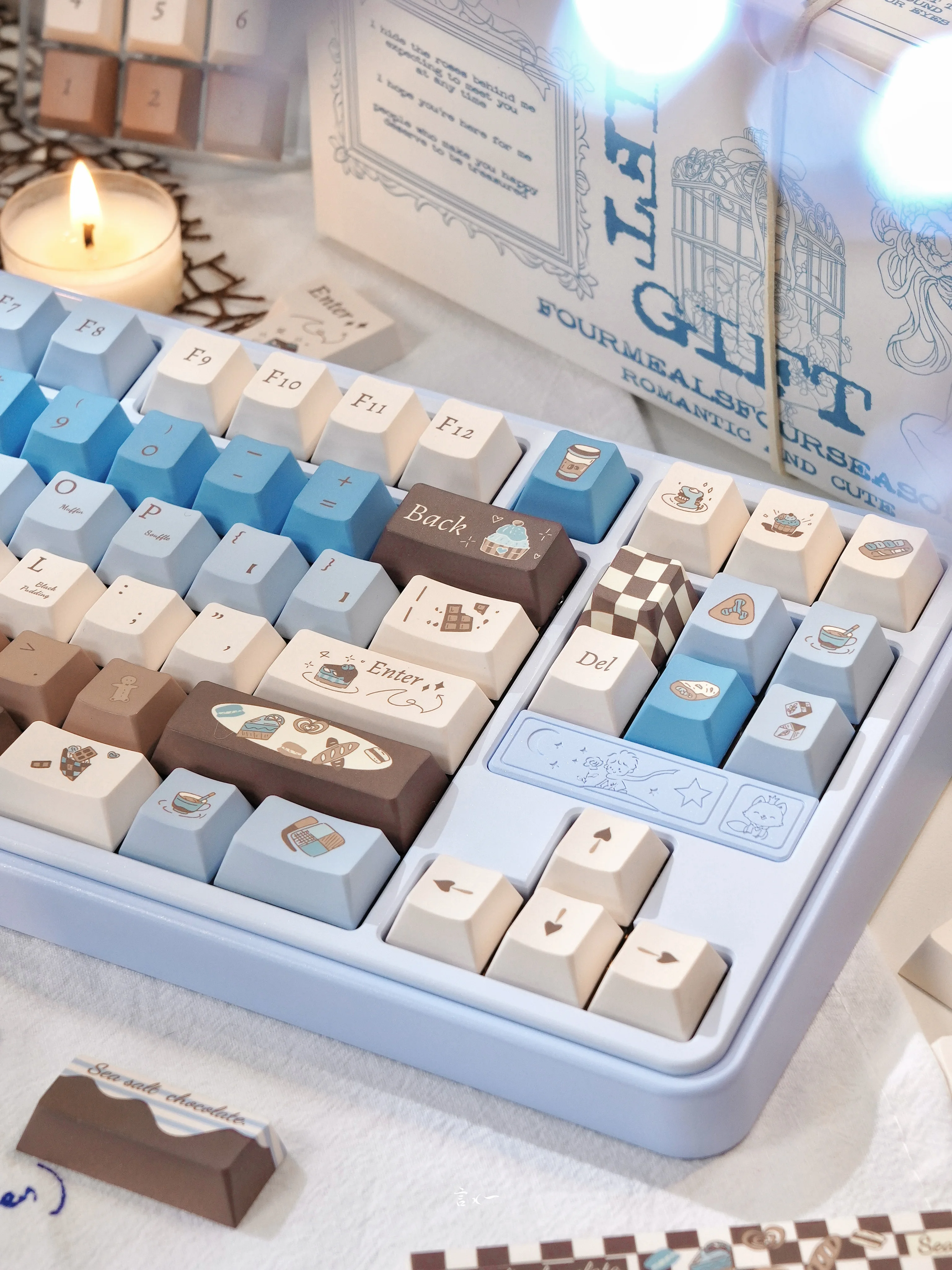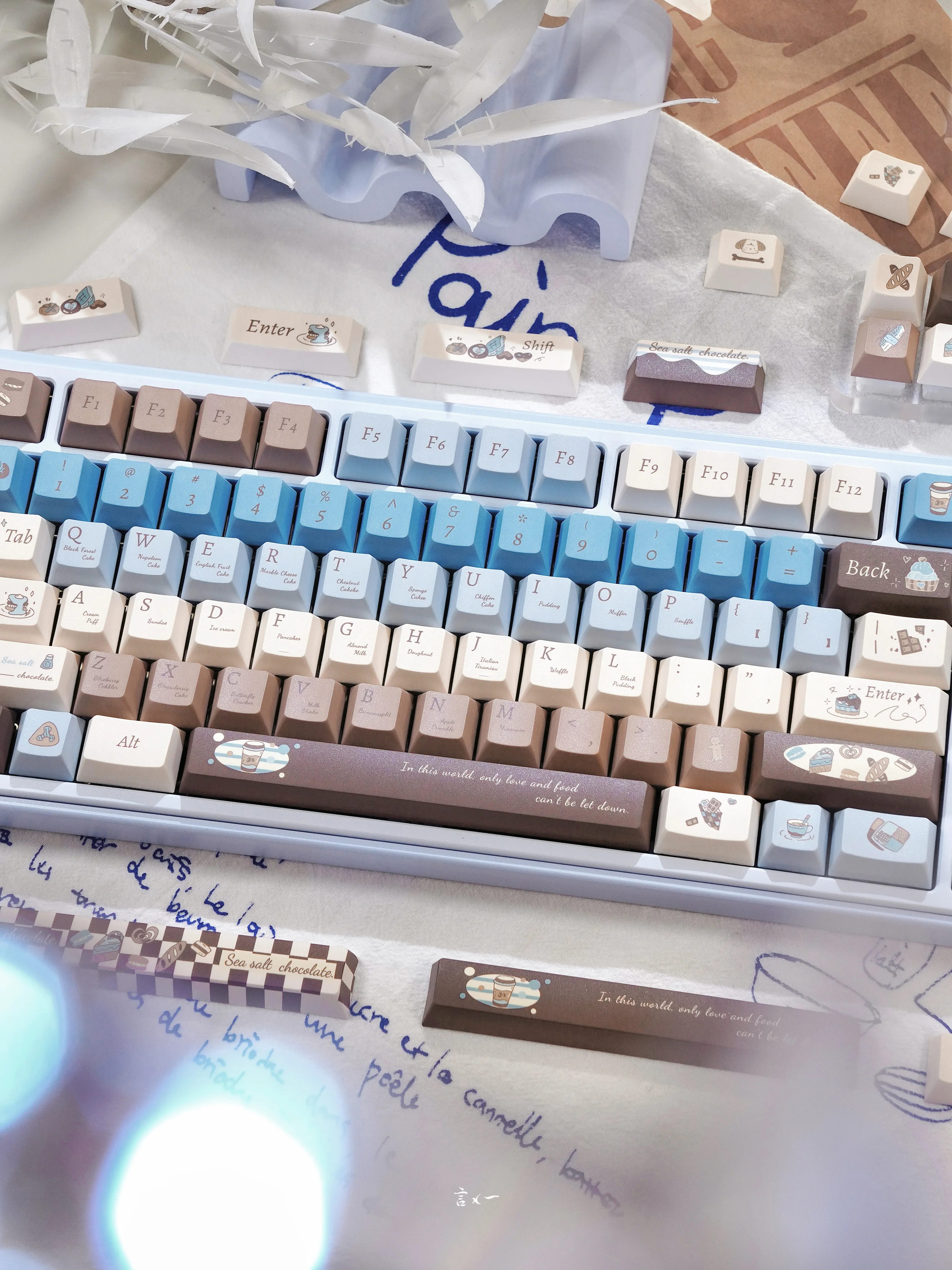 Juego de teclas temáticas de Chocolate y sal marina PBT 145 cereza FOA, teclas originales hechas a mano personalizadas para accesorios de teclado mecánico