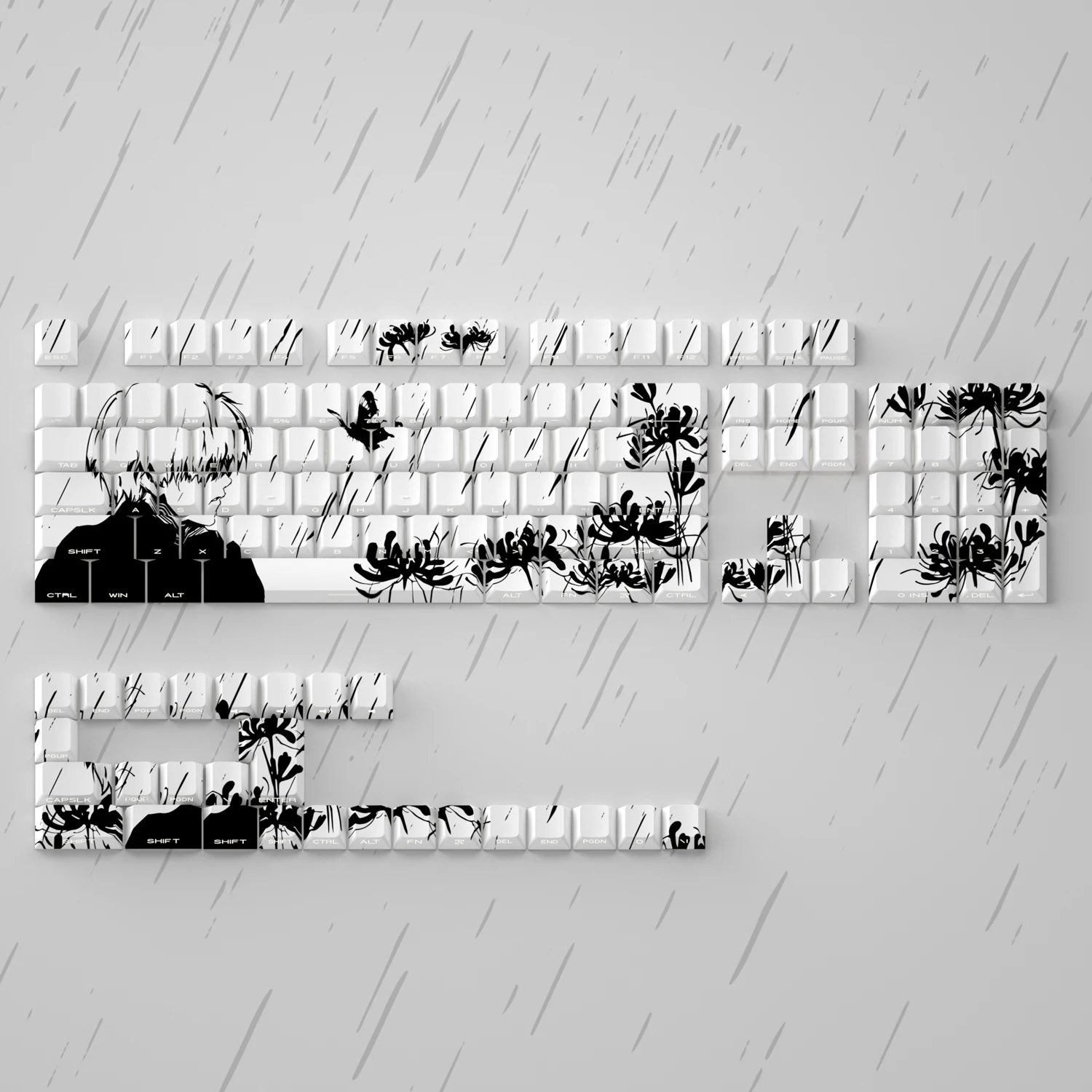 Juego de teclas temáticas de cómics en blanco y negro, perfil de cereza PBT, 130 teclas, teclas hechas a mano originales personalizadas para teclado mecánico