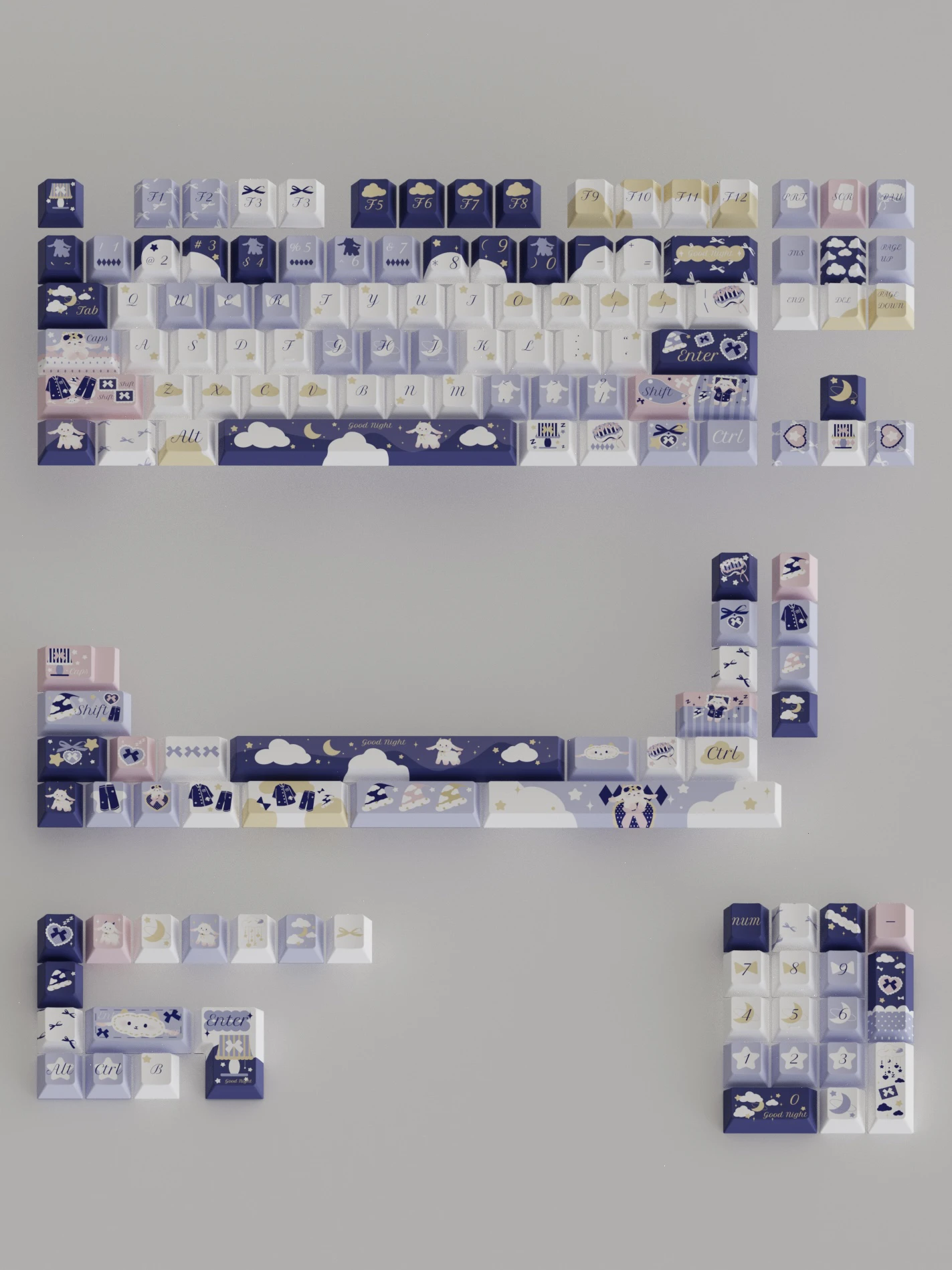 Juego de teclas con tema de cordero de buena noche, perfil de cereza, sublimación PBT, teclas originales hechas a mano personalizadas para teclado mecánico, regalo