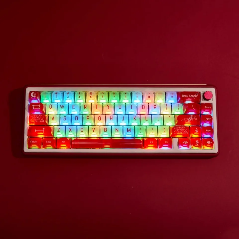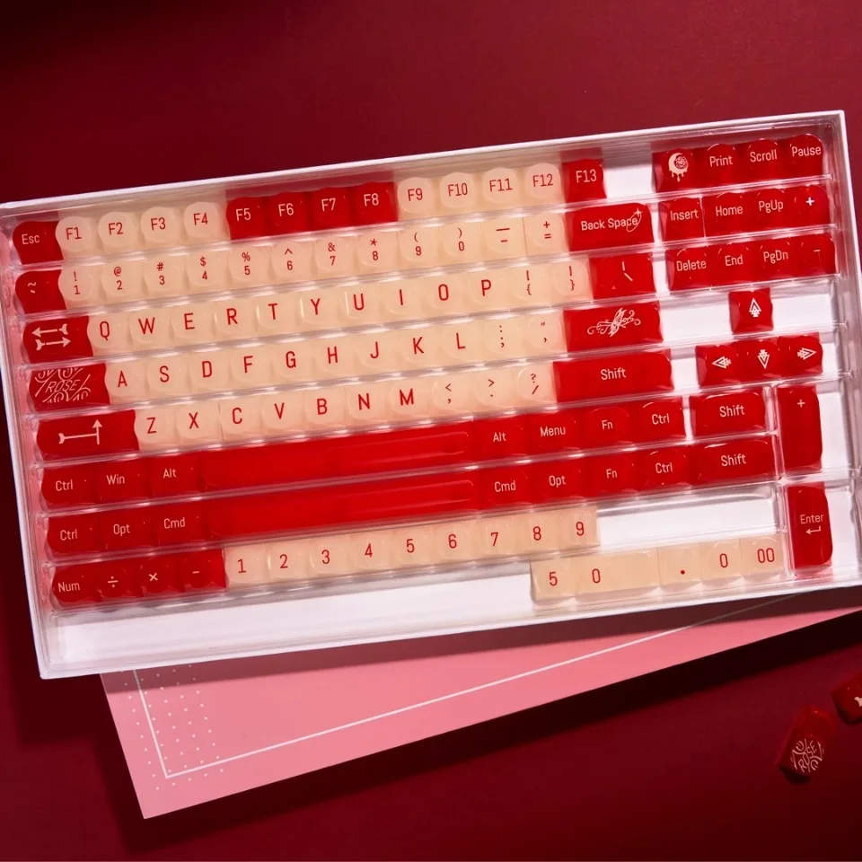 Juego de teclas con tema de vidrio de colores 162Key PC Tapa de teclado transparente personalizada Perfil DDA Tapa de llave de juego para regalo de teclado mecánico