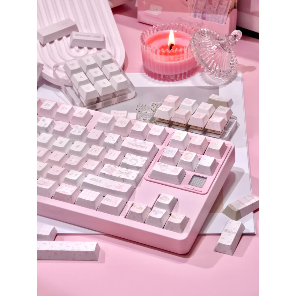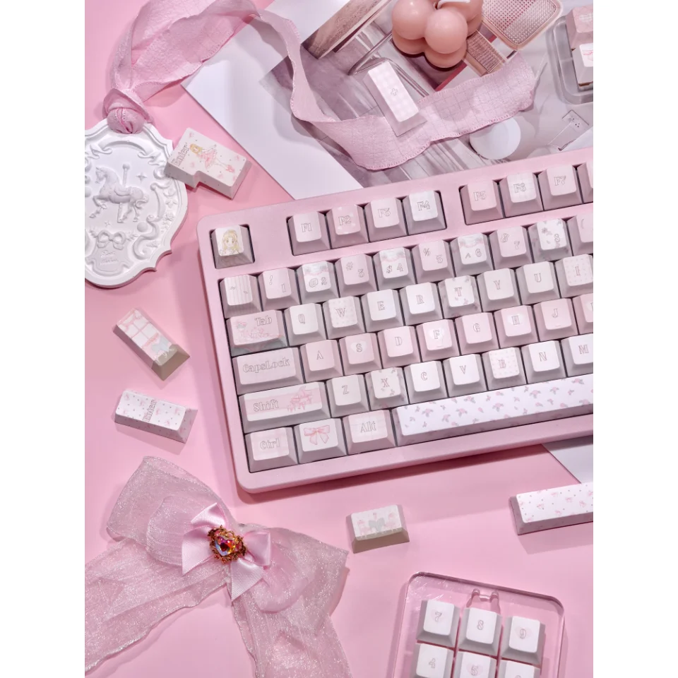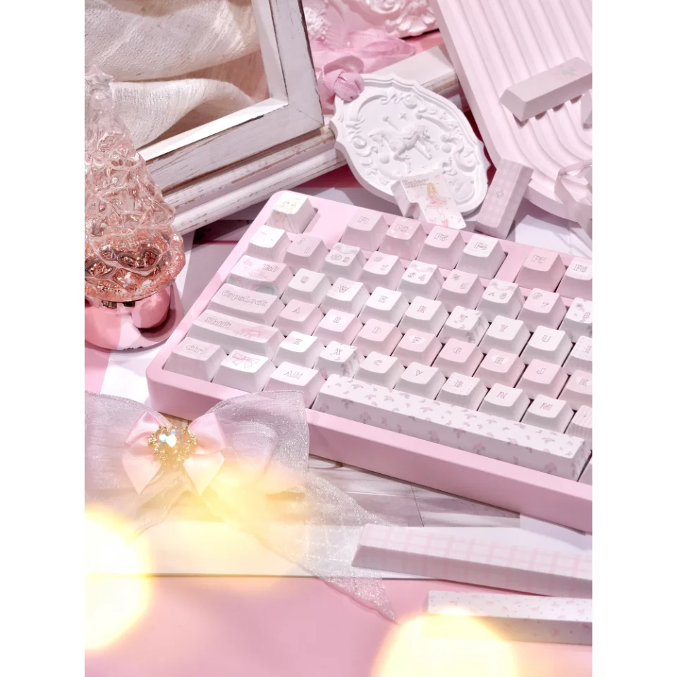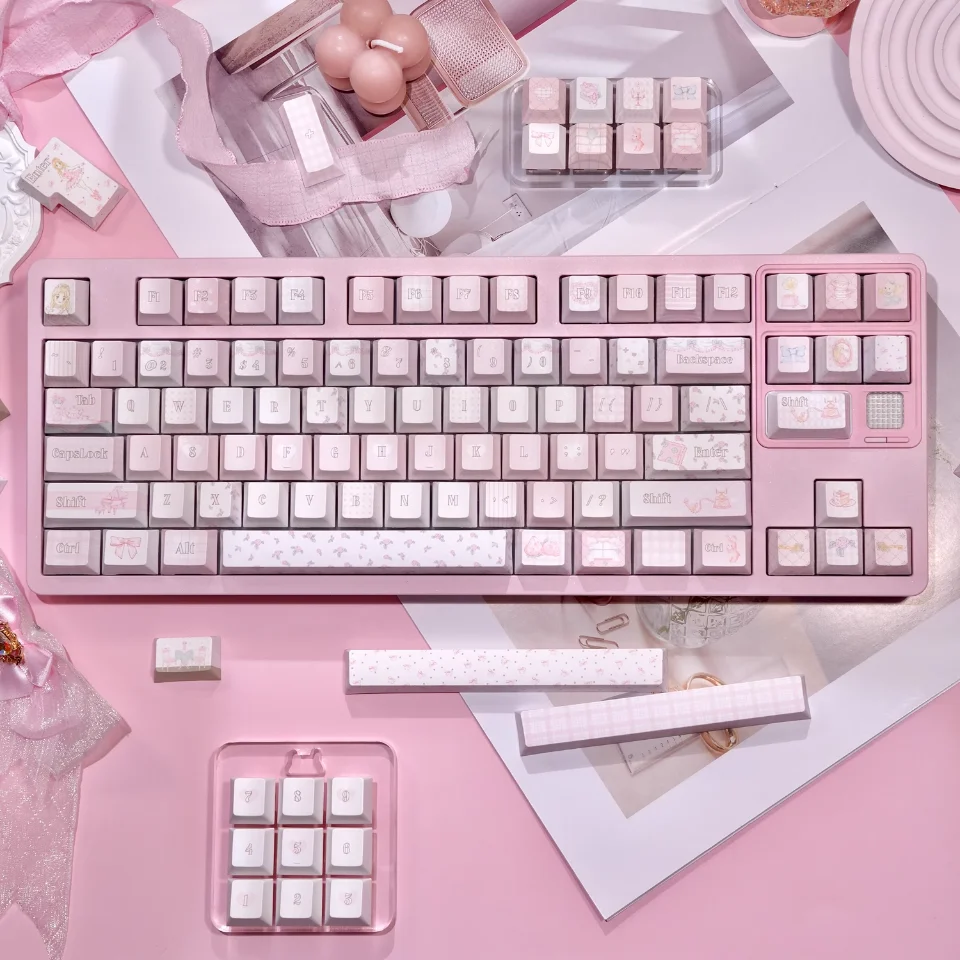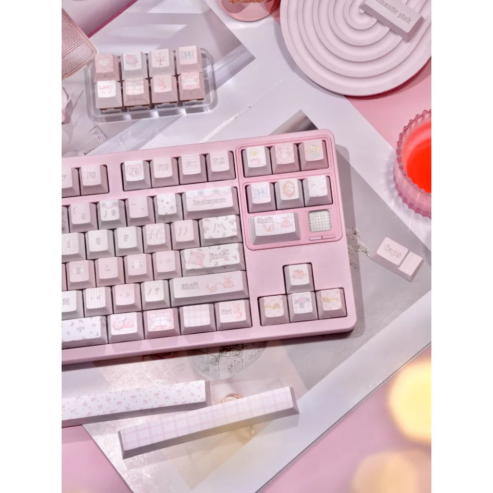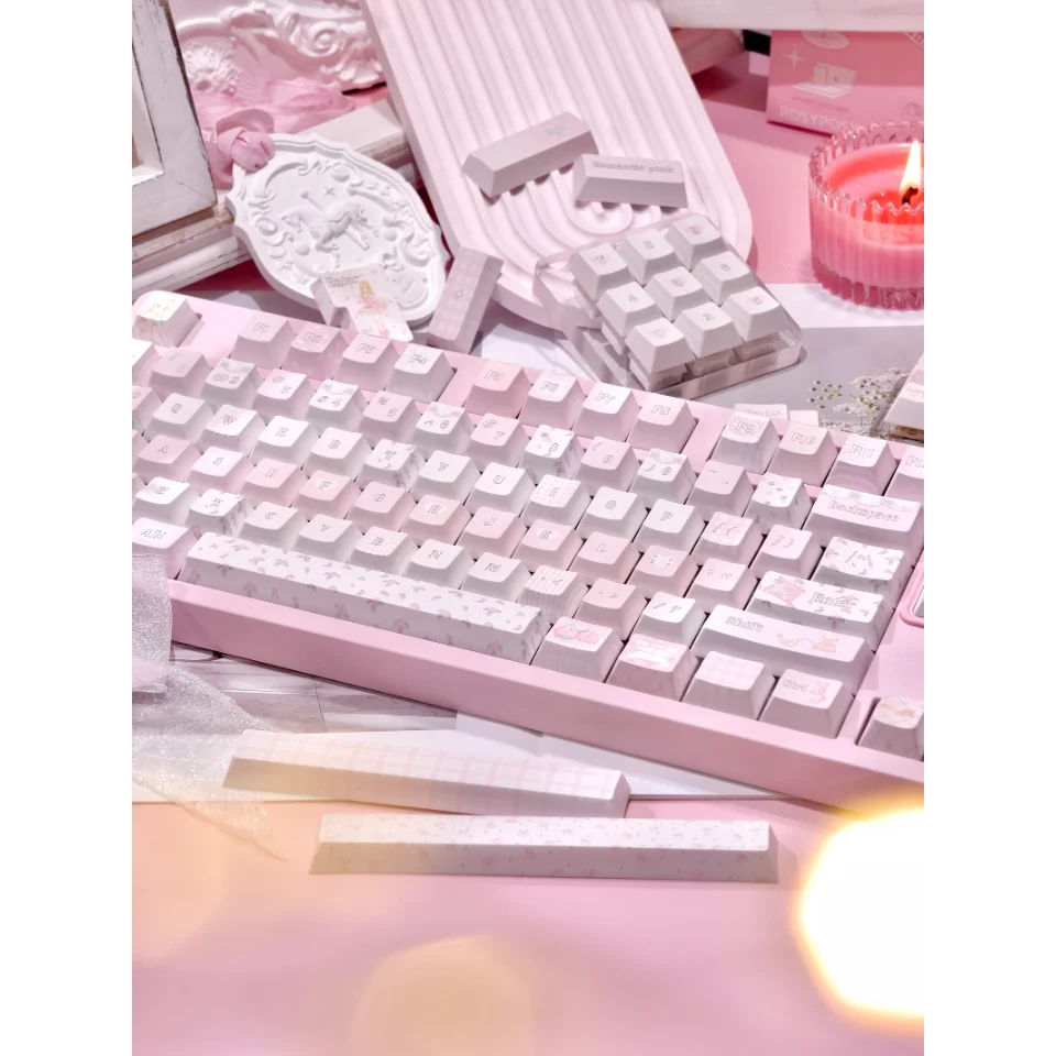 Juego de teclas con tema dulce rosa, perfil de cereza, sublimación PBT, teclas originales hechas a mano personalizadas para accesorios de teclado mecánico