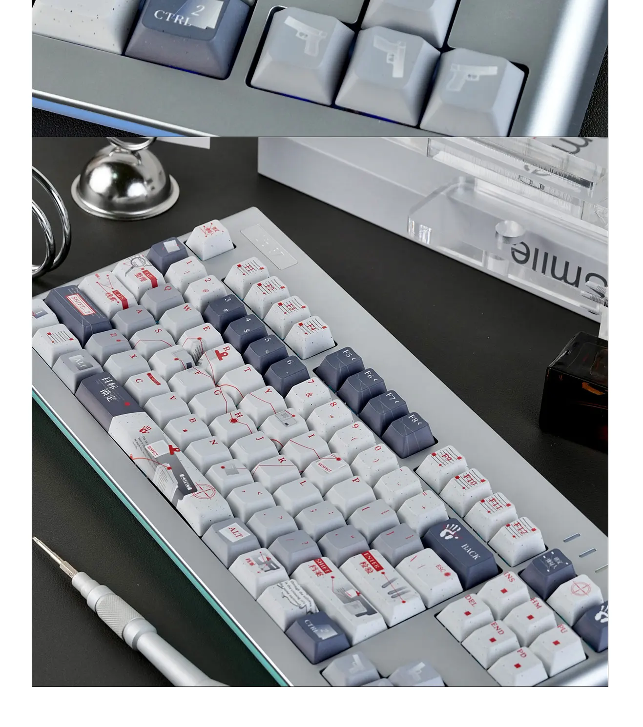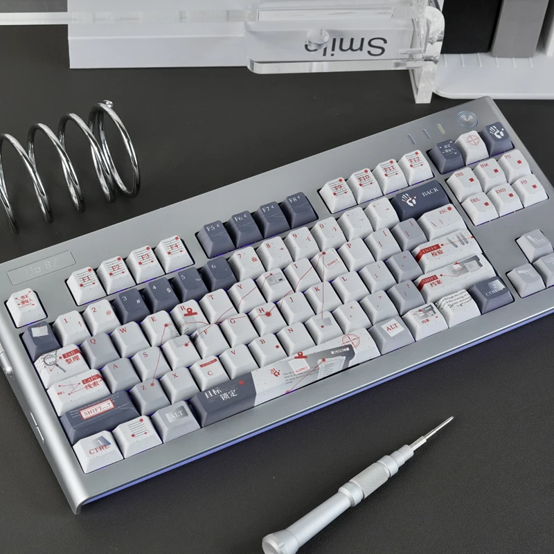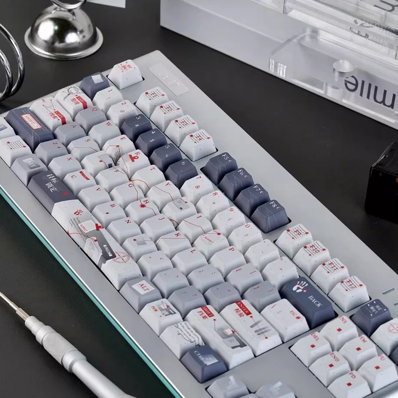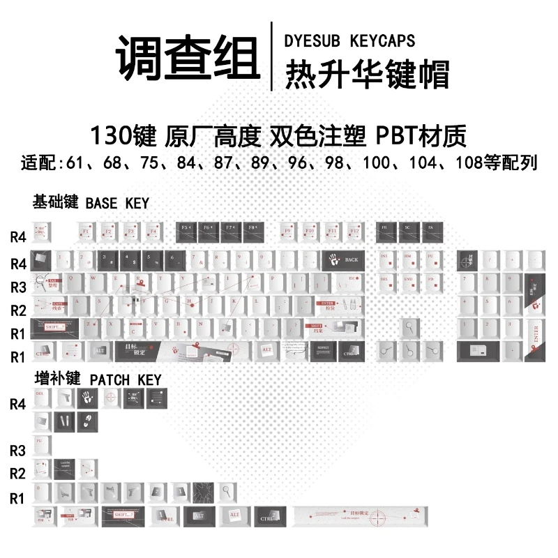 Juego de teclas temáticas del equipo de investigación, perfil de cereza PBT, teclas hechas a mano originales personalizadas para accesorios de teclado mecánico