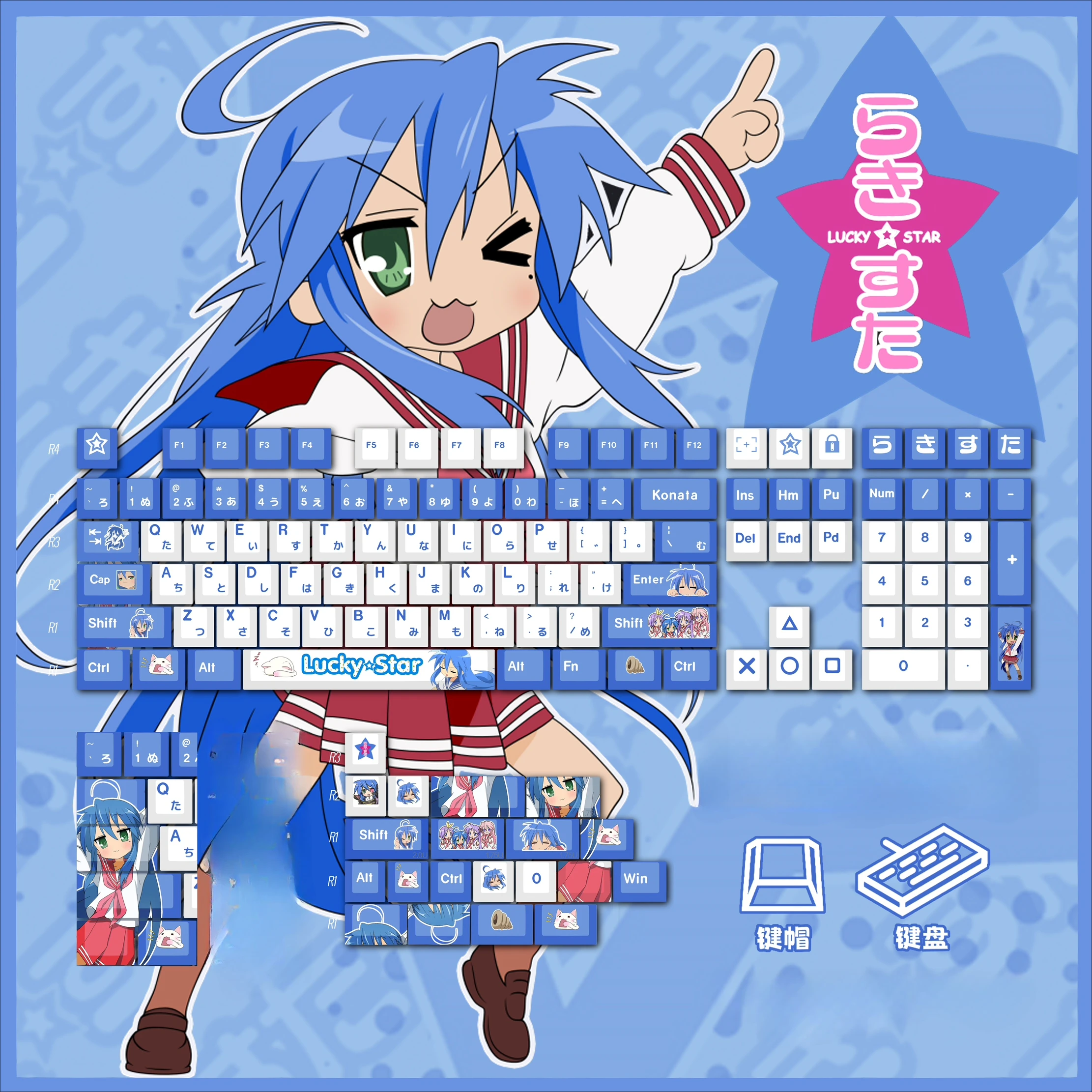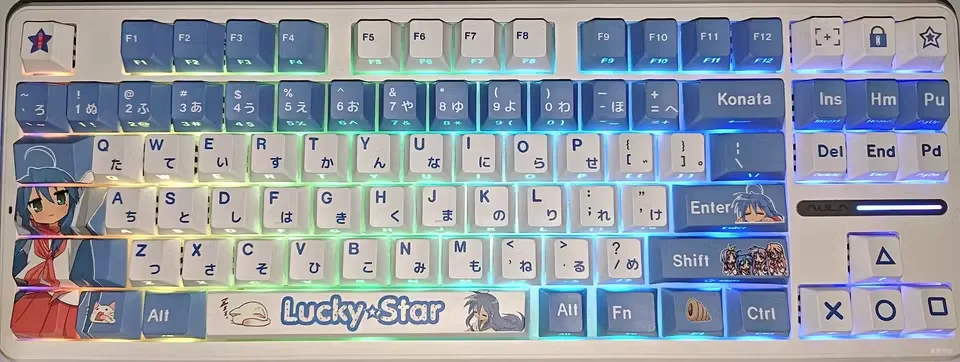 Juego de teclas con tema de estrella de la suerte, color púrpura y blanco, teclas de perfil de cereza personalizadas para accesorios de teclado mecánico