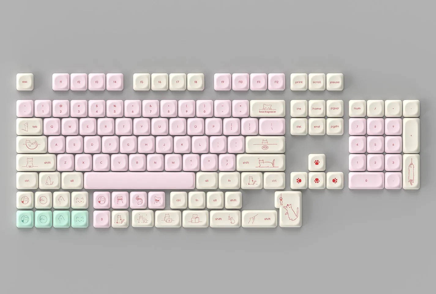 Comprar Juego de teclas con tema de gato bonito, sublimación PBT personalizada, perfil de cereza Moa, tapa de teclado para accesorios de teclado mecánico