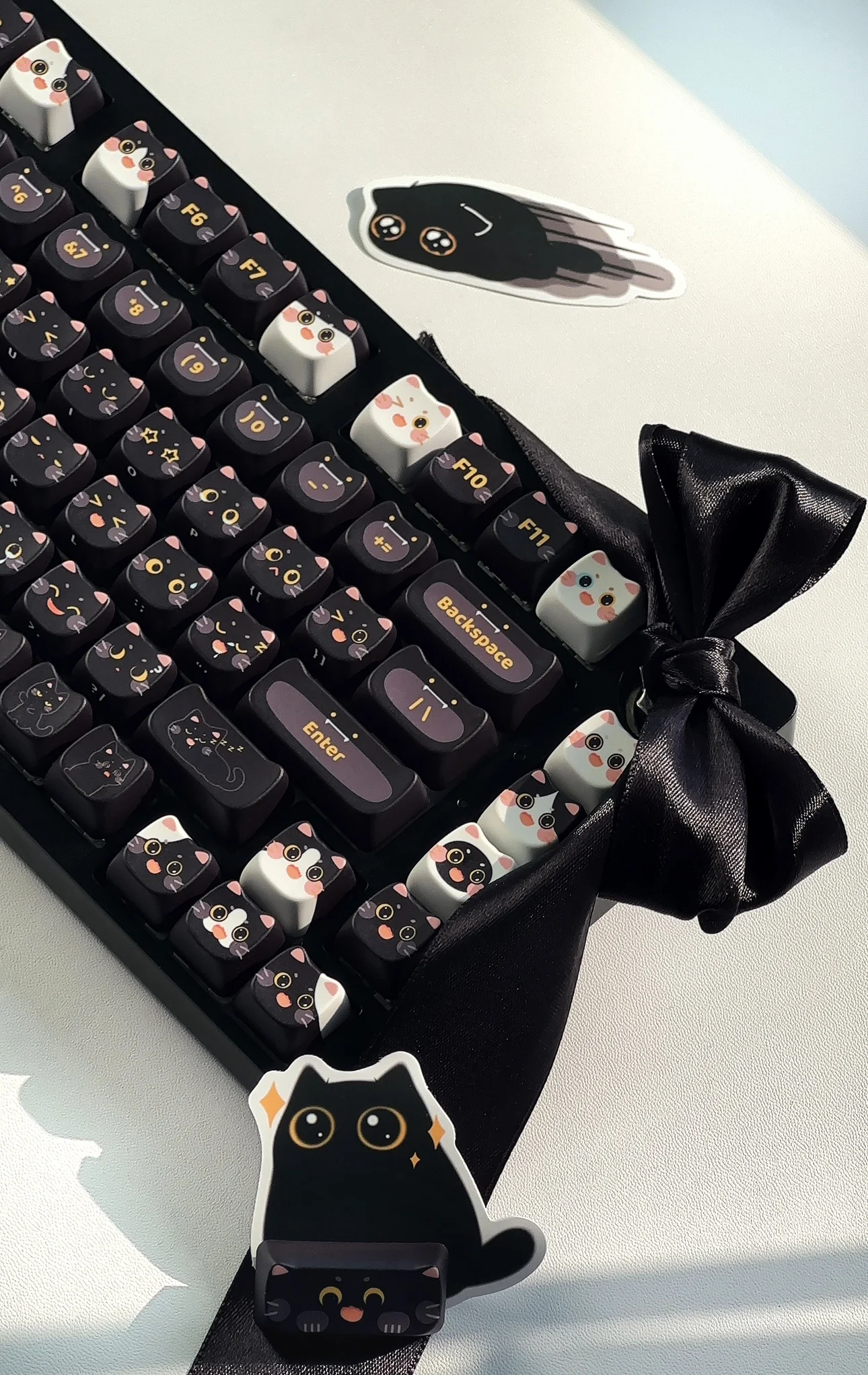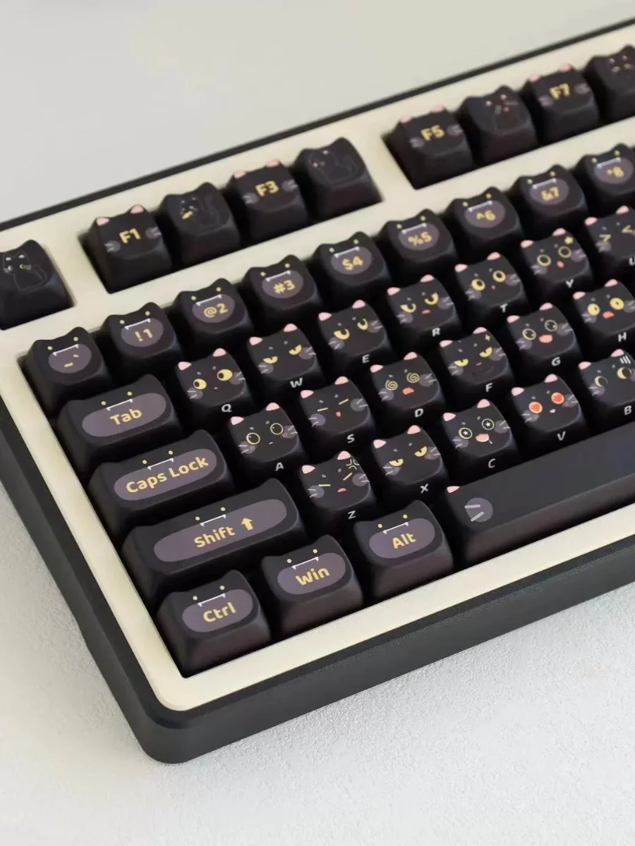 Juego de teclas con tema de gato negro Retro, perfil MOA de sublimación PBT personalizado, tapa de teclado bonita para accesorios de teclado mecánico