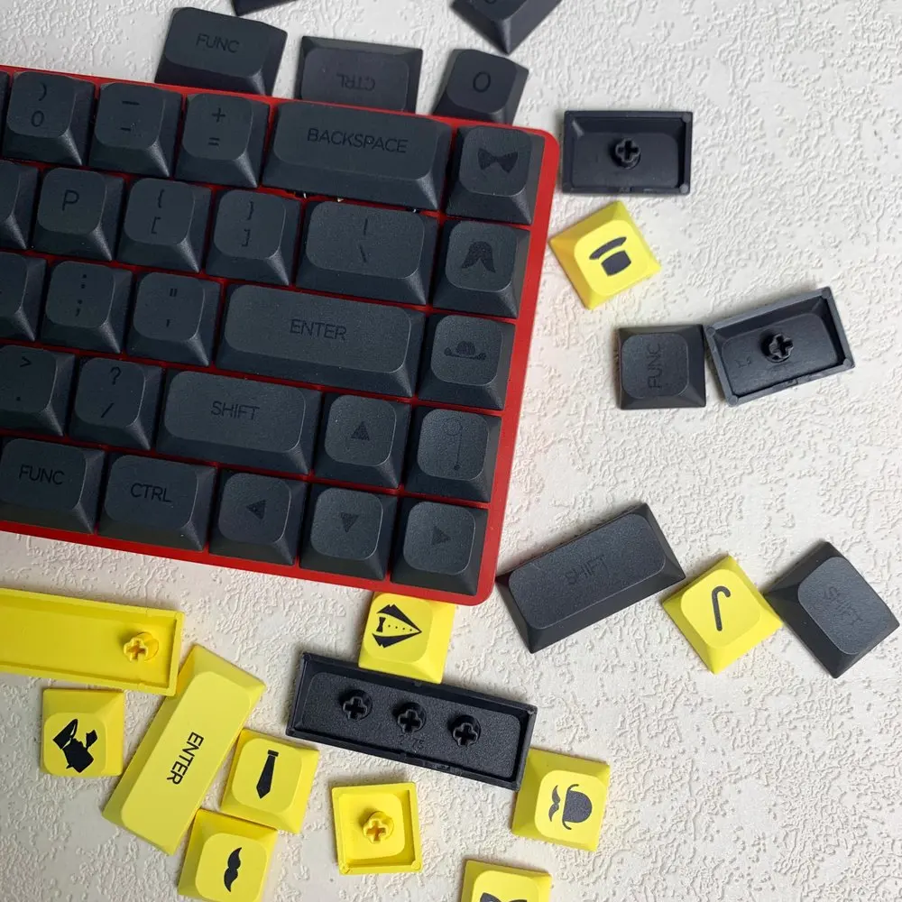 Juego de teclas temáticas de interruptor bajo negro del mismo momento PBT, teclas originales hechas a mano personalizadas para accesorios de teclado mecánico, regalo