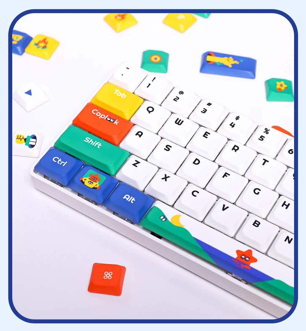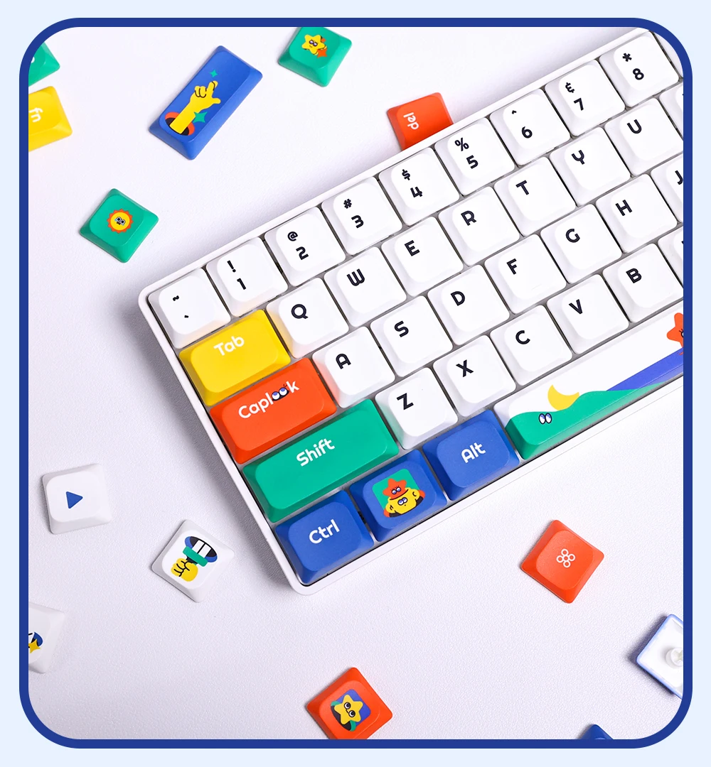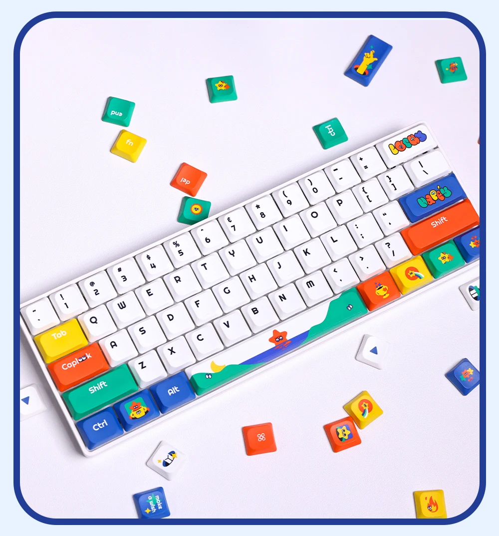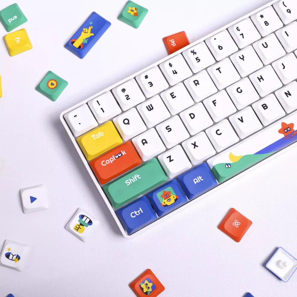 Juego de teclas con tema Lucky, tapa de teclado de dibujos animados bonita personalizada PBT de 125 teclas, tapa de tecla para teclado mecánico 68/75/84/98