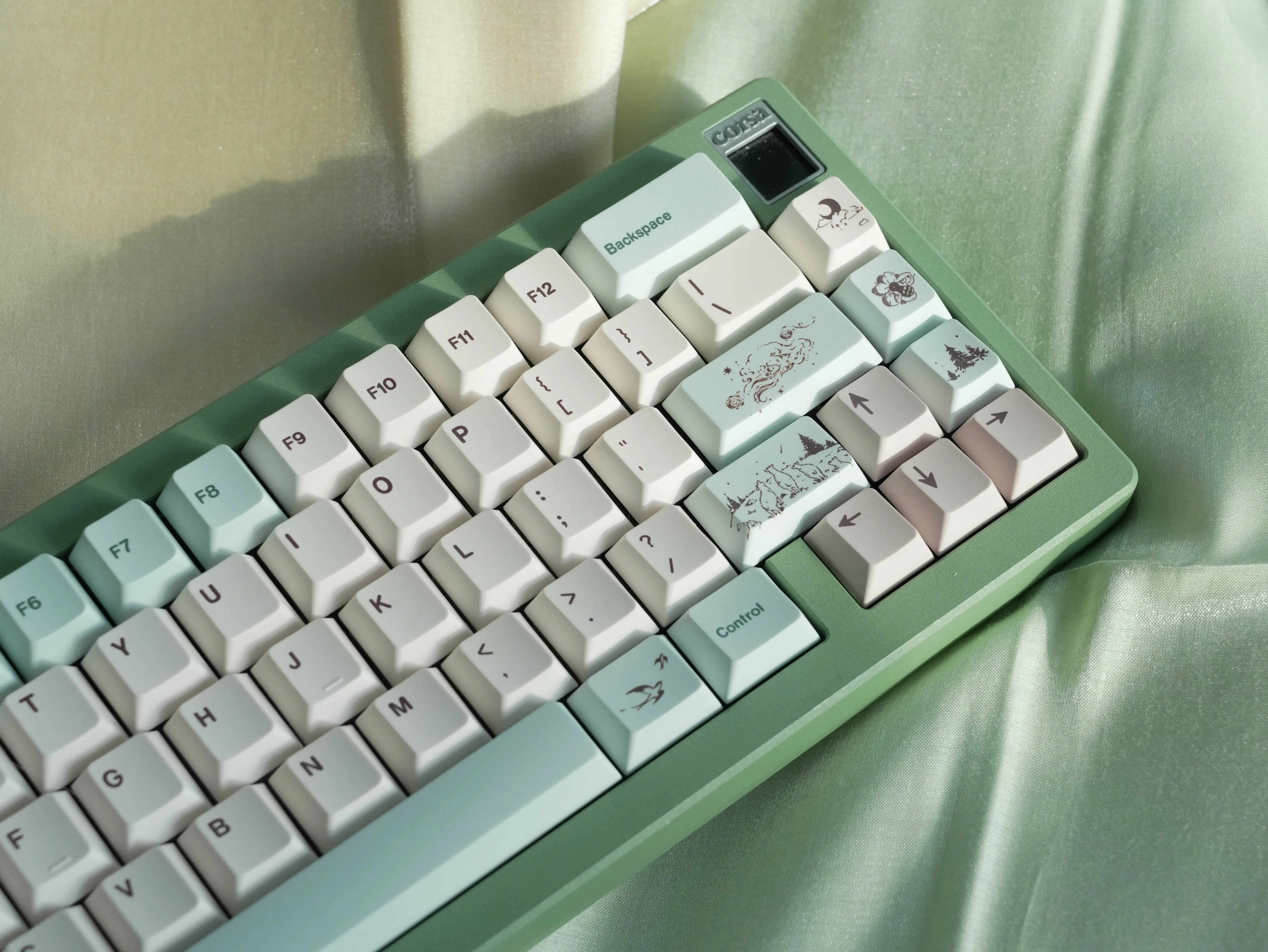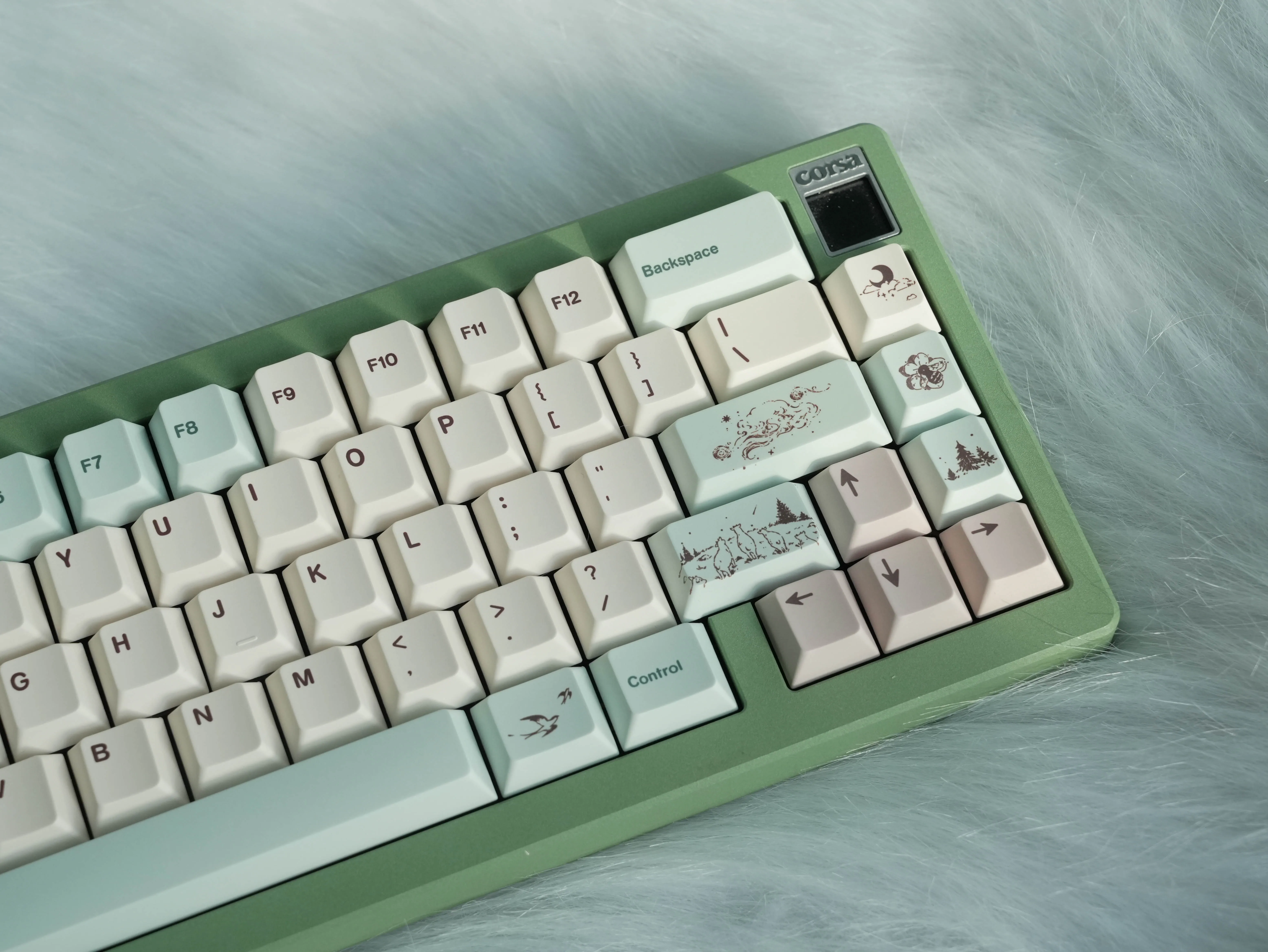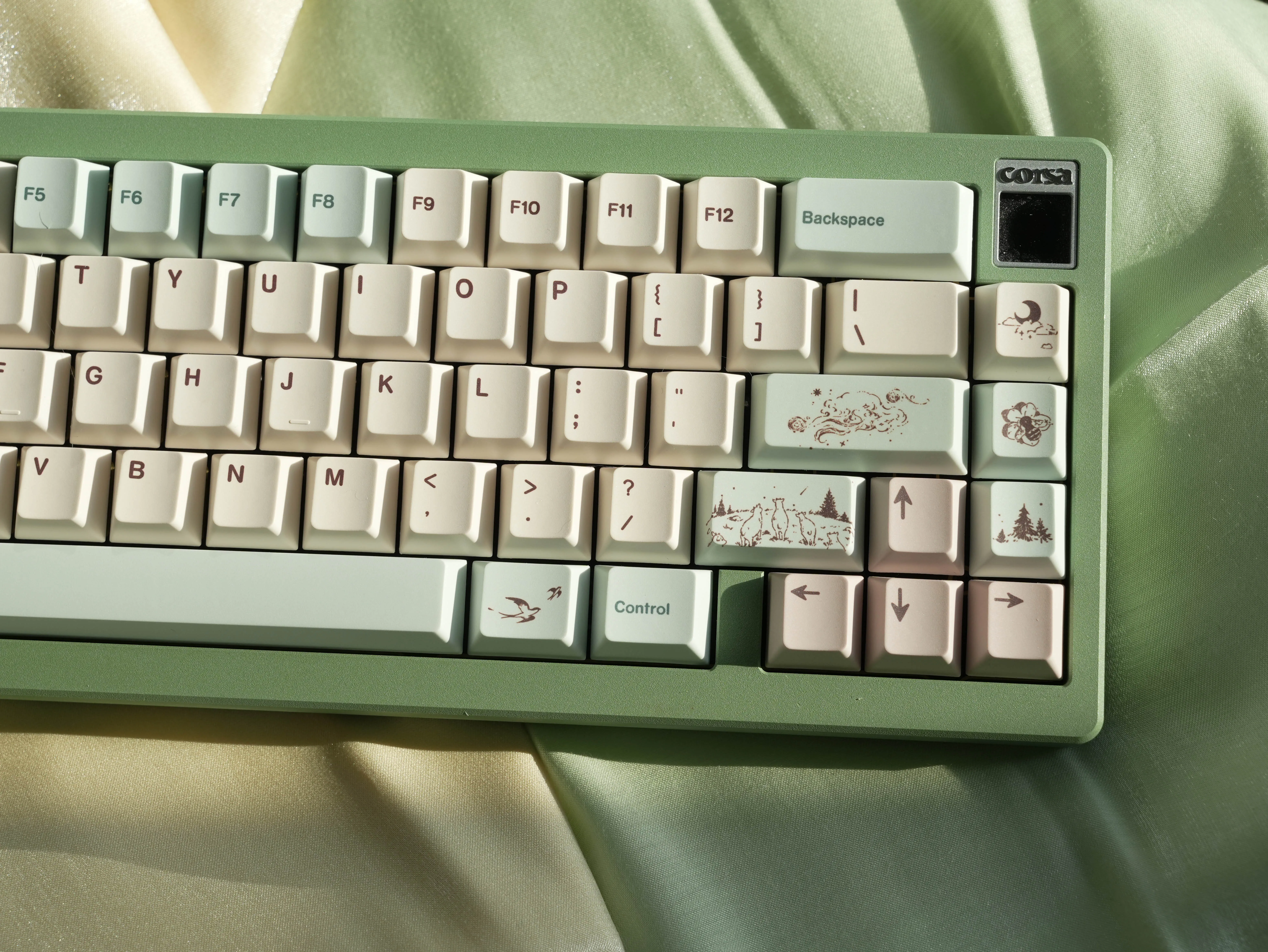 Juego de teclas con tema de luz solar verde, teclas de perfil de cereza PBT Retro para teclado mecánico, accesorio de personalidad, teclas personalizadas