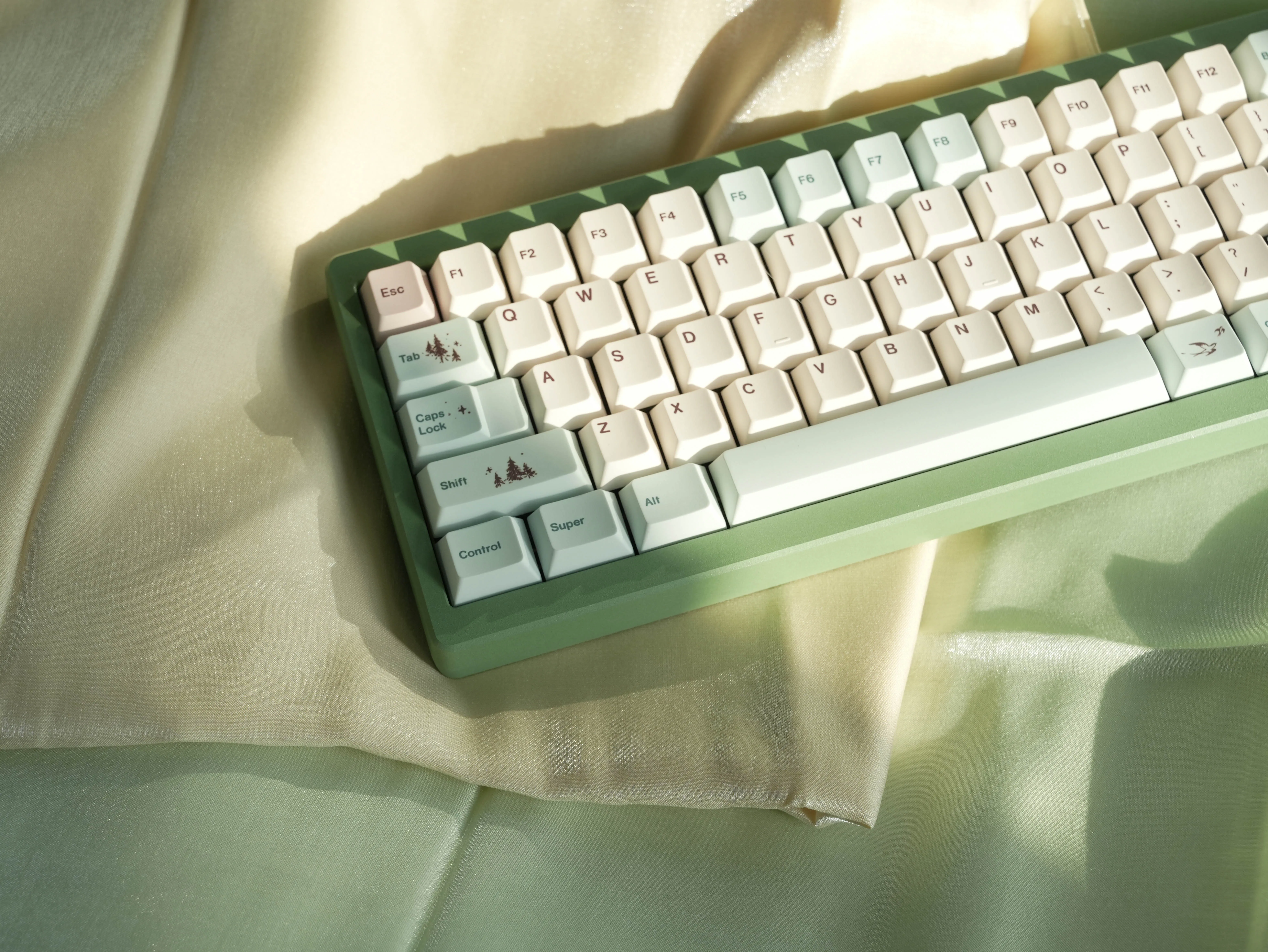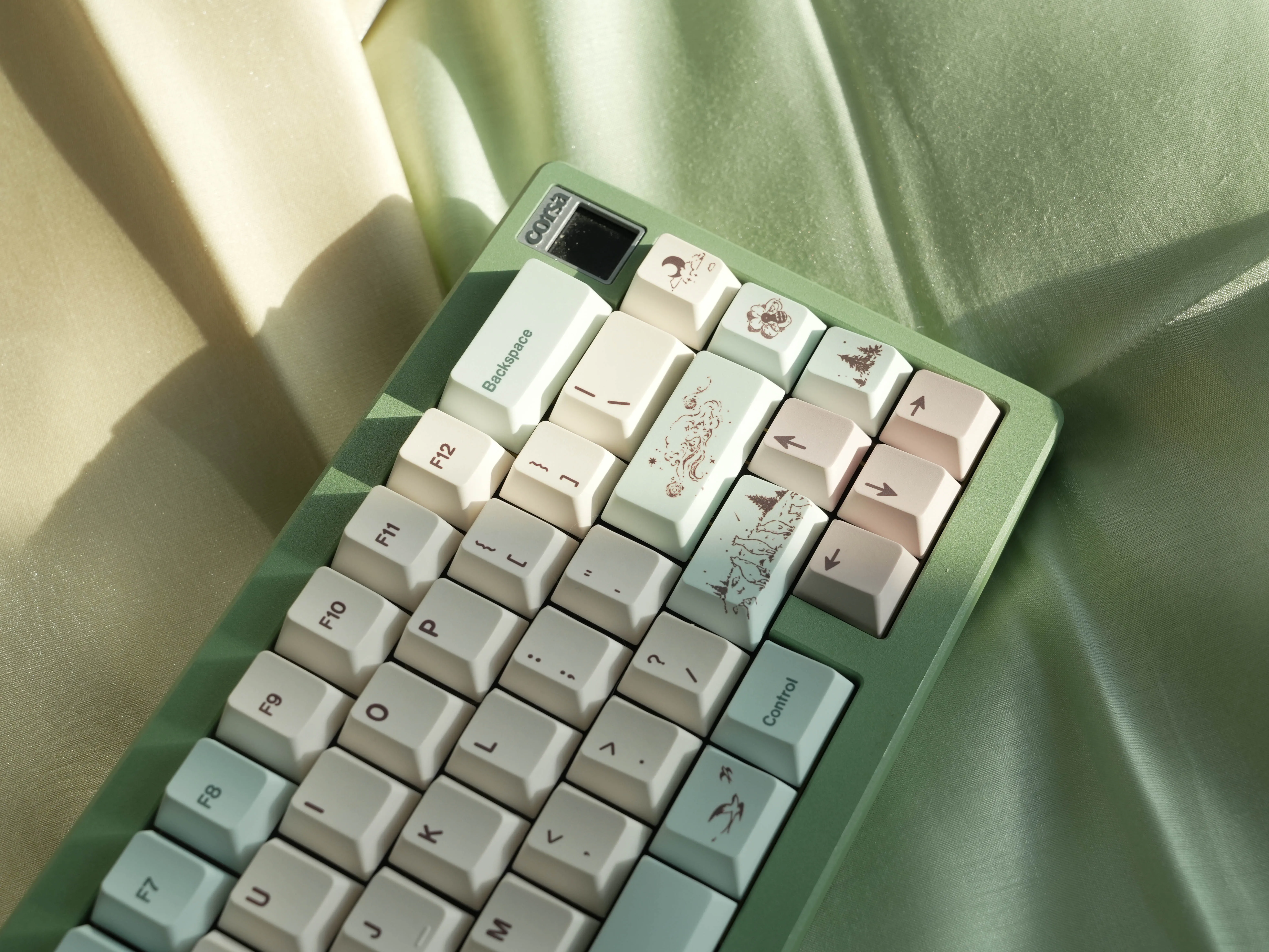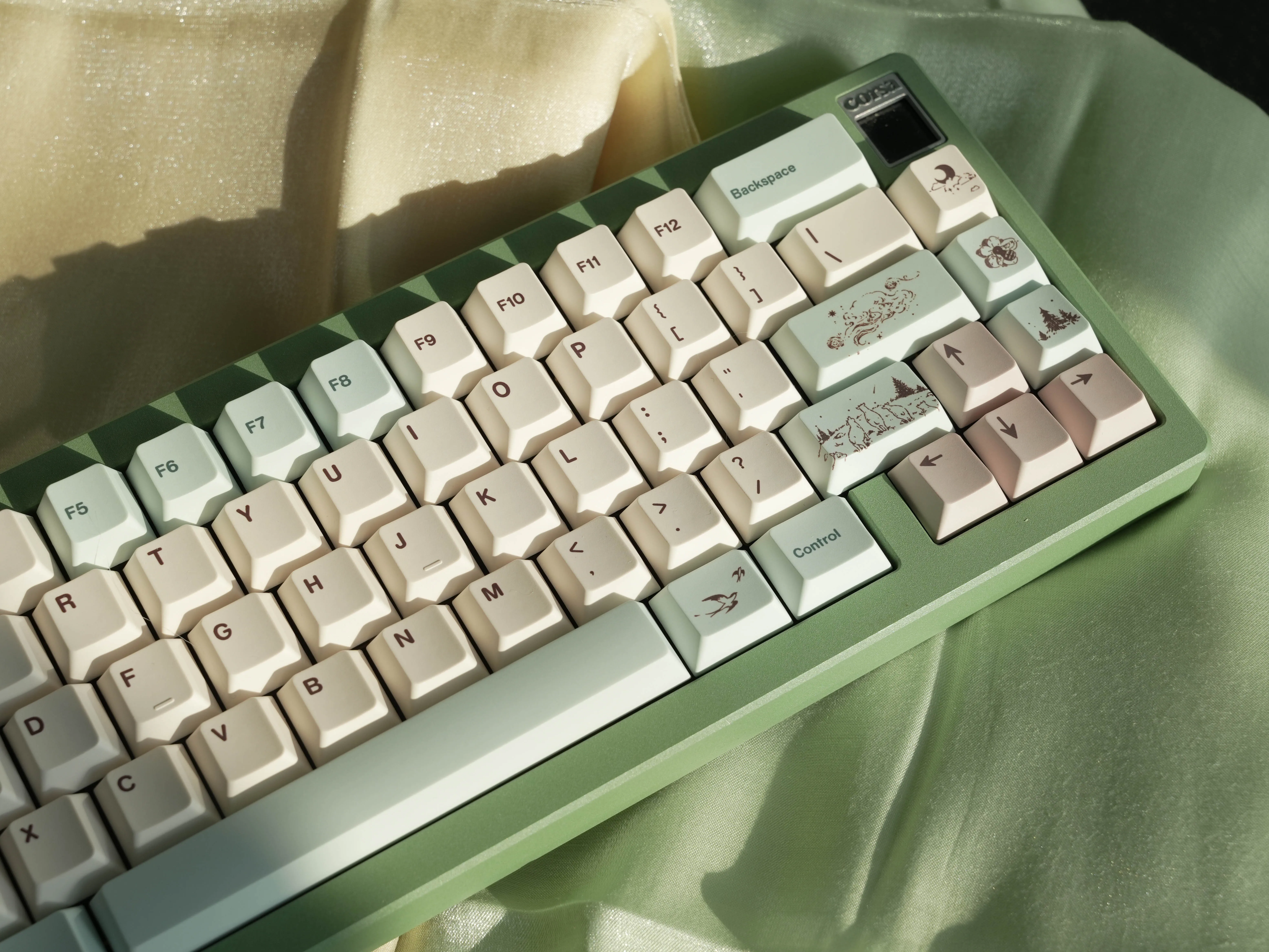 Juego de teclas con tema de luz solar verde, teclas de perfil de cereza PBT Retro para teclado mecánico, accesorio de personalidad, teclas personalizadas