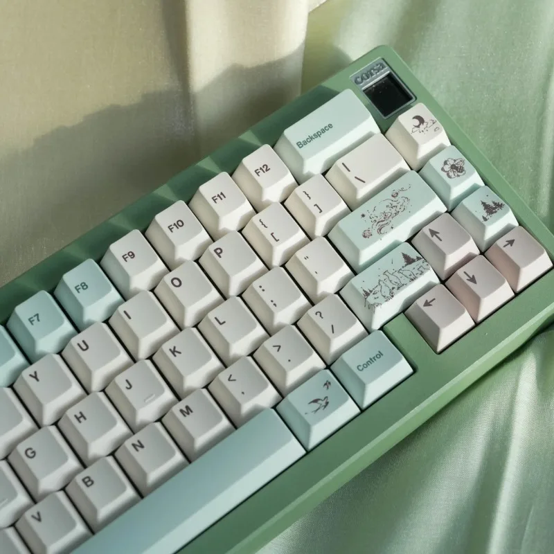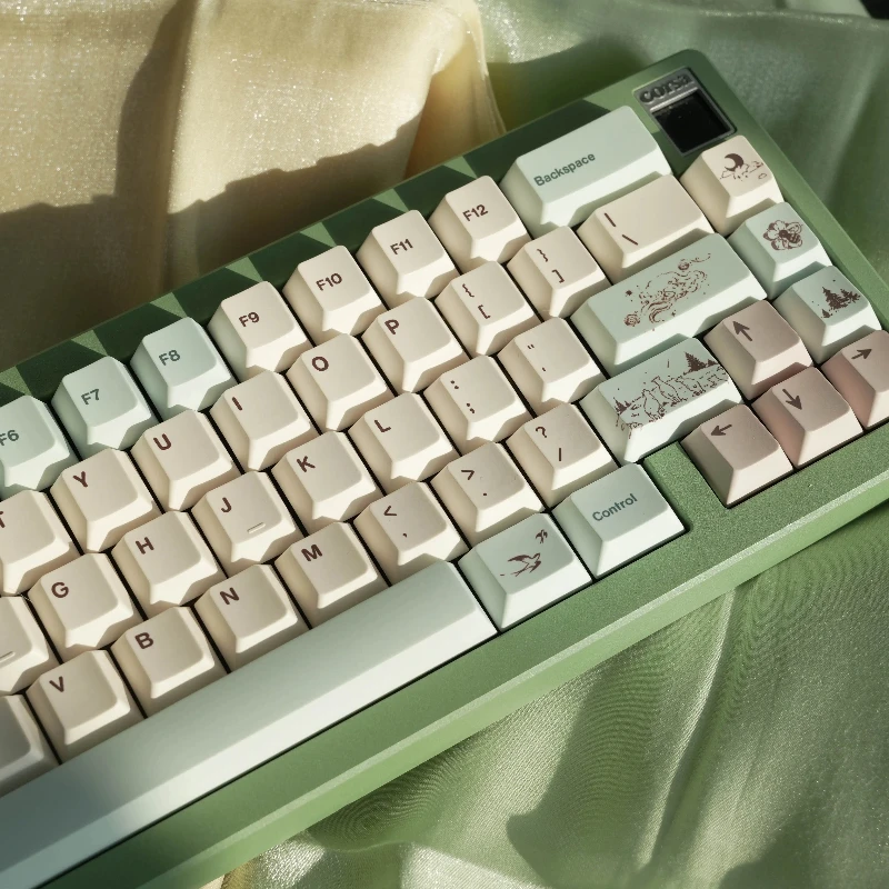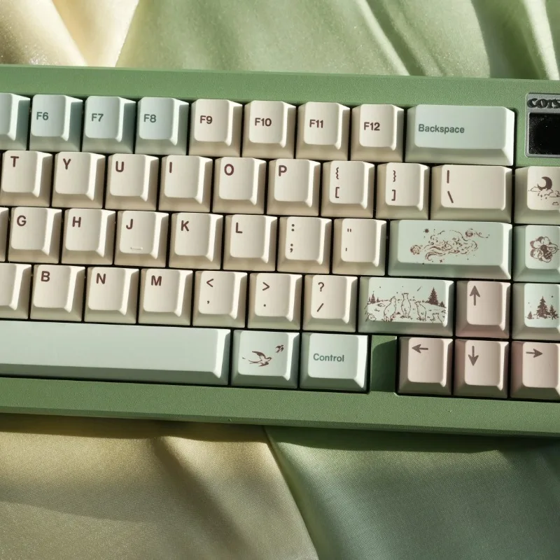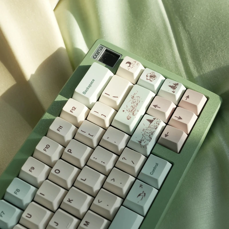 Juego de teclas con tema de luz solar verde, teclas de perfil de cereza PBT Retro para teclado mecánico, accesorio de personalidad, teclas personalizadas