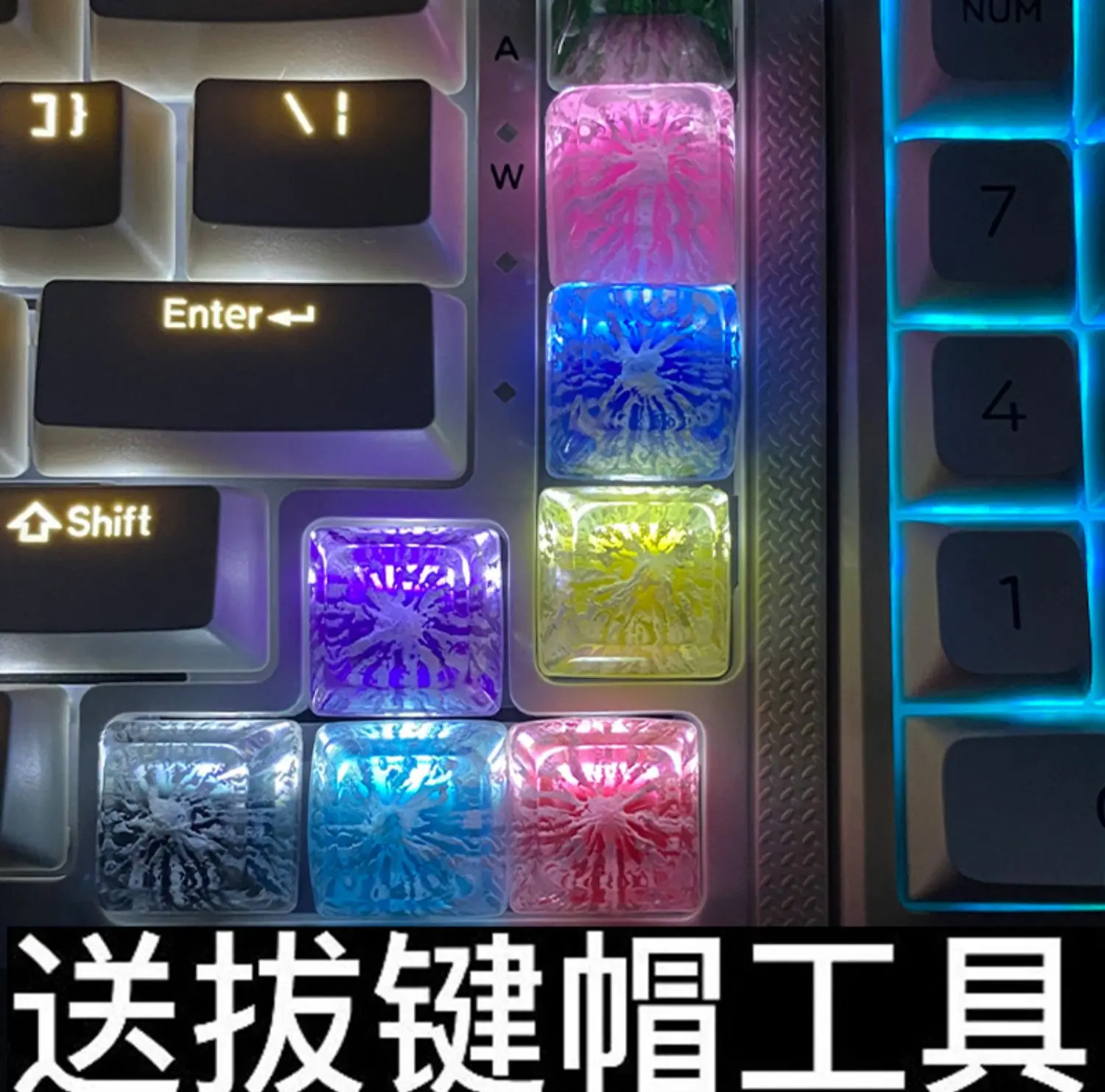 Juego de teclas temáticas de montañas y ríos, teclas artesanales de resina 3D, teclas personalizadas de transmisión para accesorios de teclado mecánico