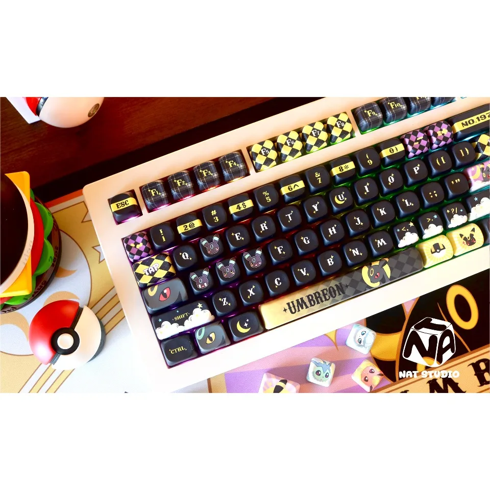 Juego de teclas temáticas Moon Eevee, tapa de teclado de perfil MOA de sublimación PBT Original personalizada para accesorios de teclado mecánico