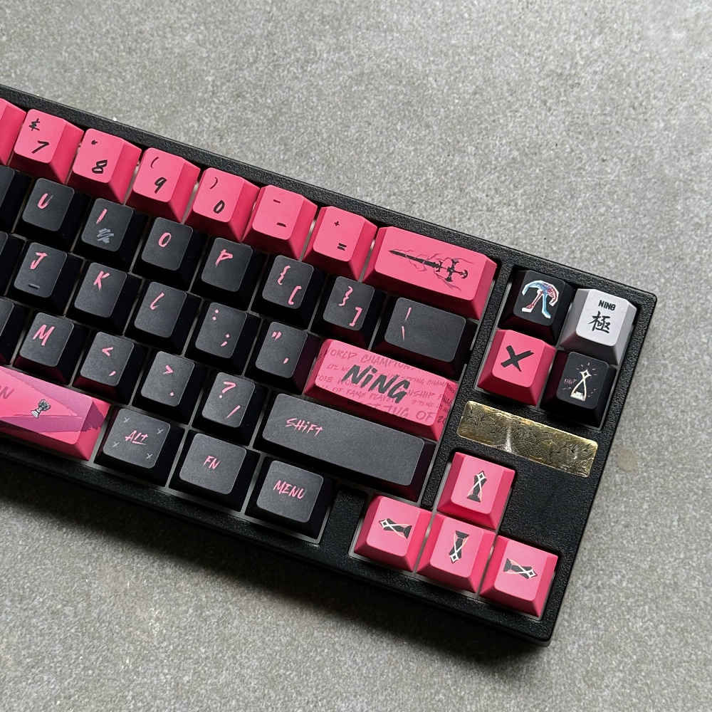 Comprar Juego de teclas con tema Ning para reproductor profesional LOL, teclas de sublimación de tinte PBT, perfil de cereza, teclas a prueba de luz para interruptor MX, 1 Juego
