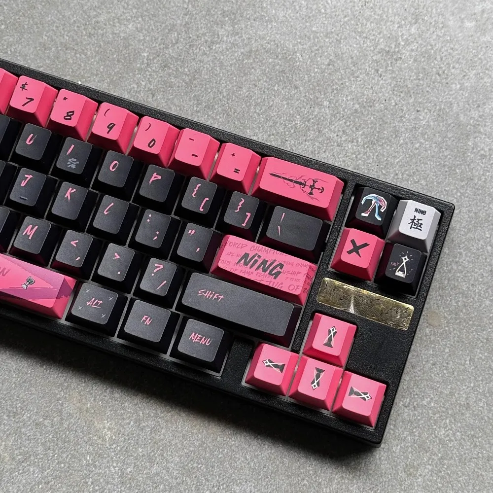 Comprar Juego de teclas con tema Ning para reproductor profesional LOL, teclas de sublimación de tinte PBT, perfil de cereza, teclas a prueba de luz para interruptor MX, 1 Juego
