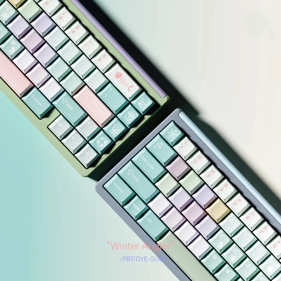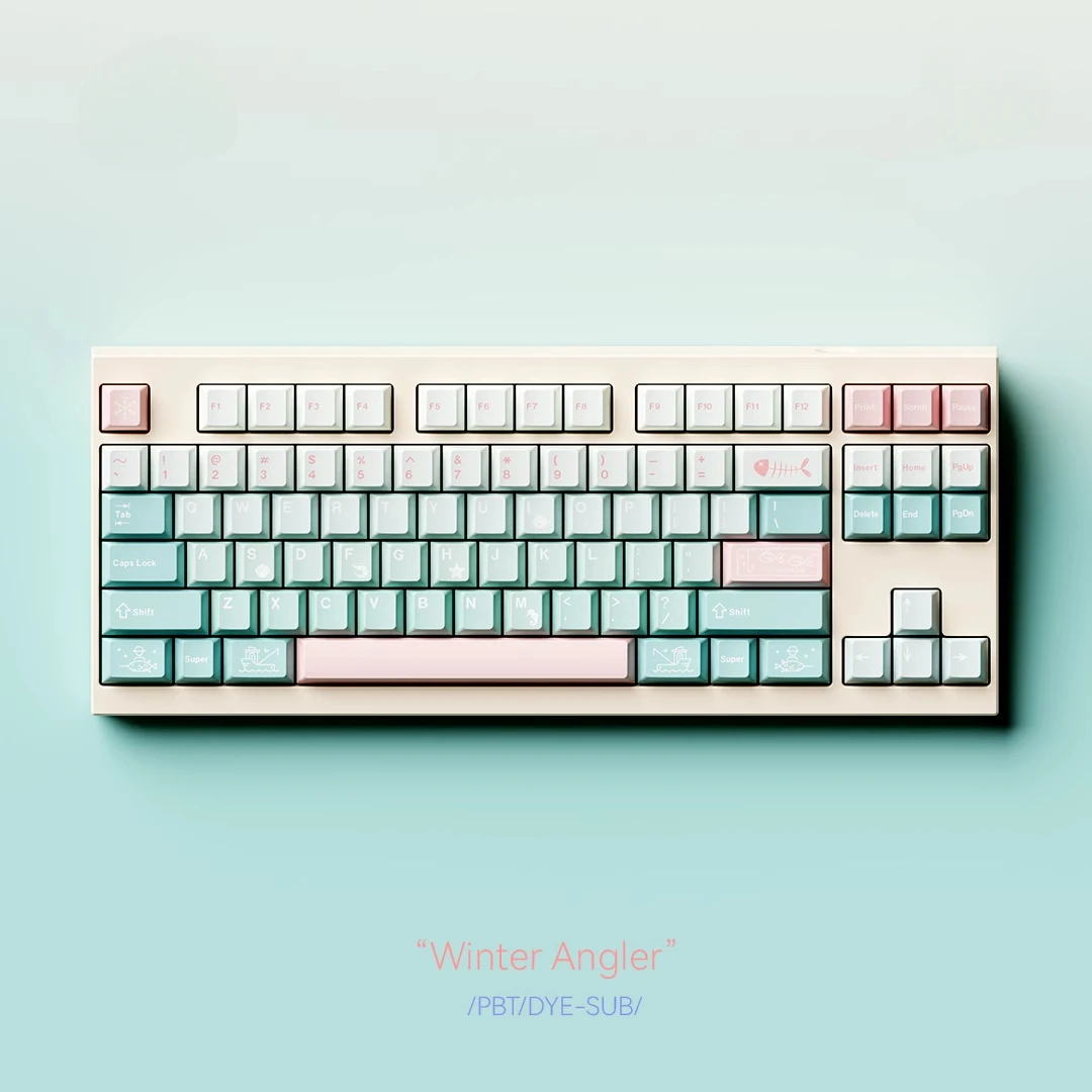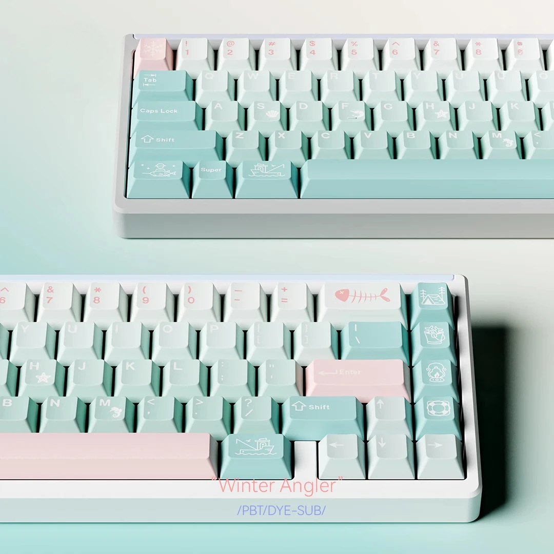 Juego de teclas con tema de pescador de invierno, perfil de cereza, sublimación PBT, teclas originales hechas a mano personalizadas para teclado mecánico, regalo