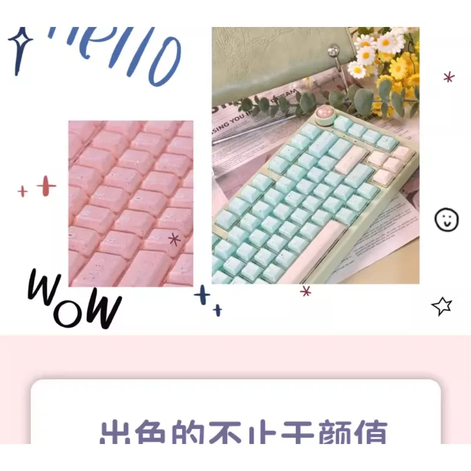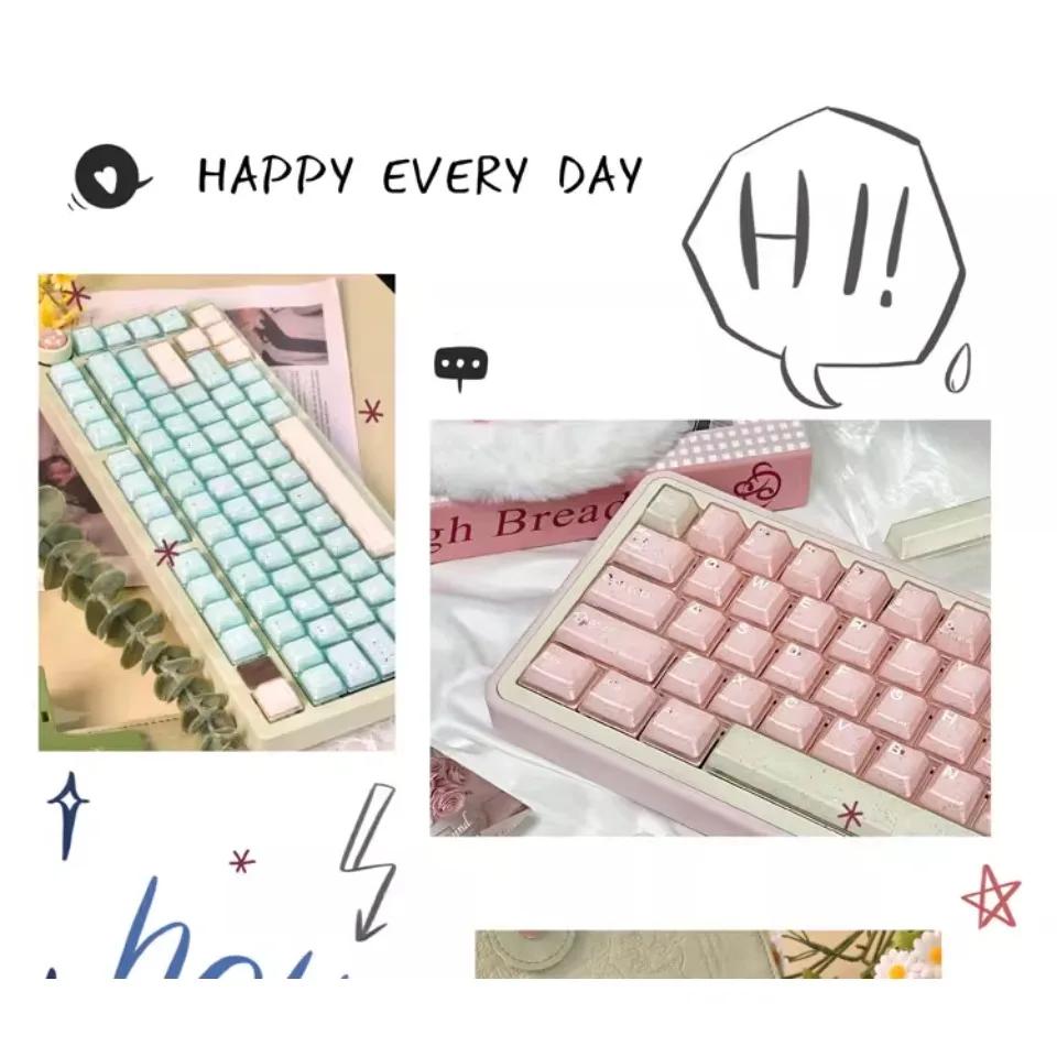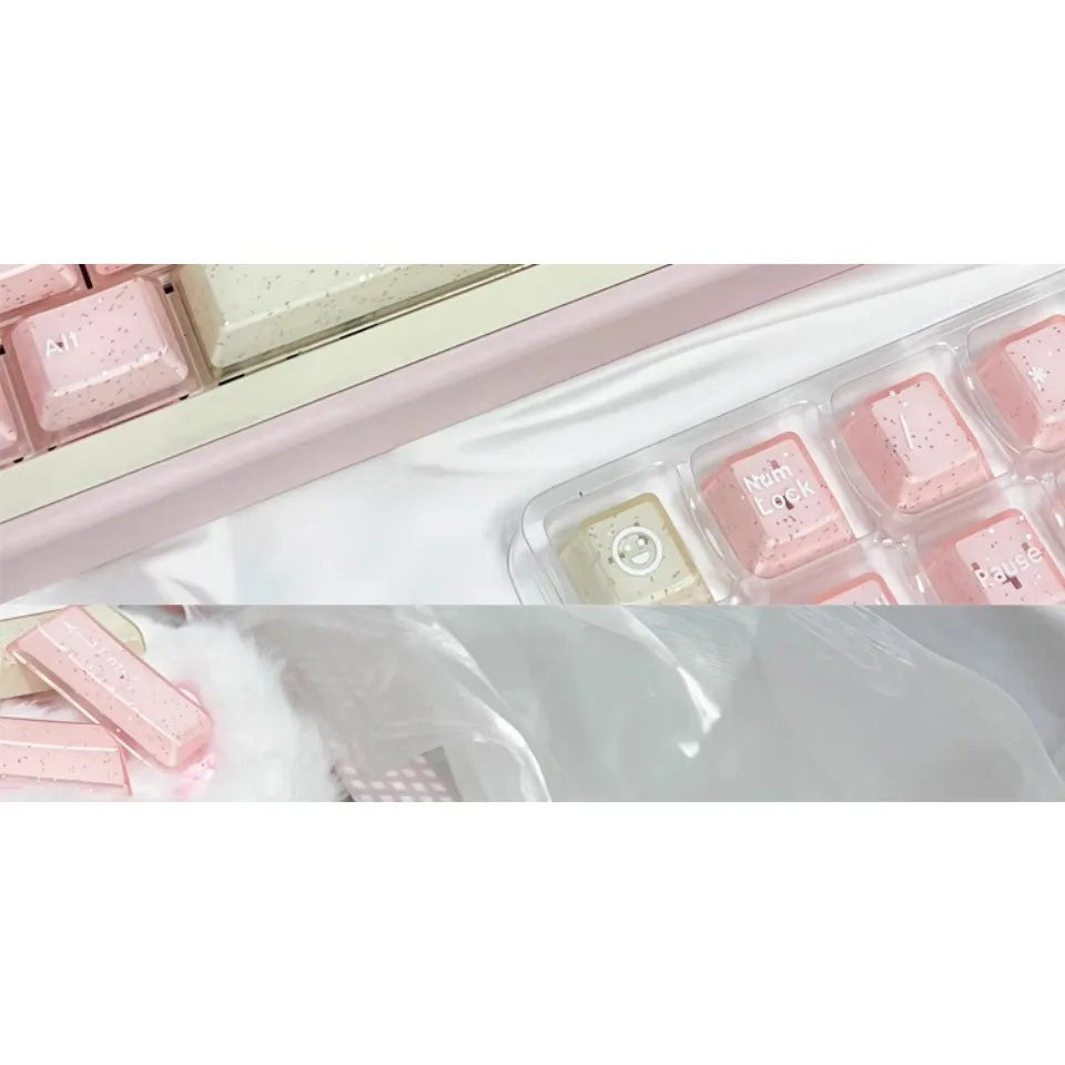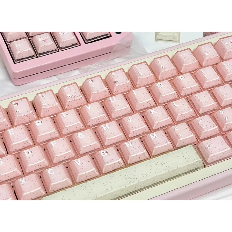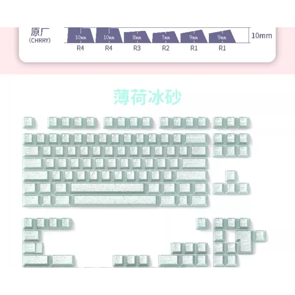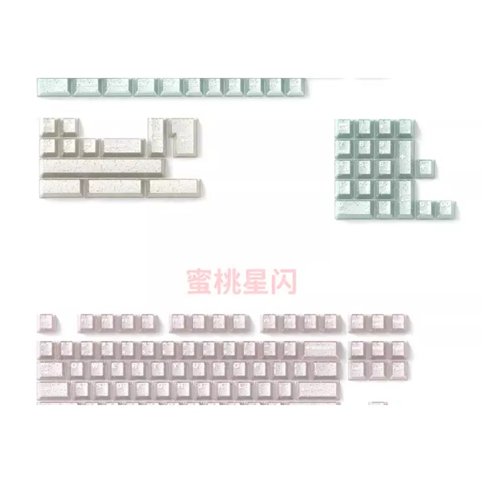 Juego de teclas con tema de polvo brillante, perfil de cereza PBT + PC, teclas originales hechas a mano personalizadas para accesorios de teclado mecánico