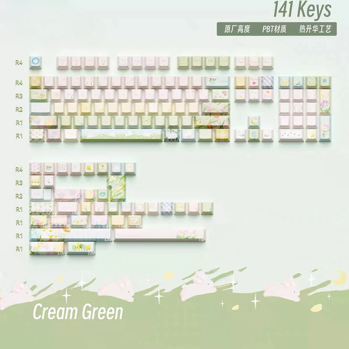 Juego de teclas Qingquan Jade Porcelain Theme, perfil Cherry PBT, 141 teclas, teclas originales personalizadas hechas a mano para teclado mecánico.