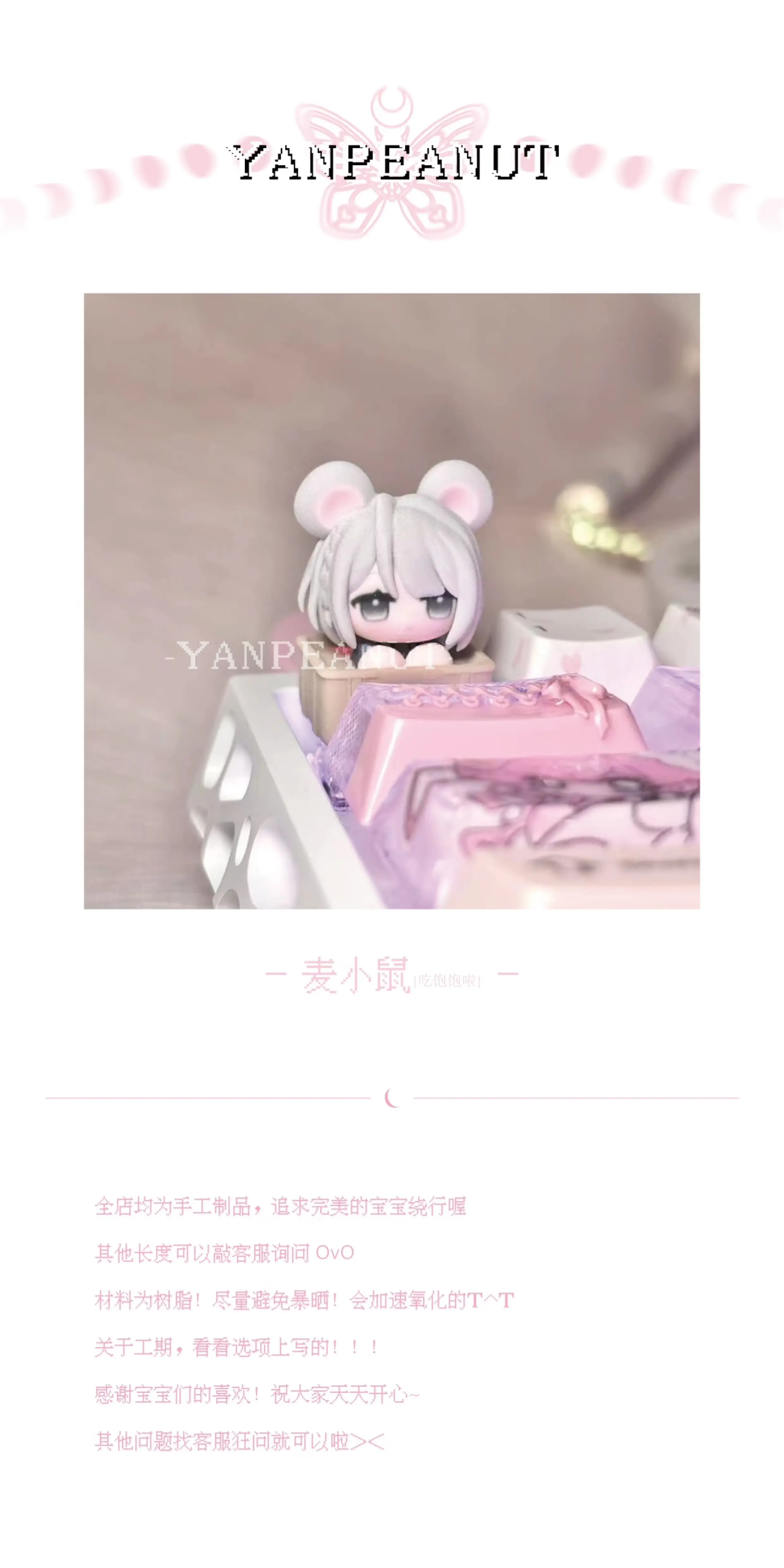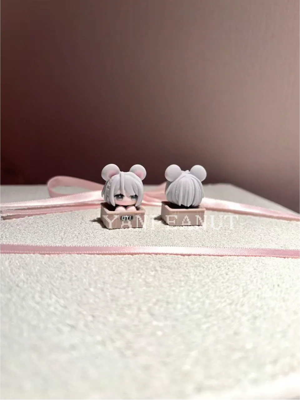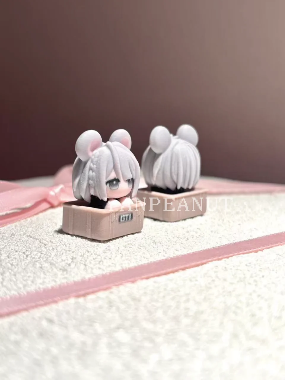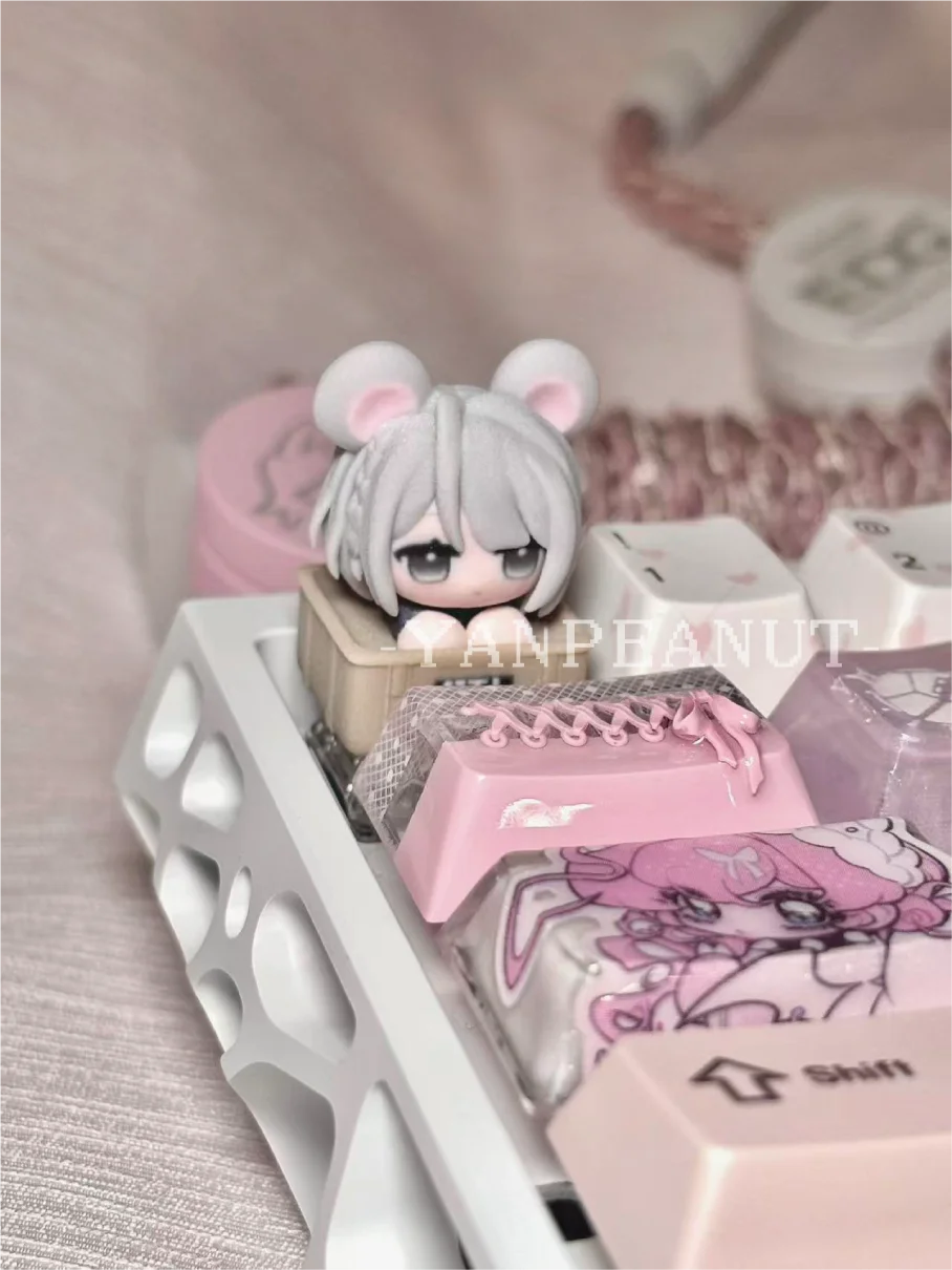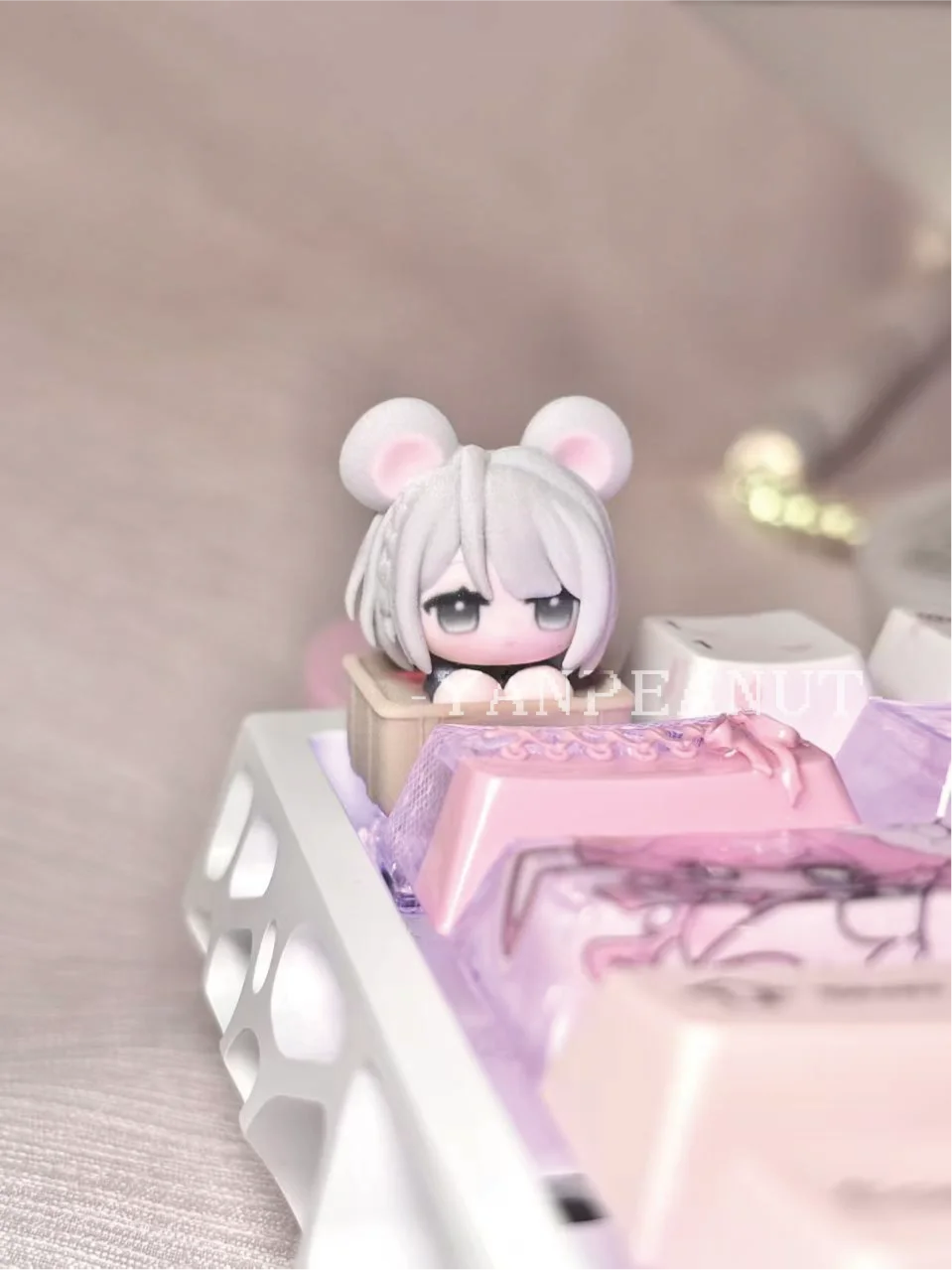 Juego de teclas con tema de ratón gris pequeño, teclas artesanales de resina 3D, teclas originales hechas a mano personalizadas para teclado mecánico, regalo