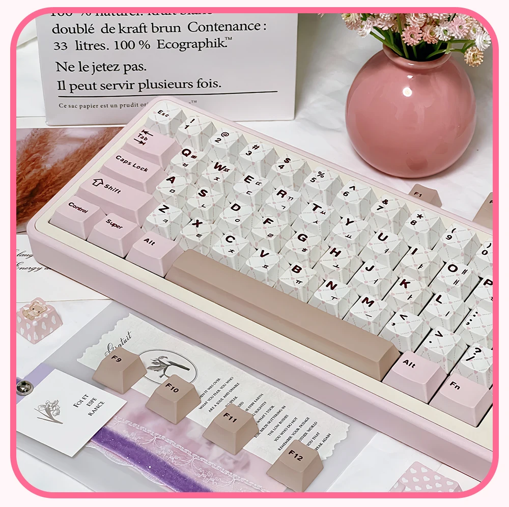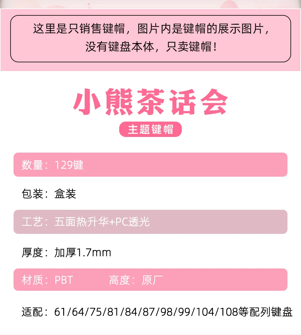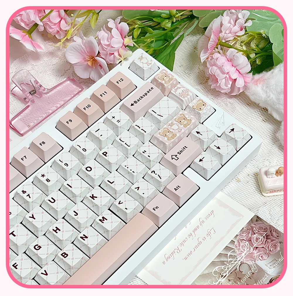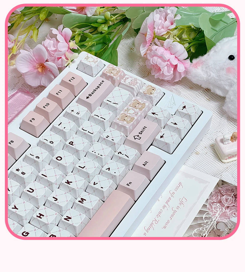 Juego de teclas temáticas rosadas para fiesta de té de osito, perfil de cereza PBT, teclas originales hechas a mano personalizadas para teclado mecánico, regalo