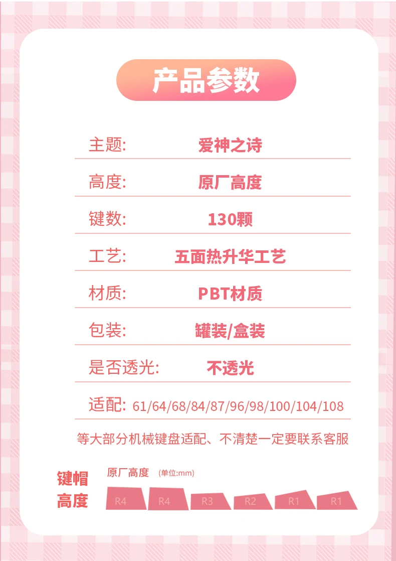 Nombre del producto: Juego de teclas temáticas del Poema del Dios AmantesColor: como se muestra en la imagen.