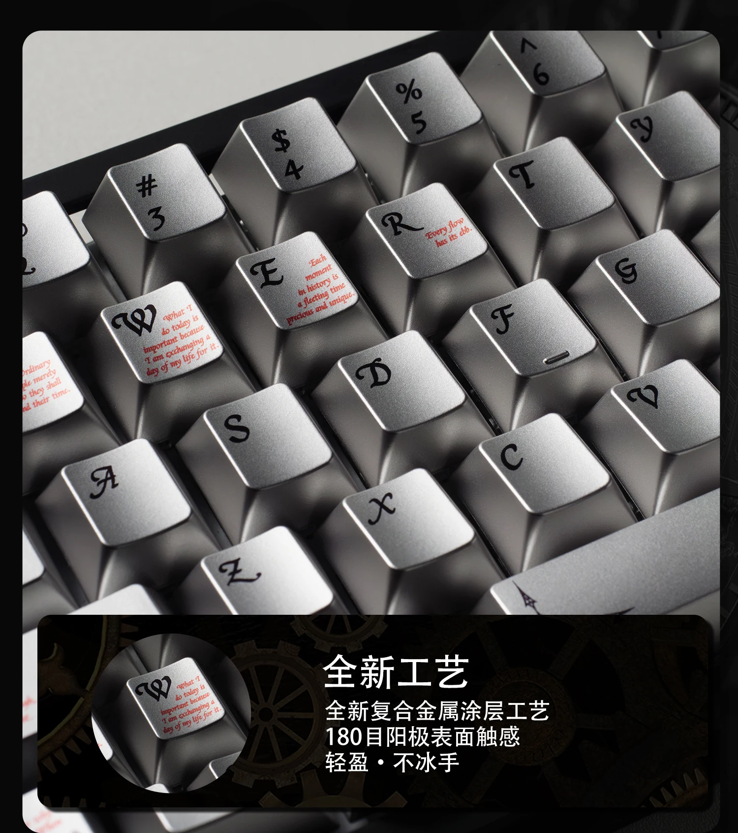 Juego de teclas con tema de plata del tiempo, perfil de cereza PBT ABS, teclas personalizadas personalizadas para accesorios de teclado mecánico