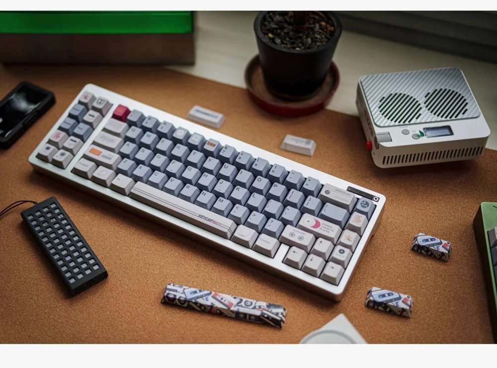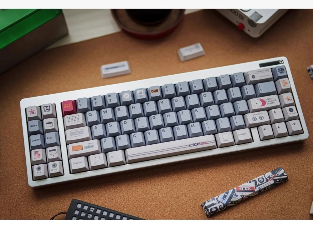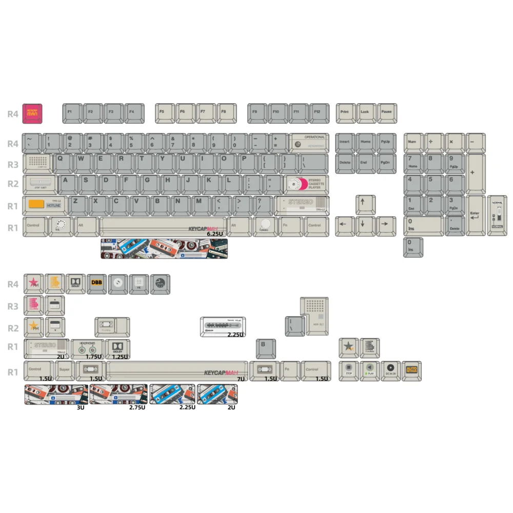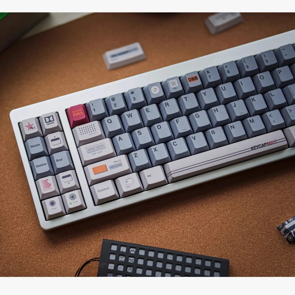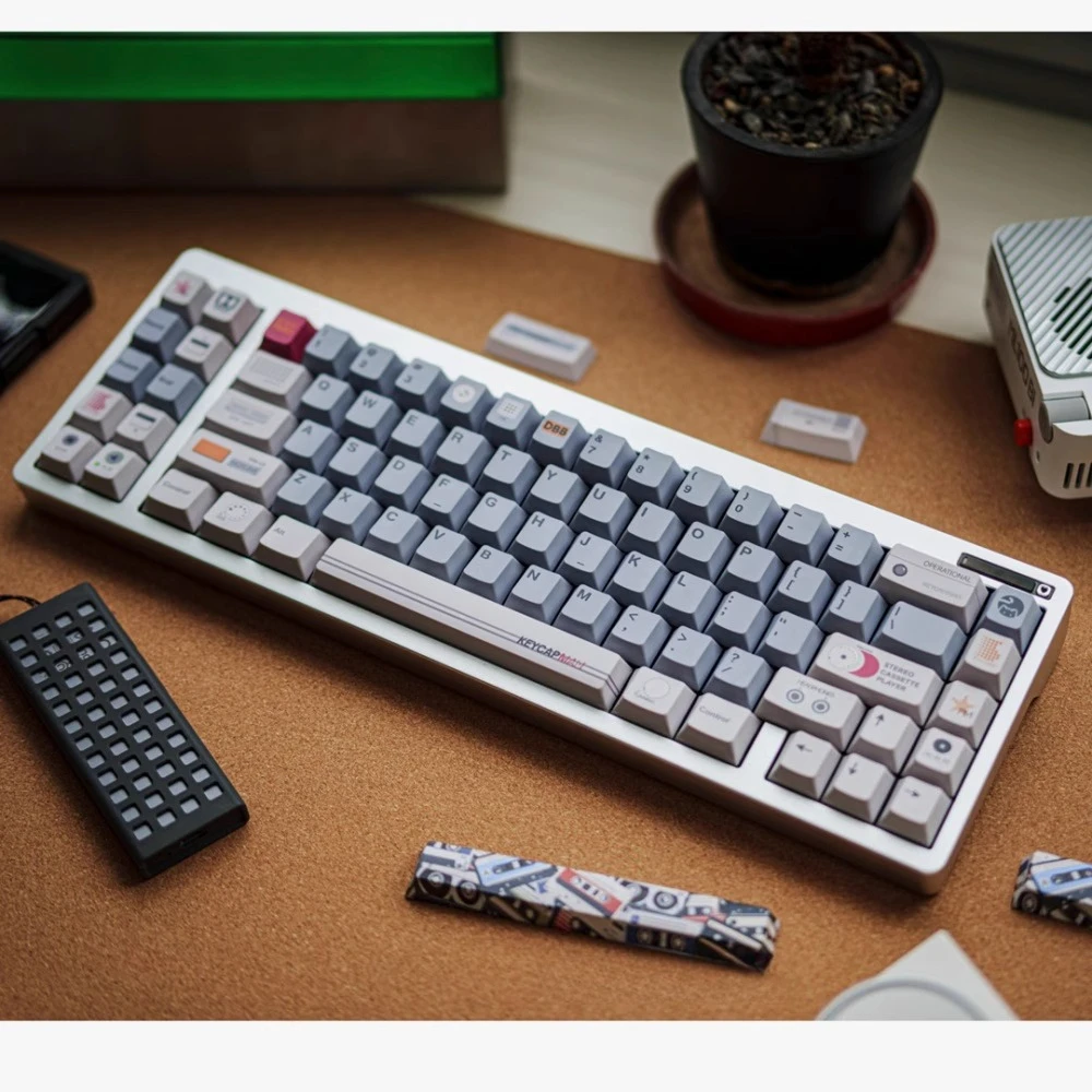Juego de teclas con tema Walkman, perfil de cereza PBT, 140 teclas, teclas originales hechas a mano personalizadas para accesorios de teclado mecánico, regalo