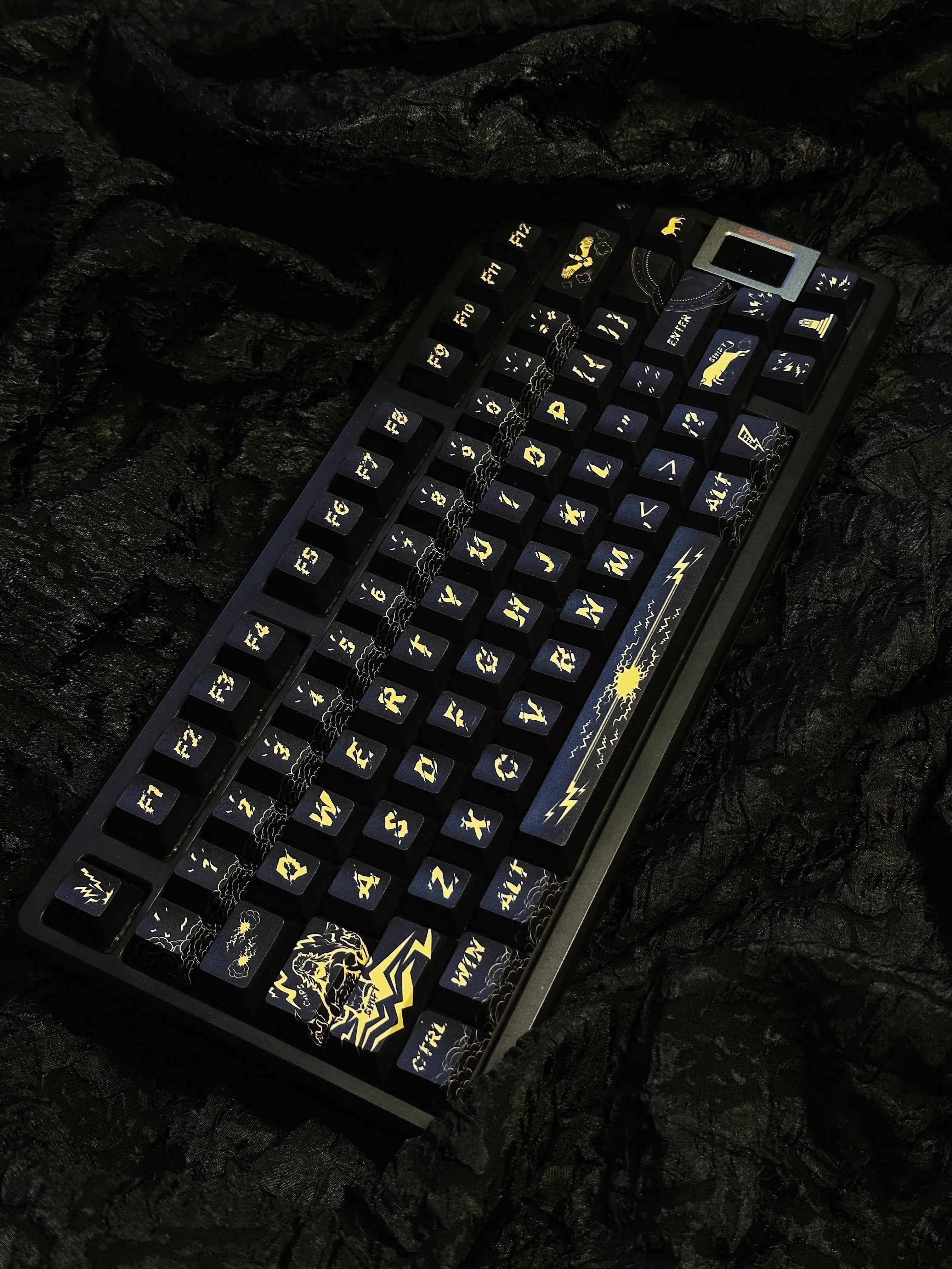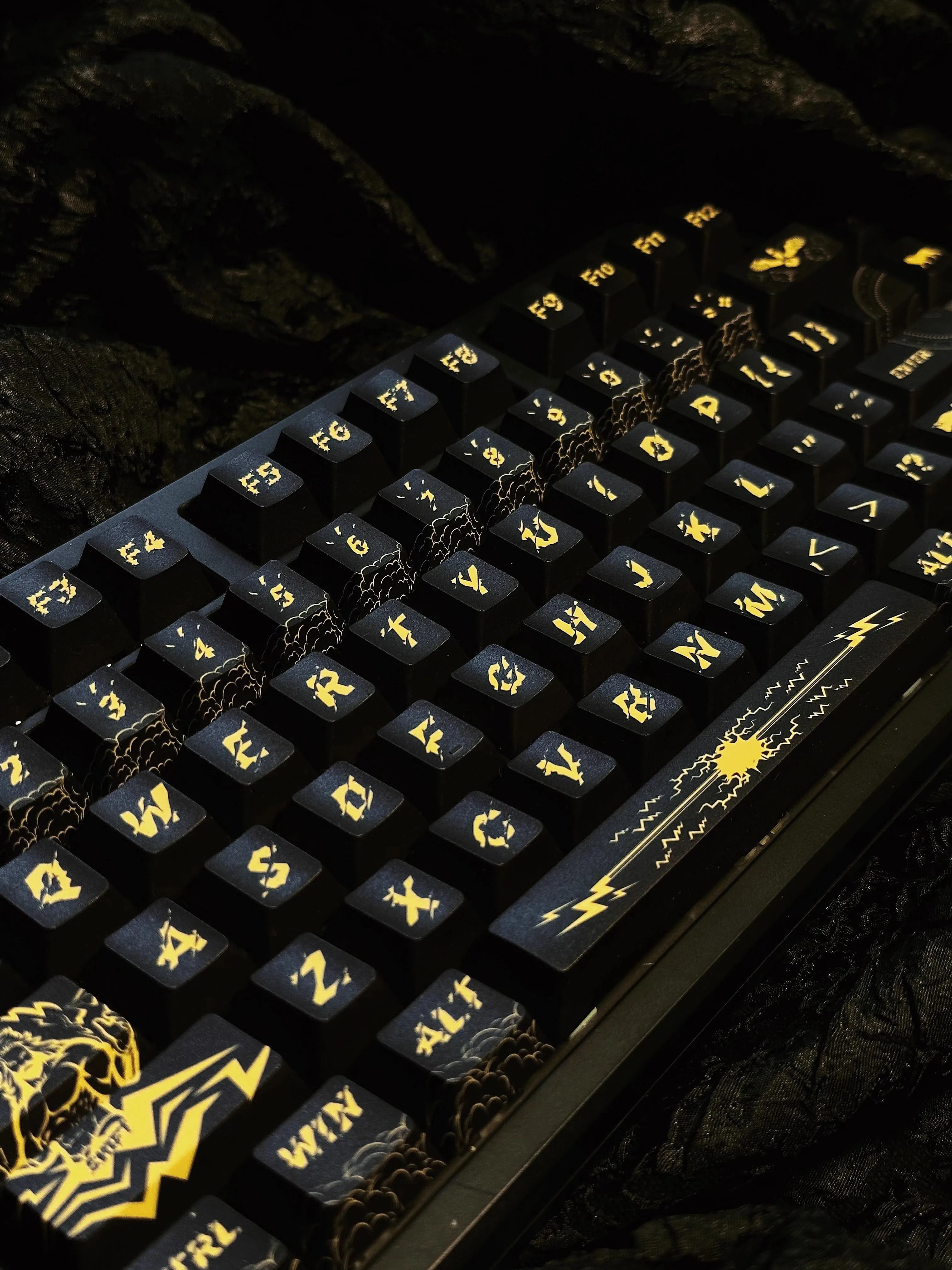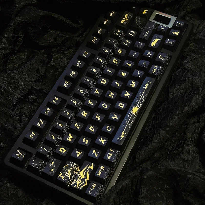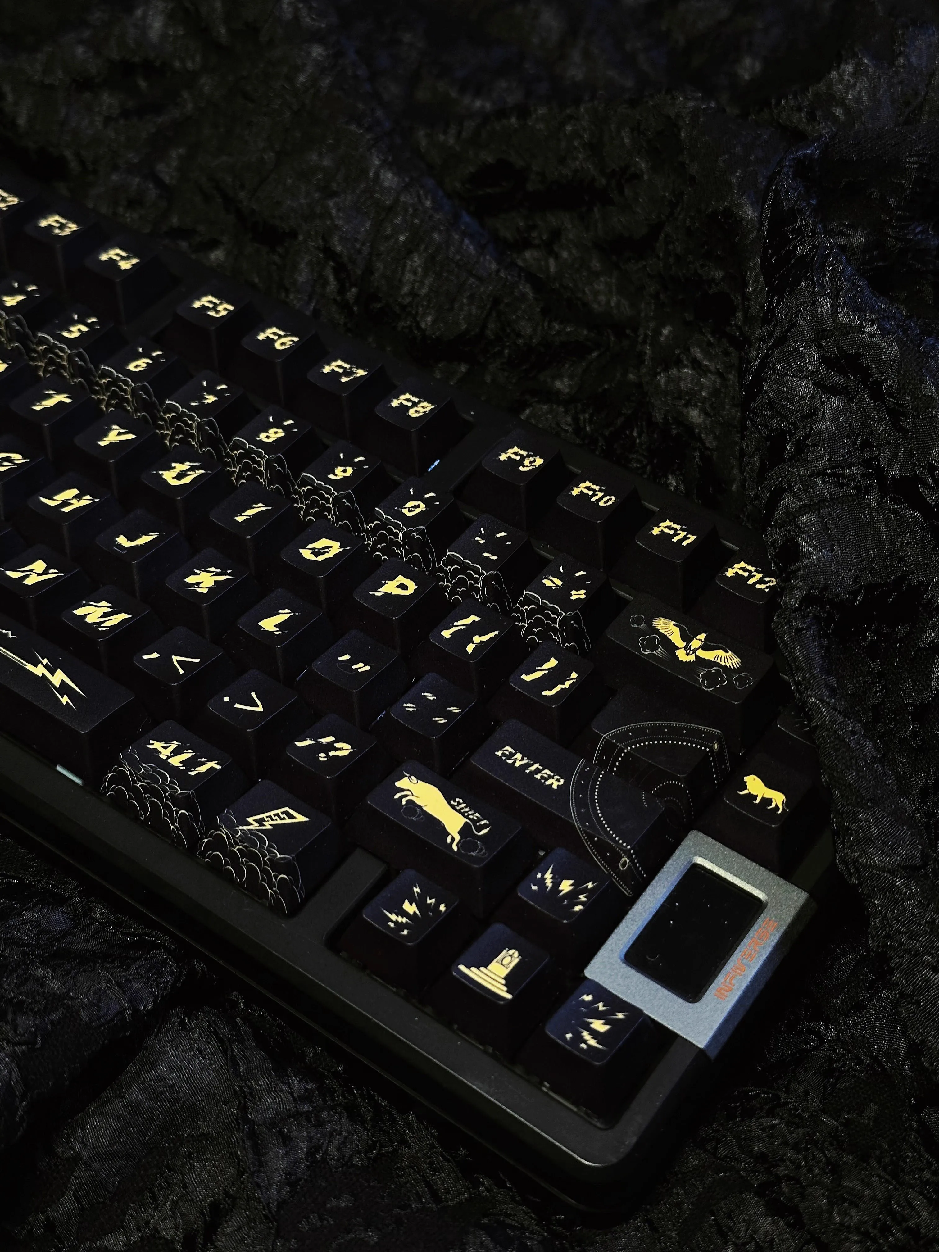 Juego de teclas temáticas Zeus, tapas de teclas de perfil de cereza de sublimación PBT para accesorios de teclado mecánico, 142 teclas, juego de teclas de oro negro