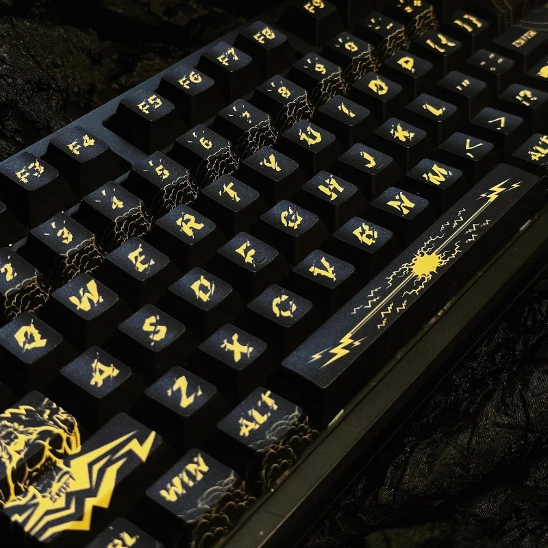 Comprar Juego de teclas con tema Zeus, teclas personalizadas con sublimación PBT, perfil de cereza, accesorios para teclado mecánico, juego de teclas negras de 142 teclas