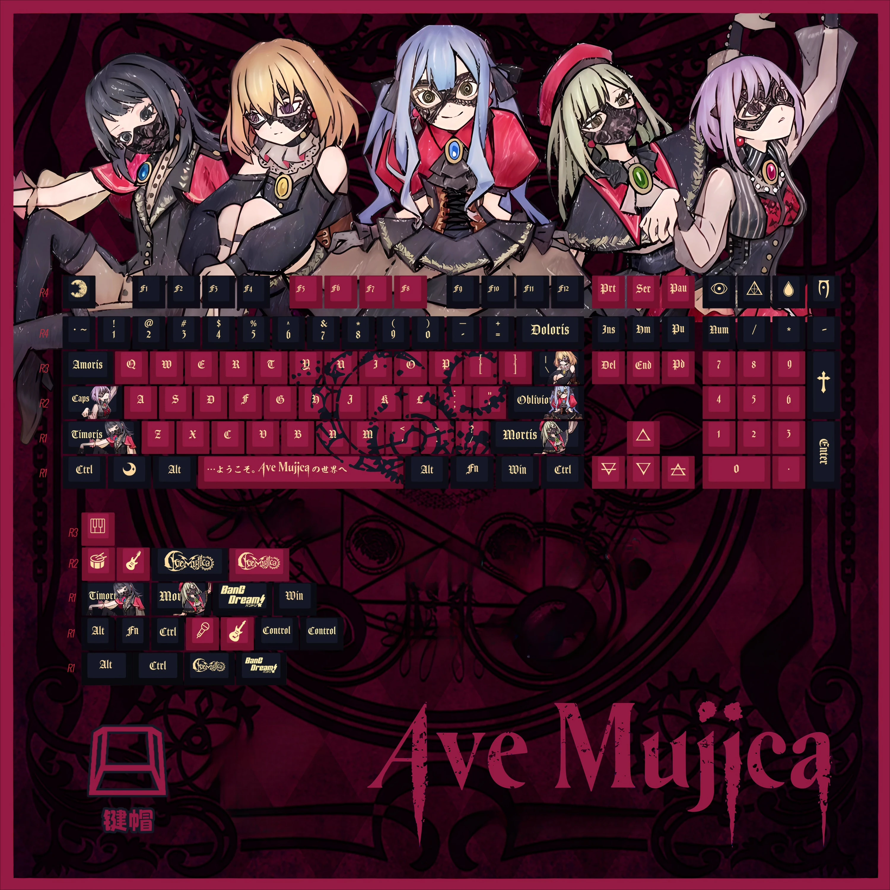 Juego de teclas temáticas AveMujica, perfil de cereza de sublimación PBT, teclas originales hechas a mano personalizadas para accesorios de teclado mecánico