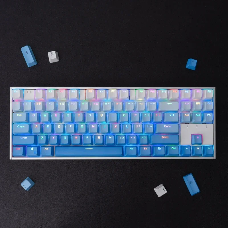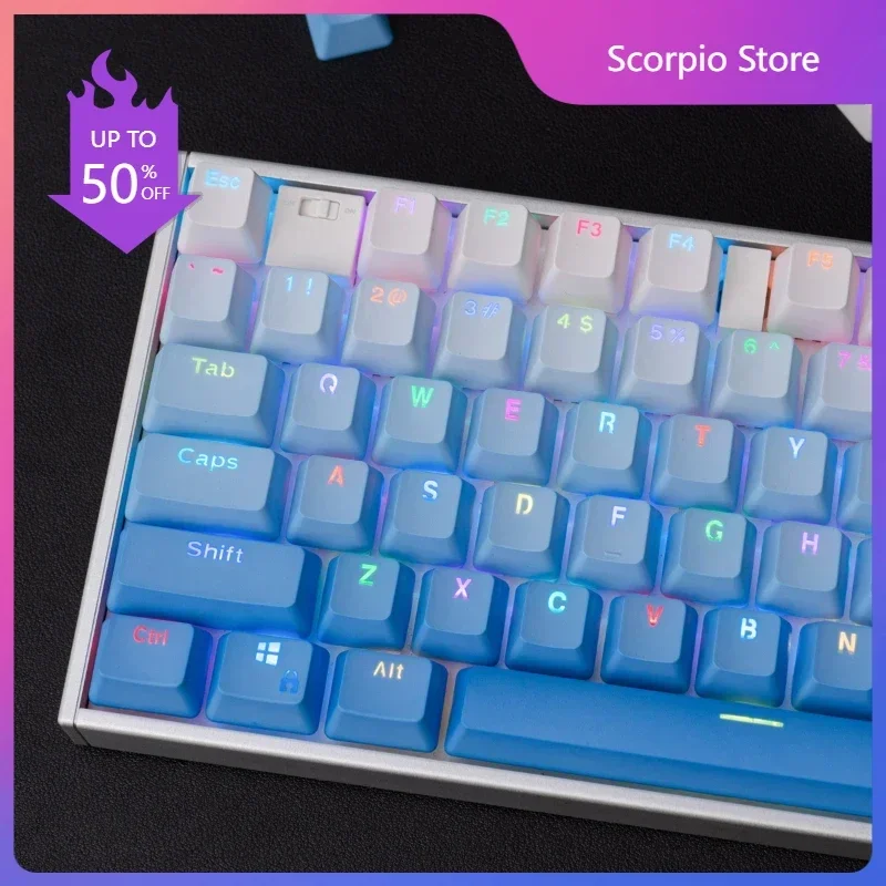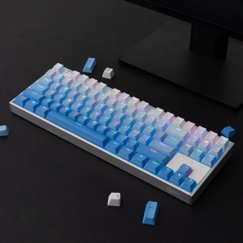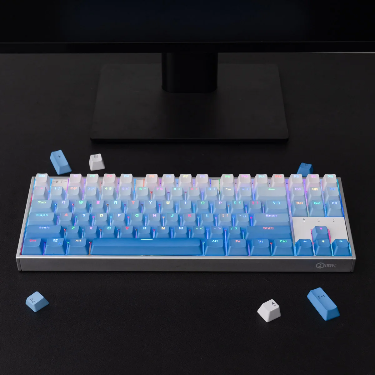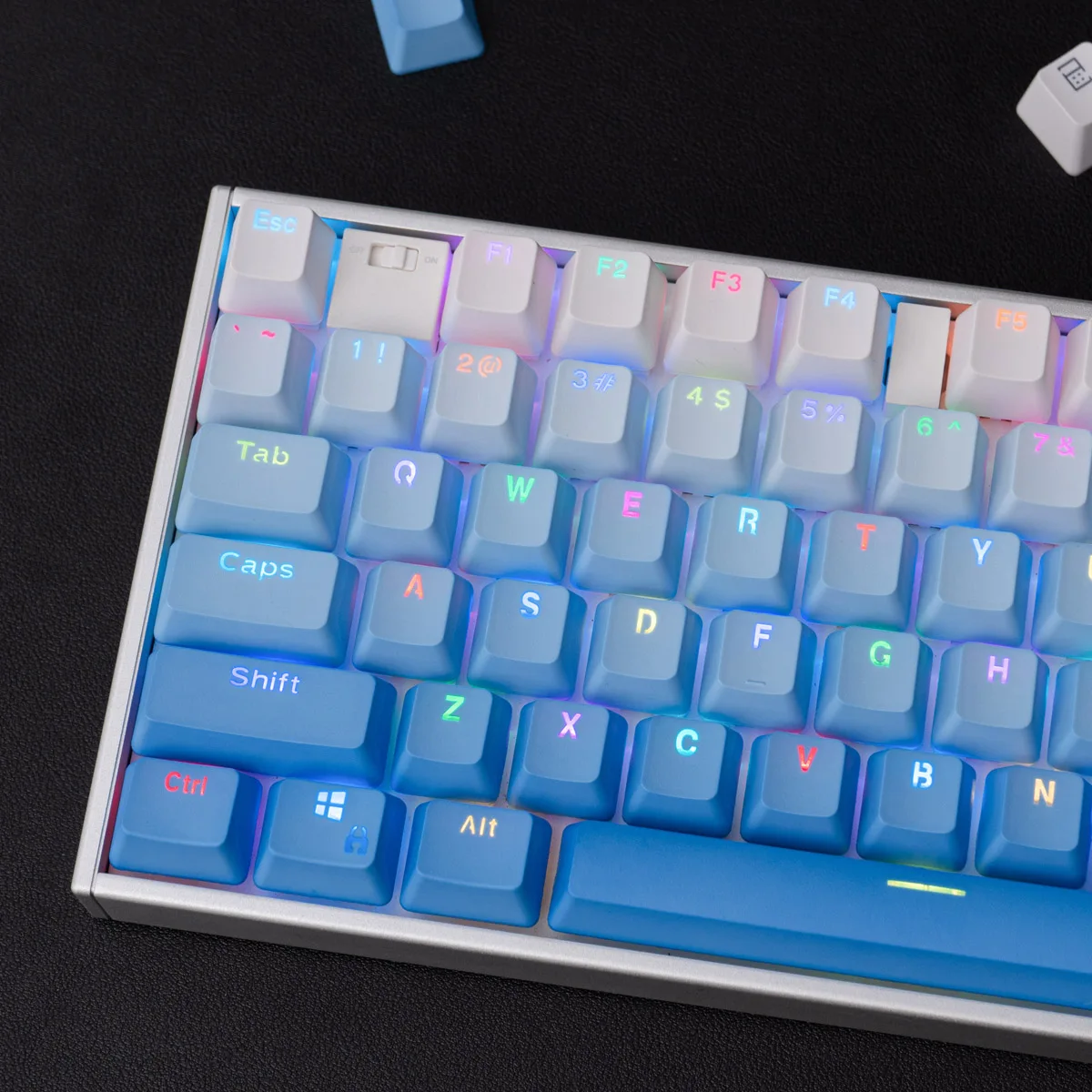 Juego de teclas translúcidas grabadas en azul degradado, perfil OEM personalizado PBT, teñido por inmersión de dos colores, teclas de teclado mecánico con personalidad