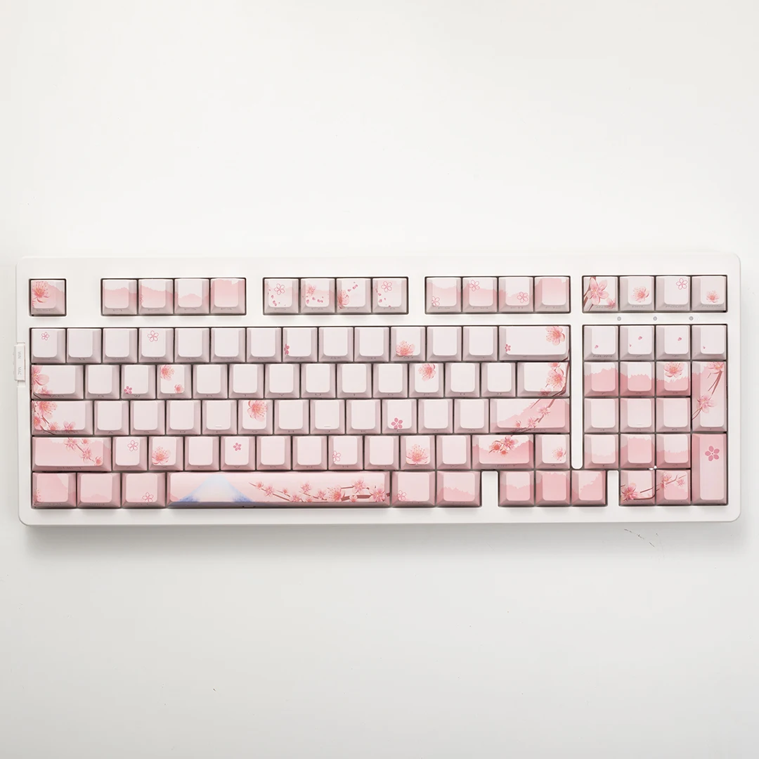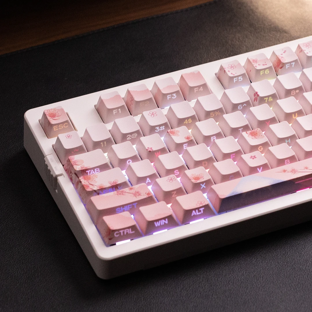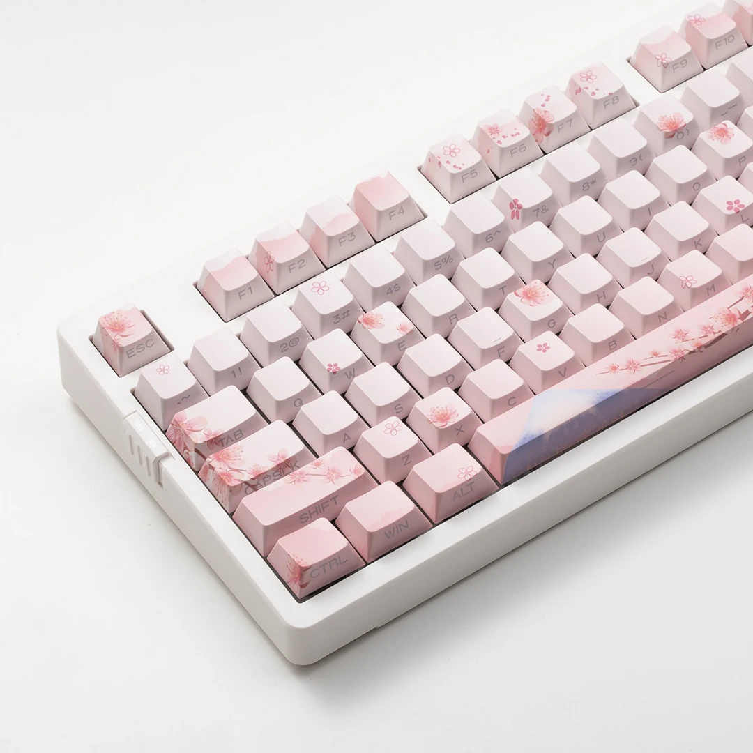 Side Engraving Translucent Keycap Set PBT 127 Keys Sakura Pink Maiden Keycaps For 60/64/84/98/108 Mechanical Keyboards MX Switches