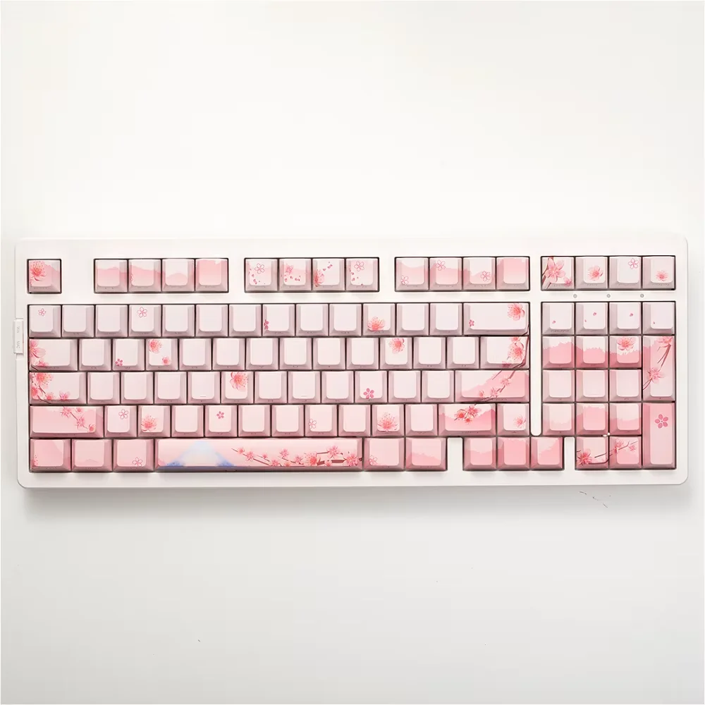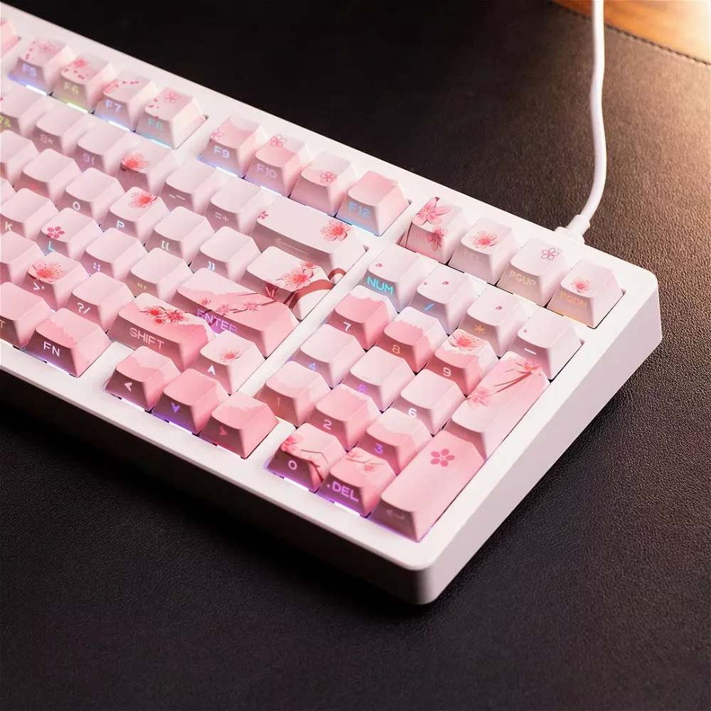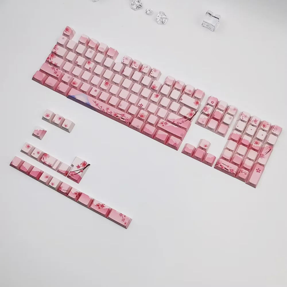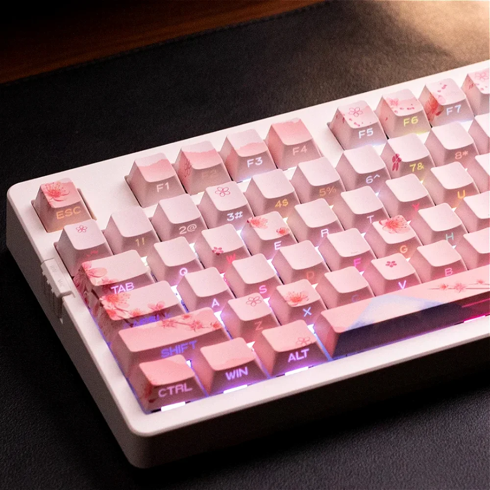 Side Engraving Translucent Keycap Set PBT 127 Keys Sakura Pink Maiden Keycaps For 60/64/84/98/108 Mechanical Keyboards MX Switches