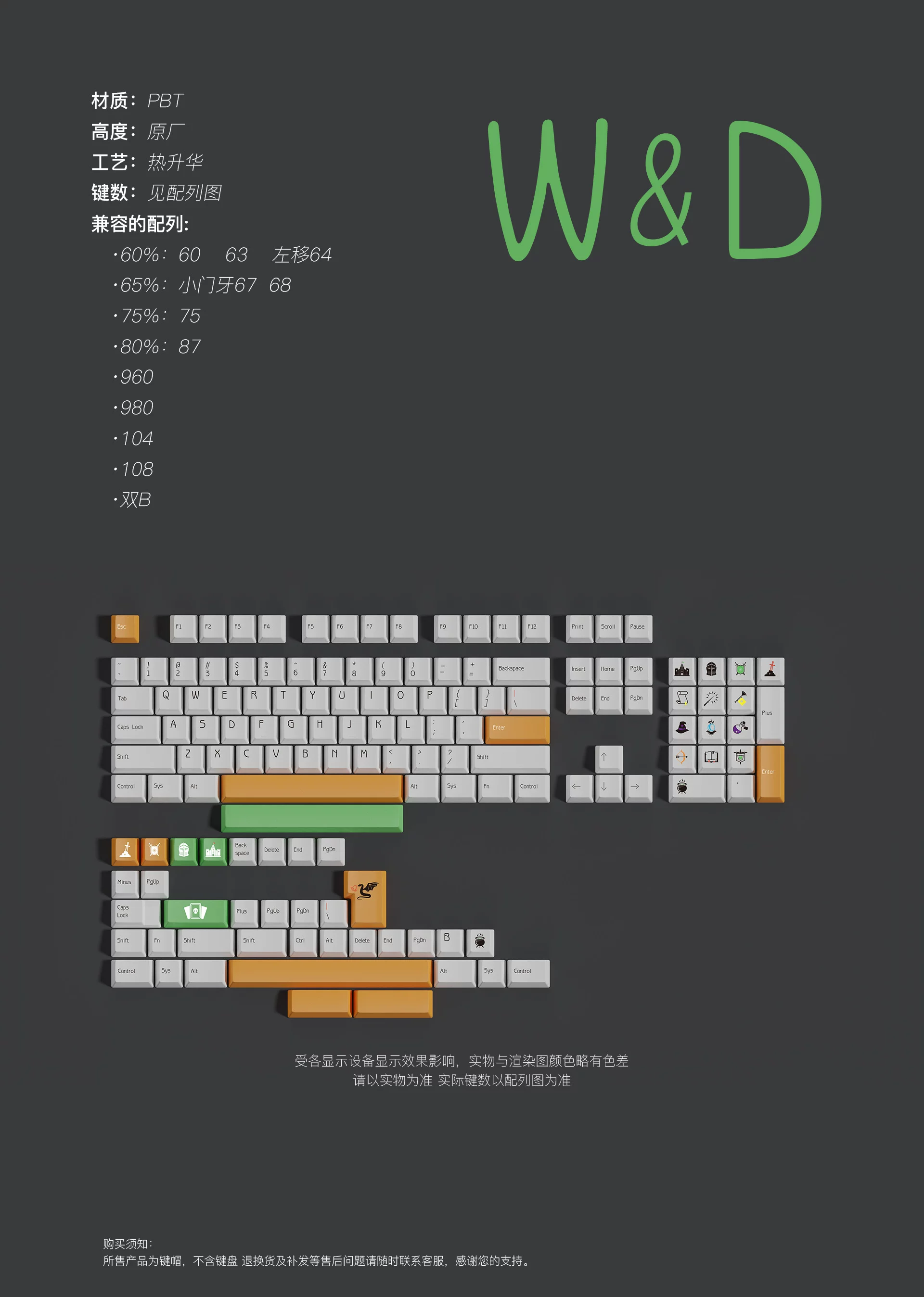Juego de teclas W & D PBT Dye subcama, perfil de cereza, teclas a prueba de luz para teclado MX Switch, 7U Barra espaciadora dividida, doble B, 1 Juego