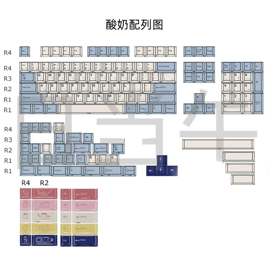 Número de teclas: 159 teclas, incluye 1,25U 1.75U 2U 2.25U shift, 1.5U alt ctrl, 1.75U ctrl, 2.25U.2.75U 3U 6.25U 7U barra espacial,