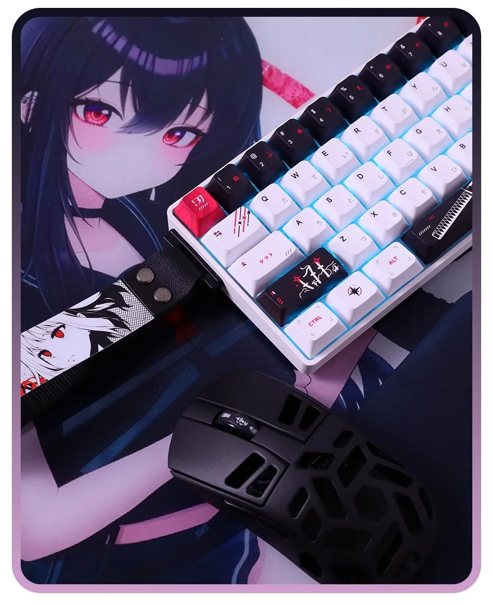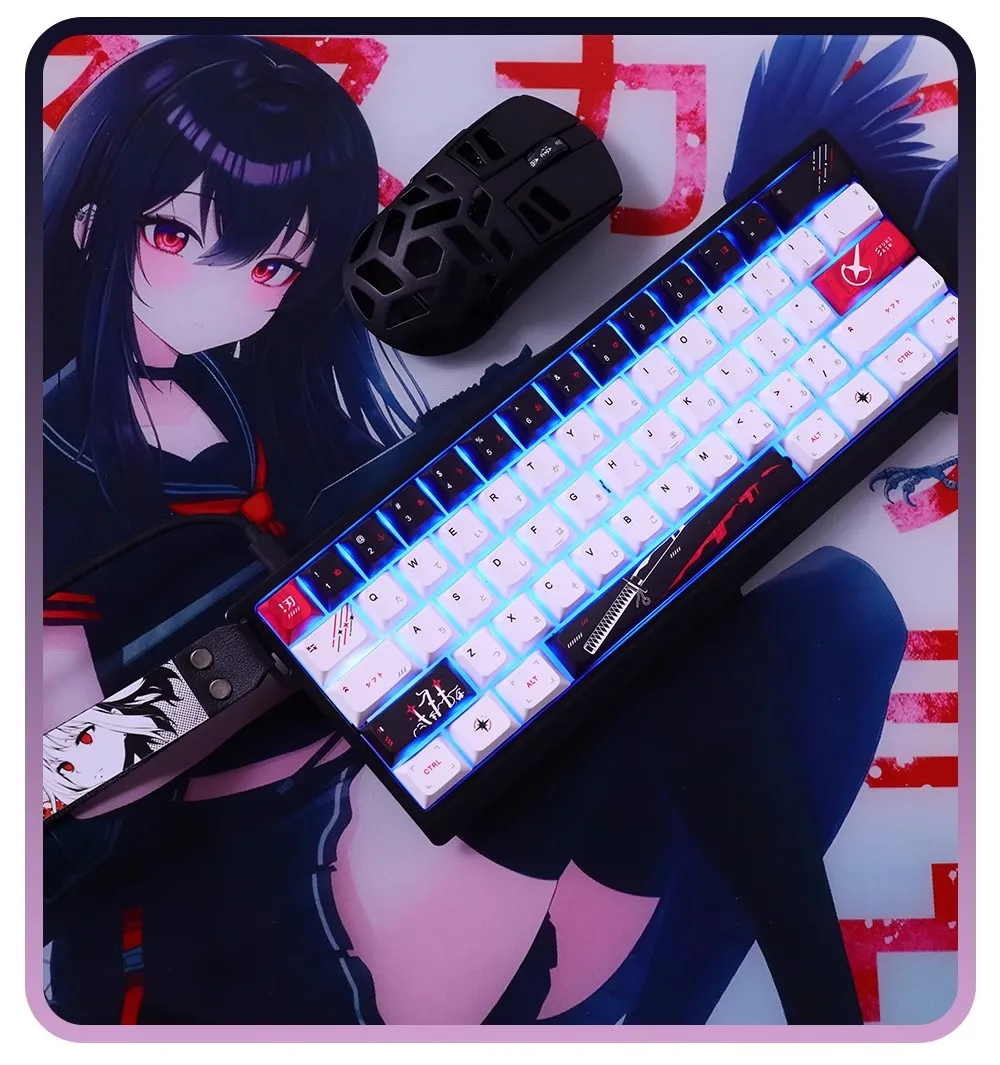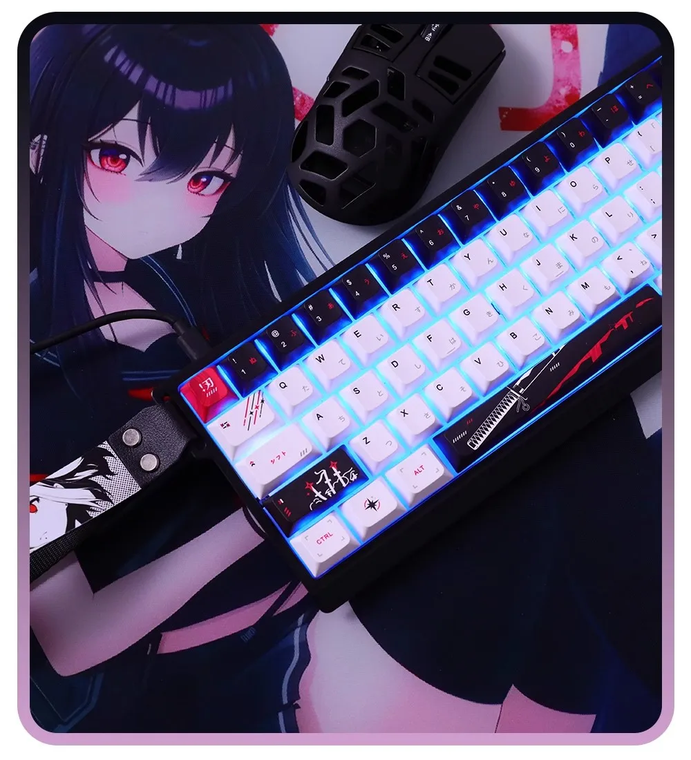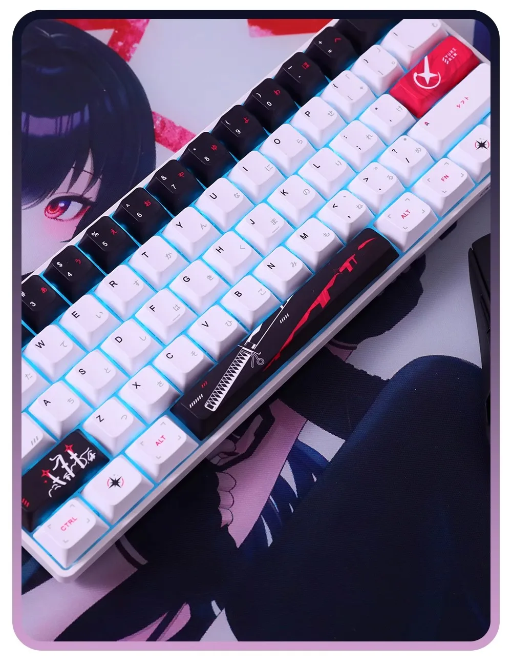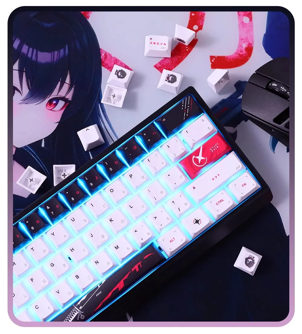 Juego de teclas Yuki Aim PBT, tapas de teclado de Anime de sublimación de cinco lados, teclas de perfil de cereza de 92 teclas para teclado mecánico, regalo