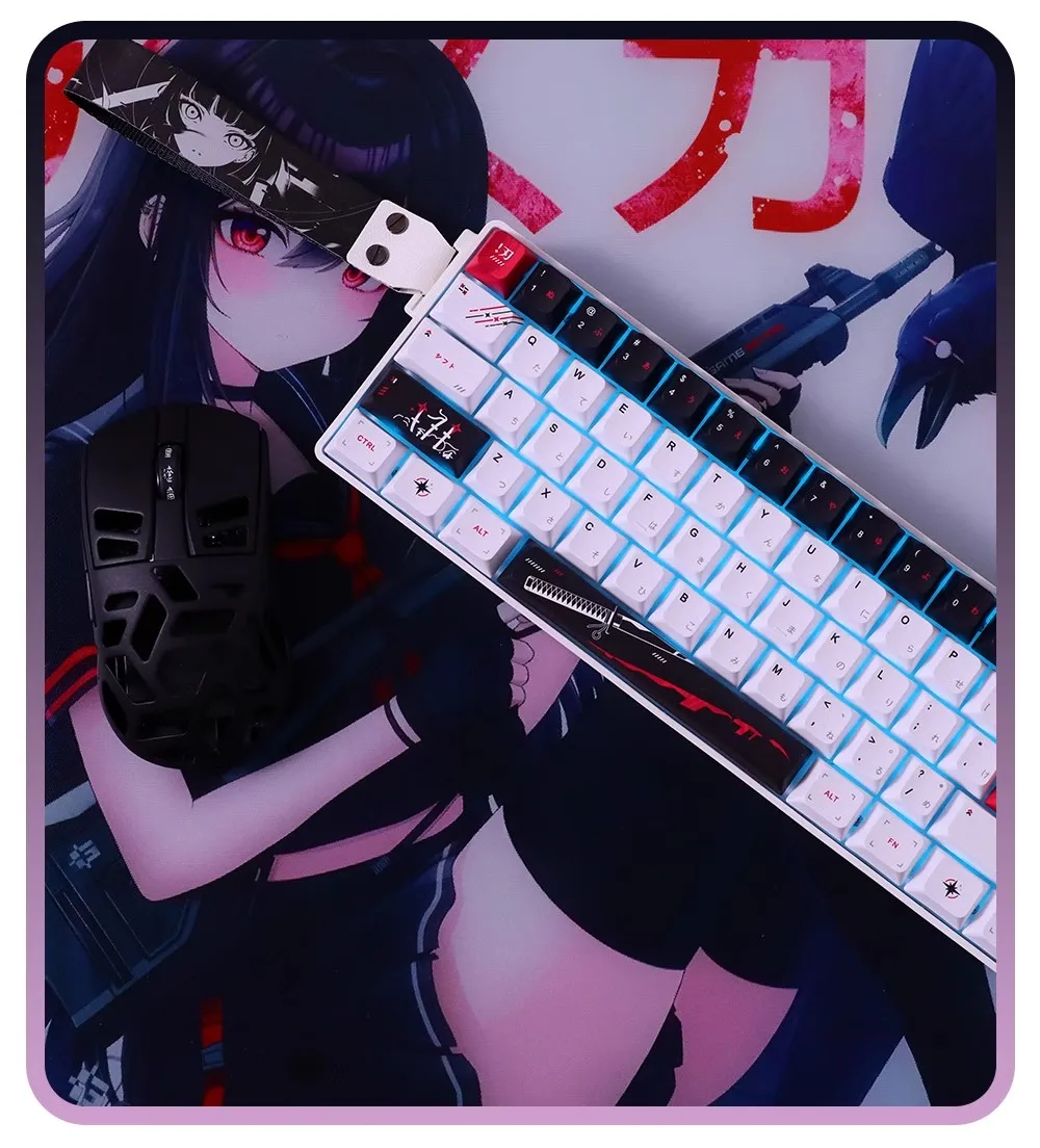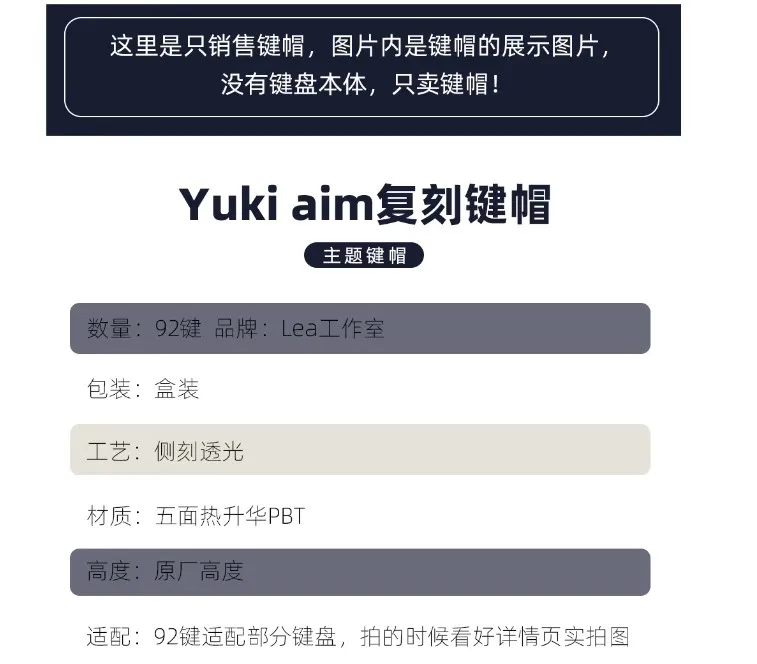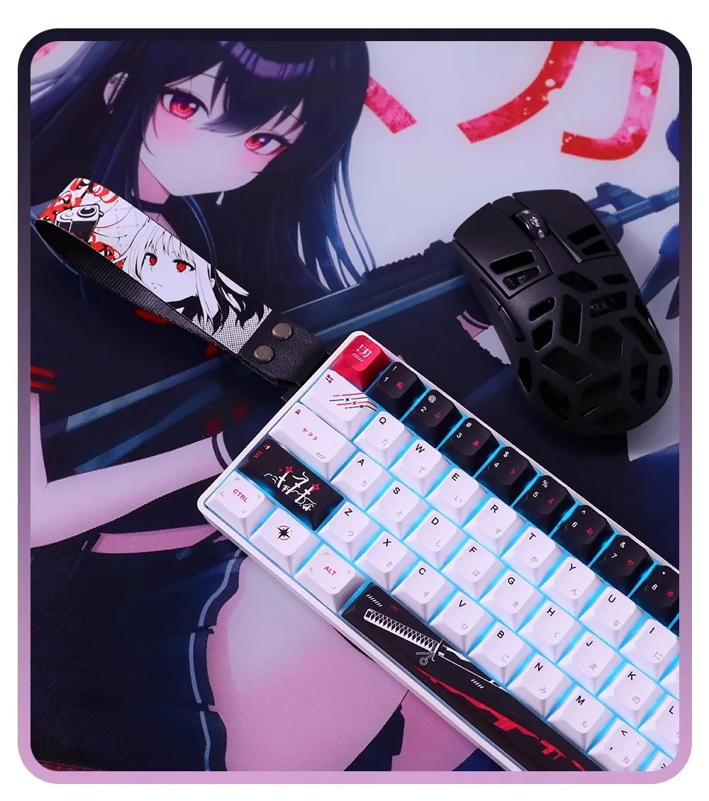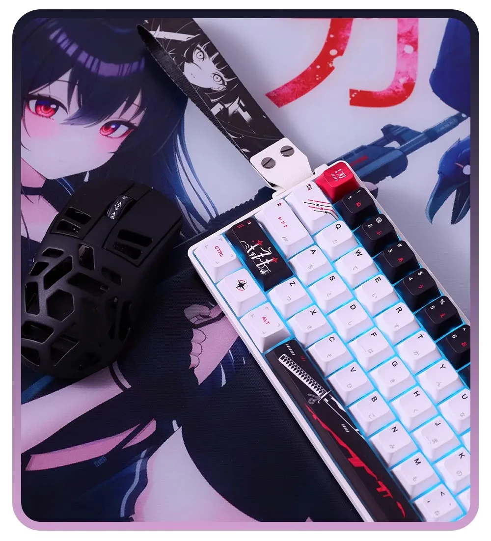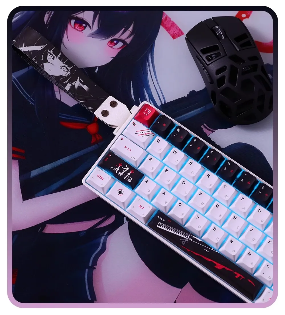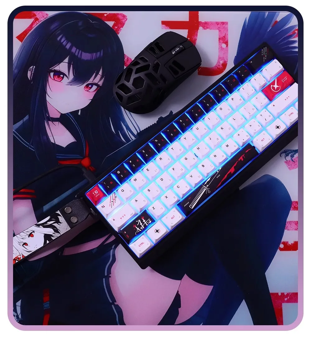 Juego de teclas Yuki Aim PBT, tapas de teclado de Anime de sublimación de cinco lados, teclas de perfil de cereza de 92 teclas para teclado mecánico, regalo