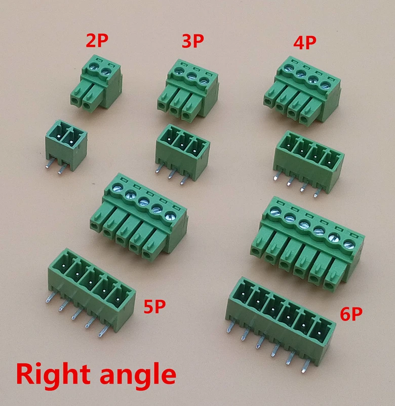 Comprar Juego de terminales de ángulo recto de 3,81mm, 2/3/4/5/6/7/8 Pines, Conector de paso 3,81, bloque de terminales de tornillo Pcb, 10 juegos