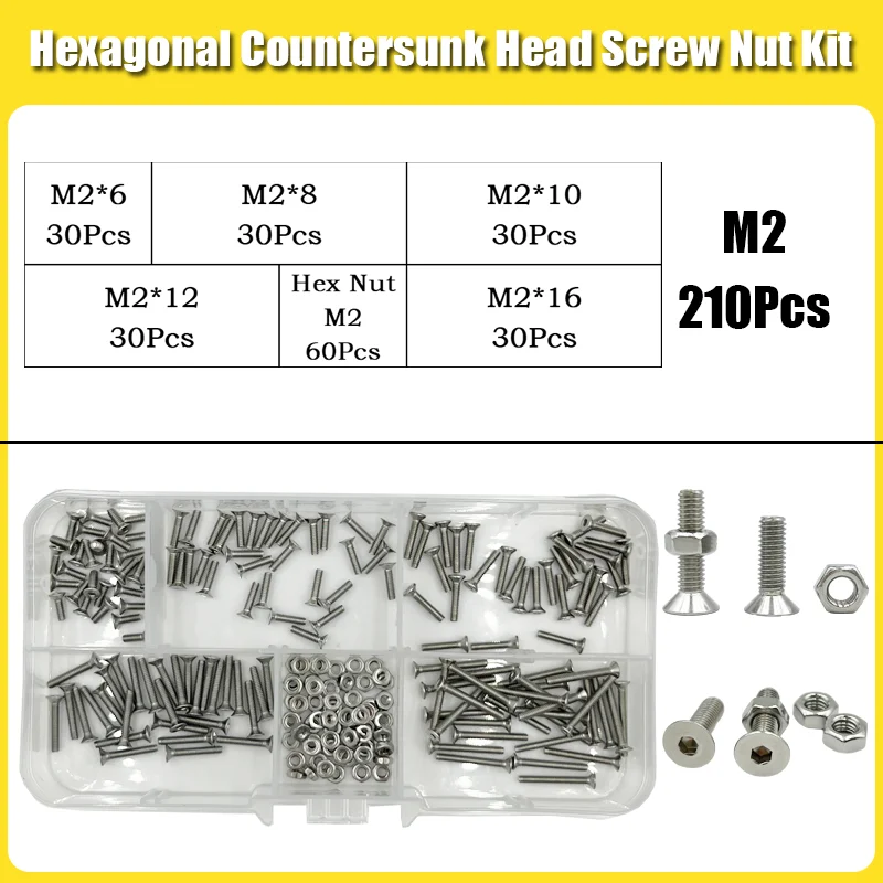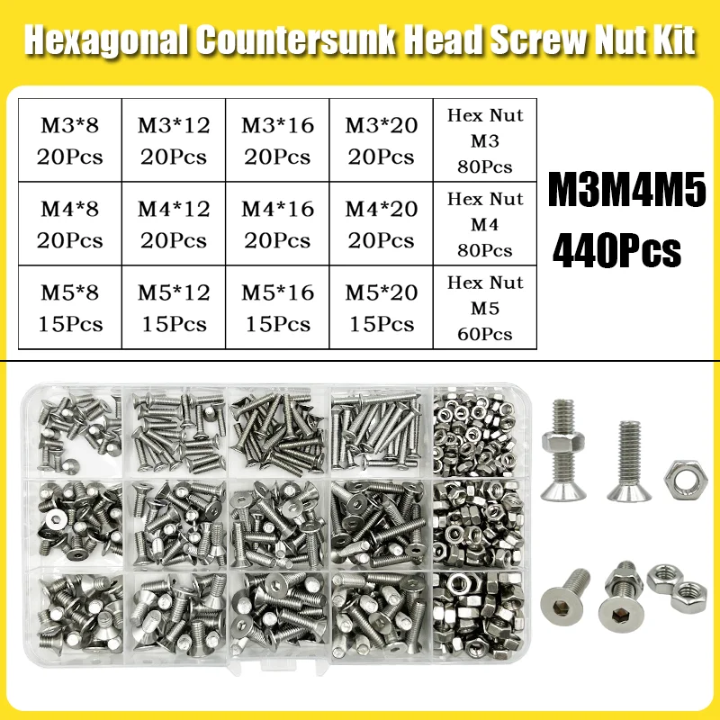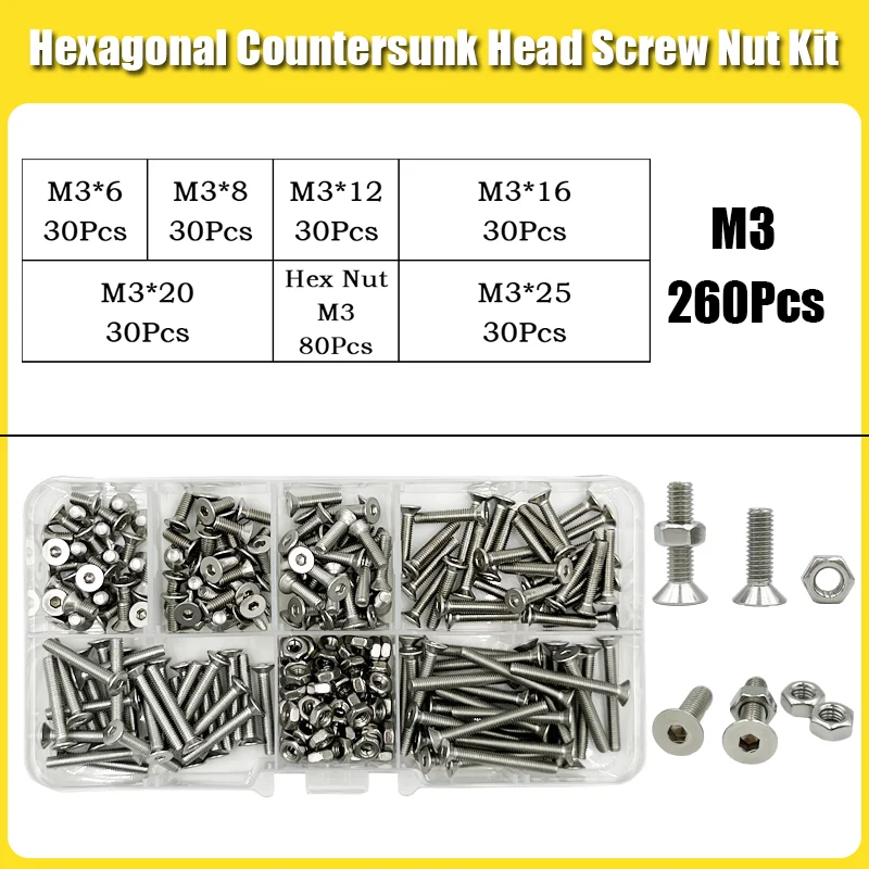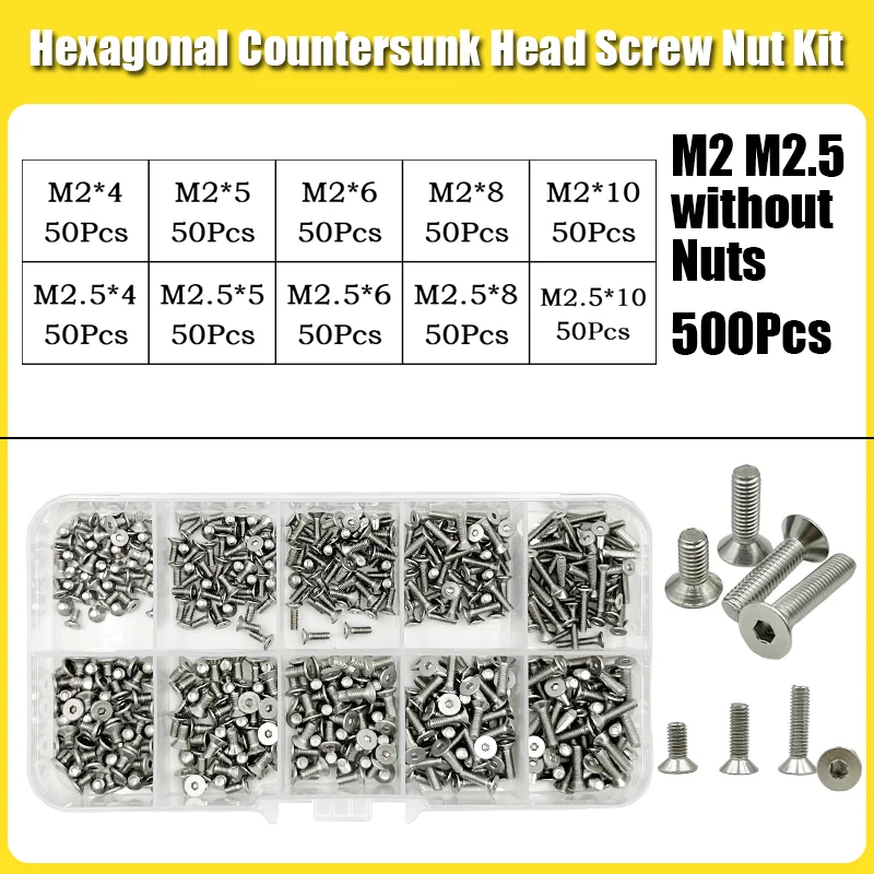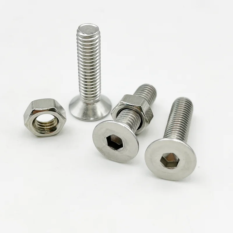 Juego de tornillos hexagonales de cabeza de llave Allen M2 M2.5 M3 M4 M5 M6 pernos y tuercas de cabeza avellanada plana hexagonal de acero inoxidable