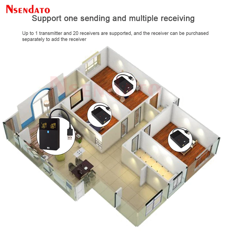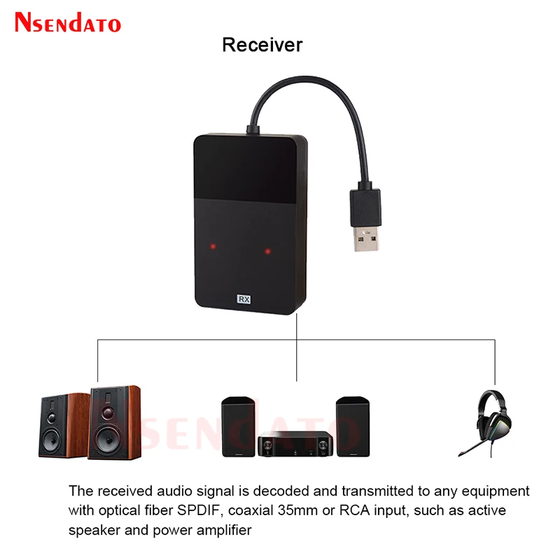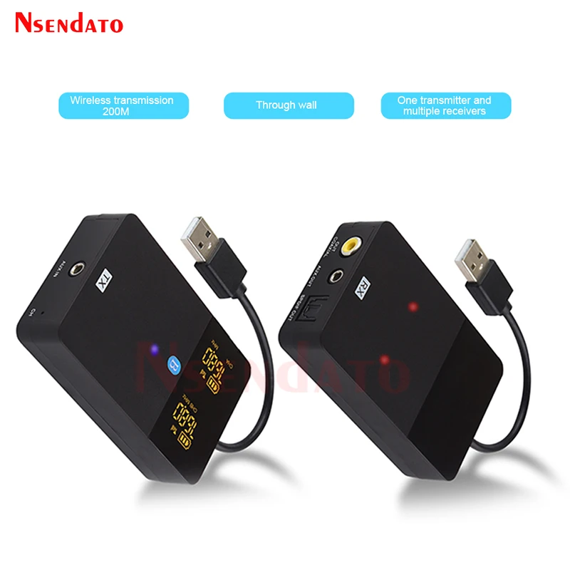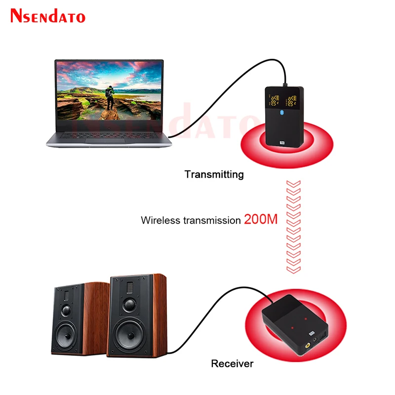 Juego de receptor y transmisor de Audio inalámbrico de 200m, adaptador de audio inalámbrico Plug Play de alta fidelidad sin obstáculos para auriculares y altavoces de TV