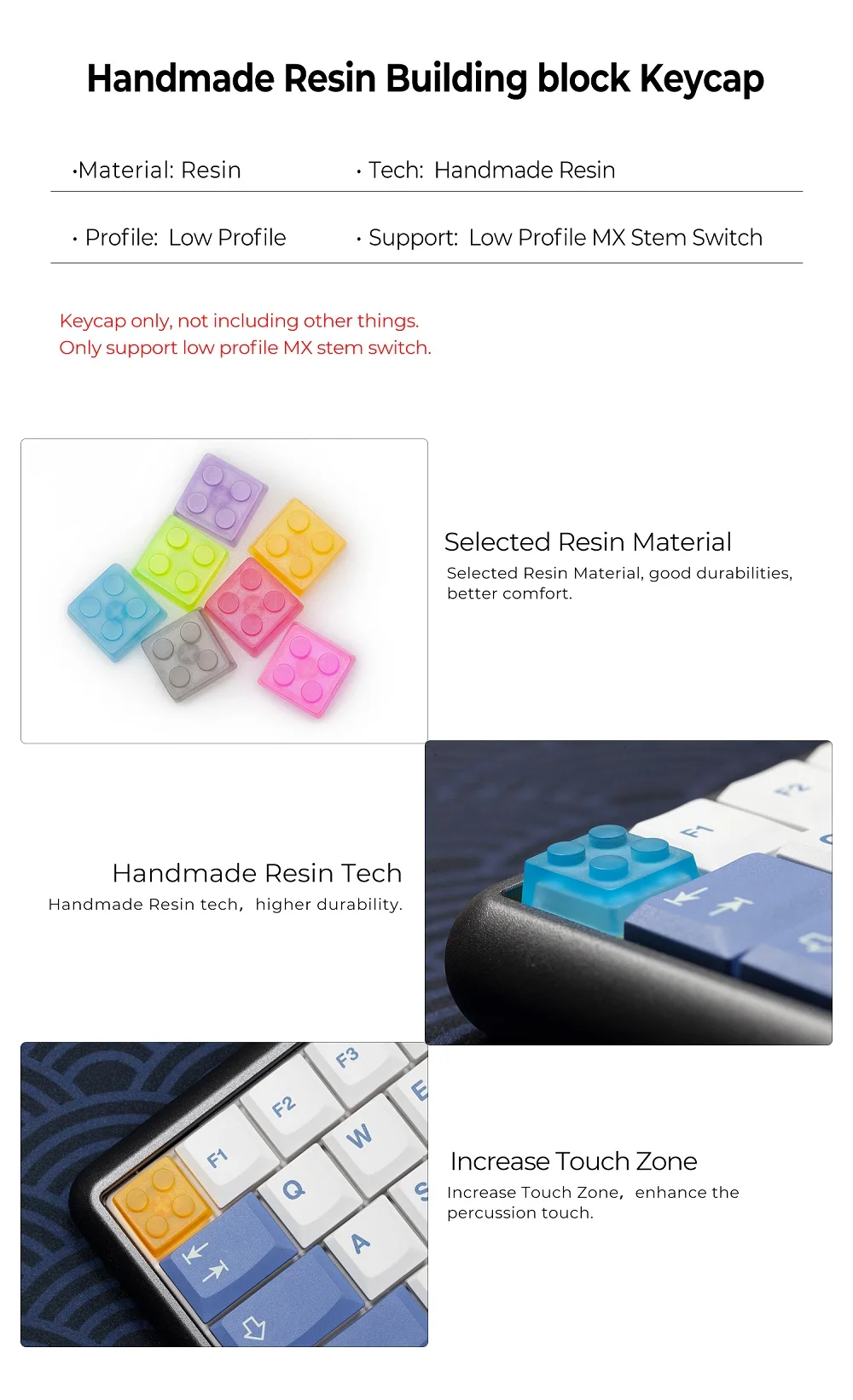 Comprar Juguetes de bloques de construcción de resina artesanal, Keycap de perfil bajo, Teclado mecánico MX Stem, hecho a mano, azul, verde, rojo